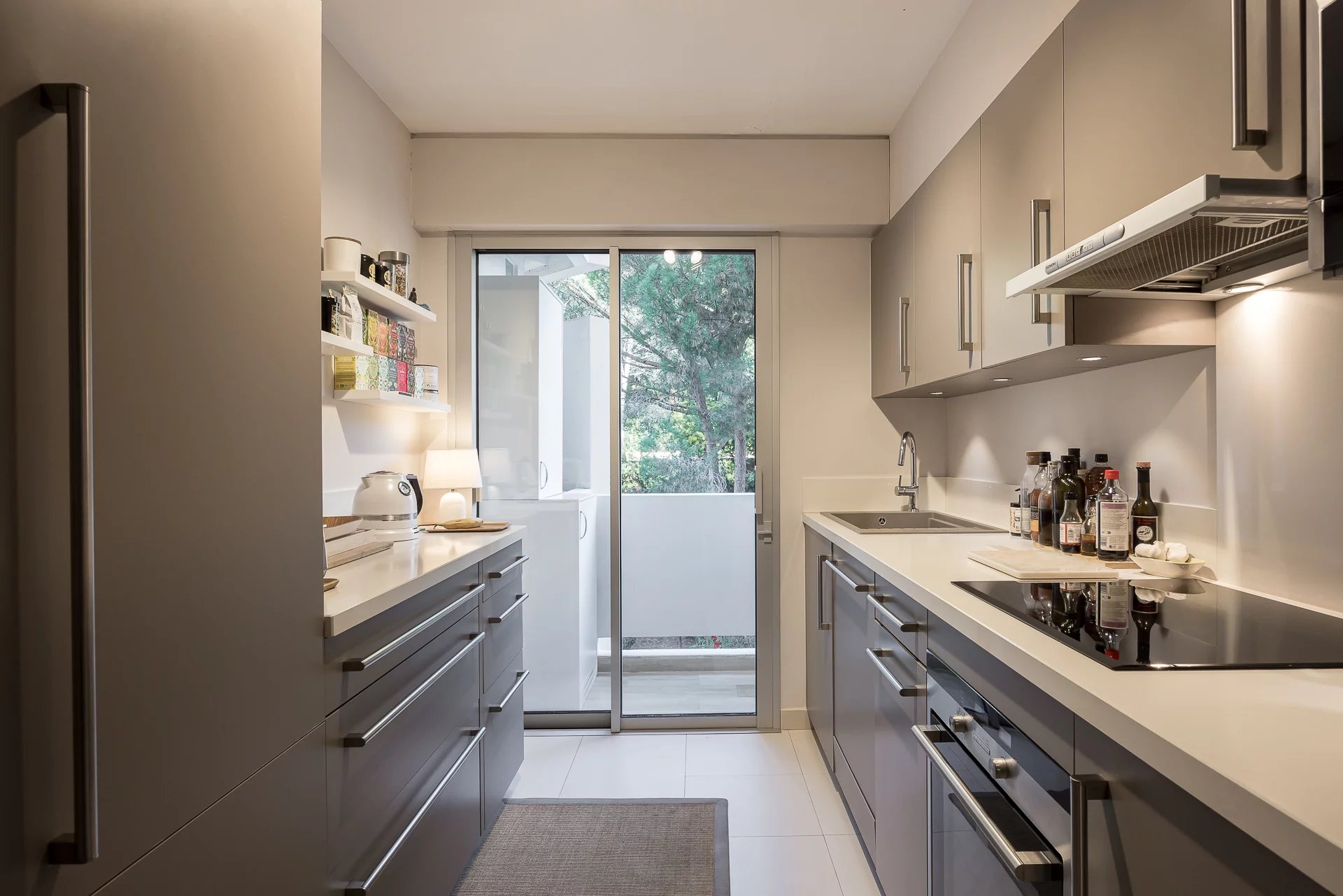 The apartment comprises a large bright living room, opening onto a vast terrace offering breathtaking panoramic views of the Mediterranean Sea and the famous Lerins Islands. The separate kitchen, fully equipped and in excellent condition, allows you to prepare your meals in a functional and elegant setting.