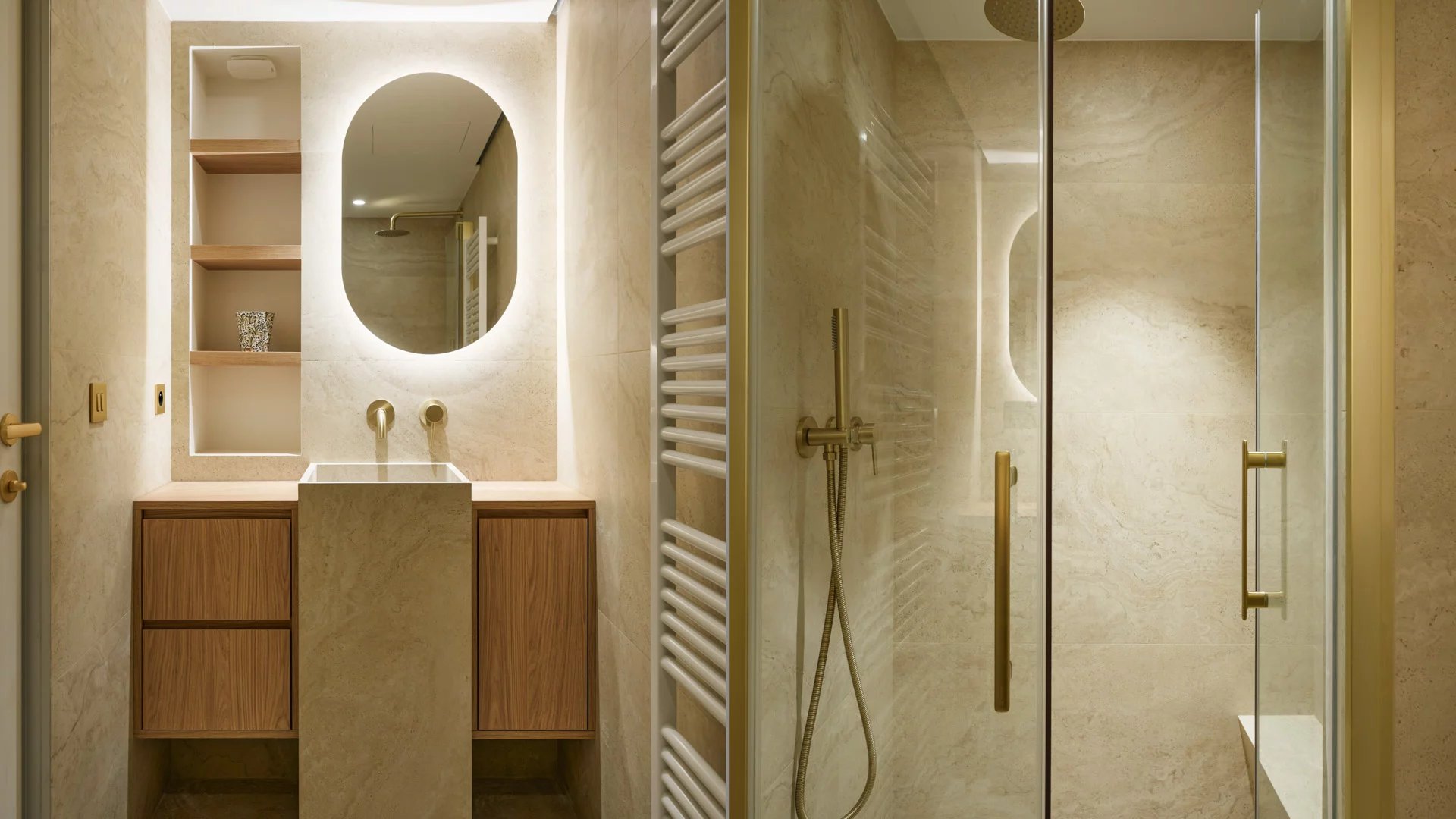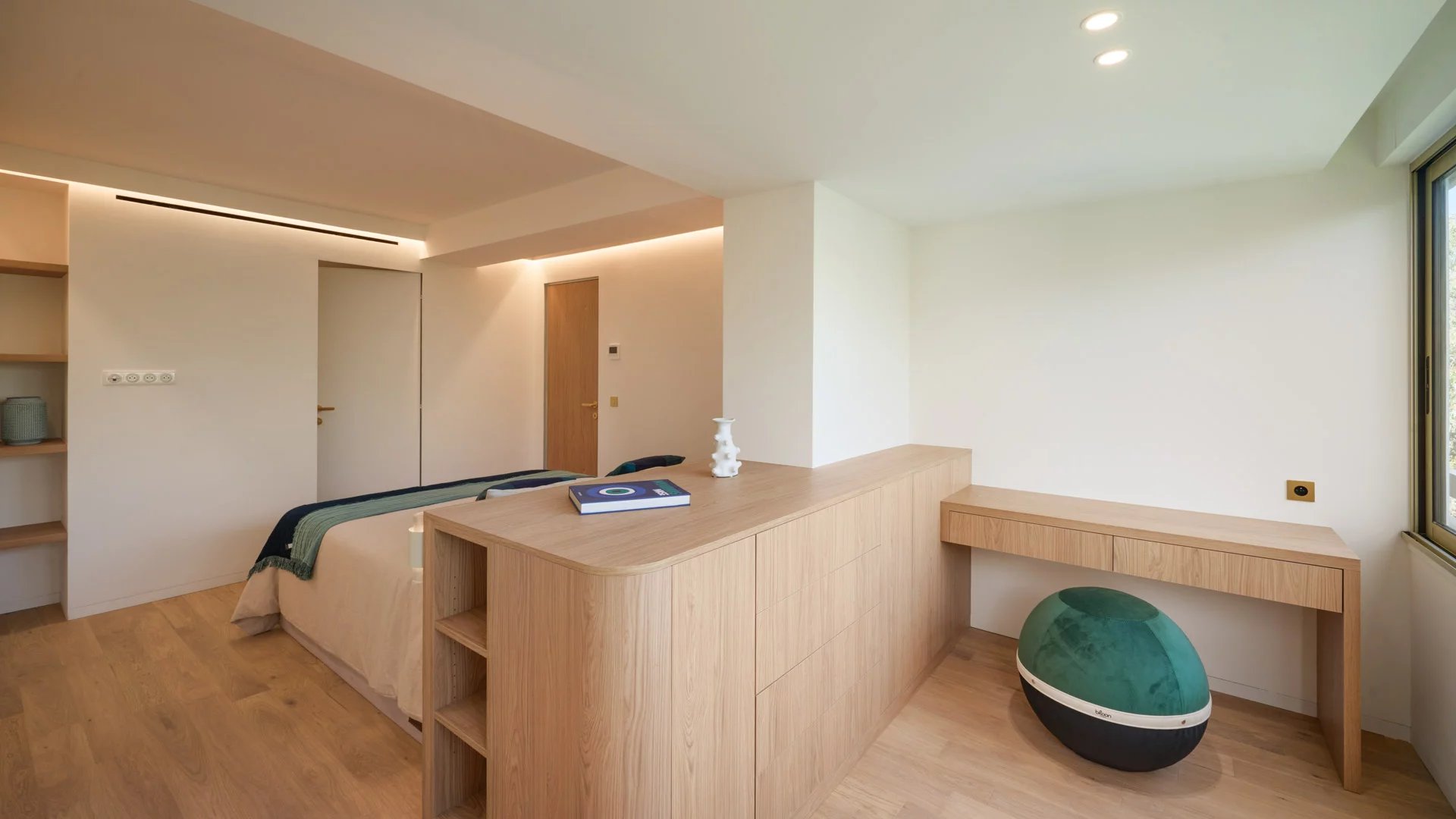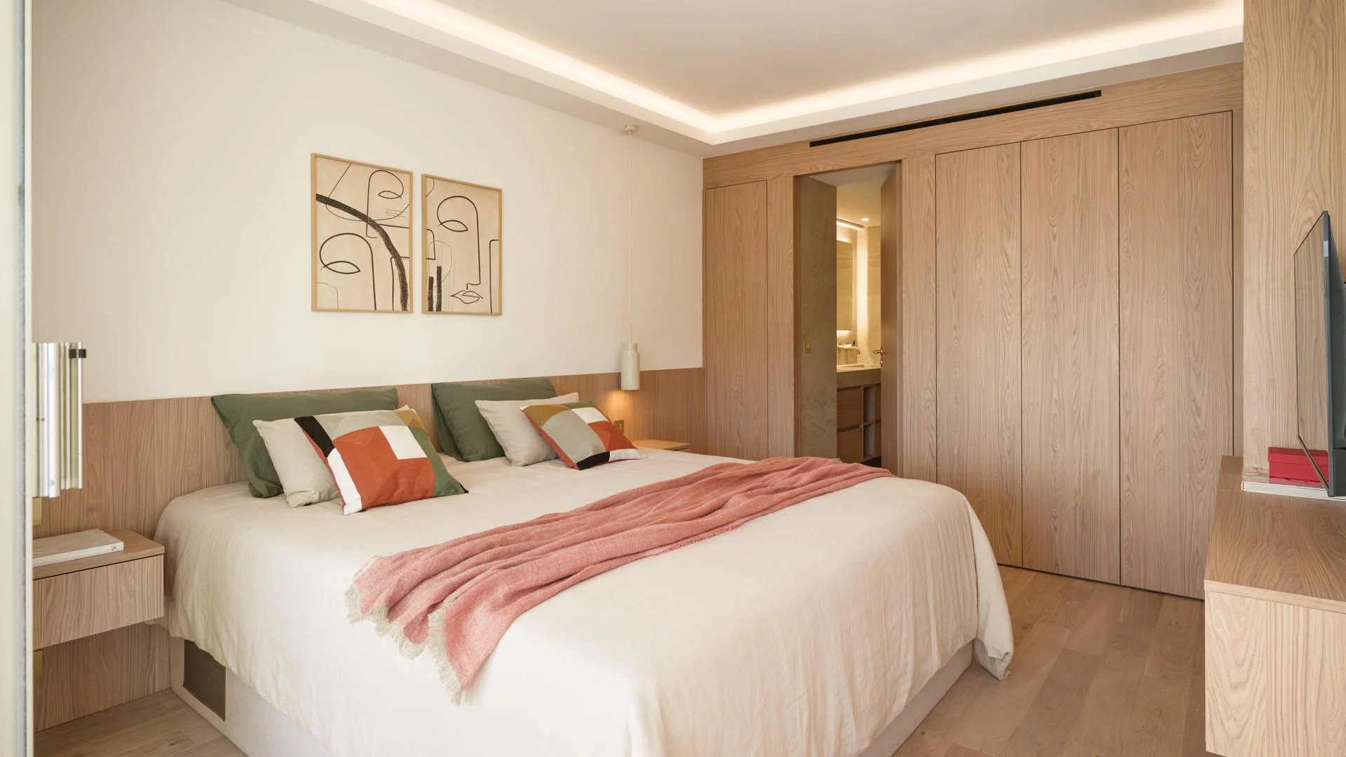 With a living area of approx. 100 m2, the apartment includes a large south-facing terrace of approx. 20 m2, a living room with open kitchen, three en-suite bedrooms with shower rooms and walk-in closets.