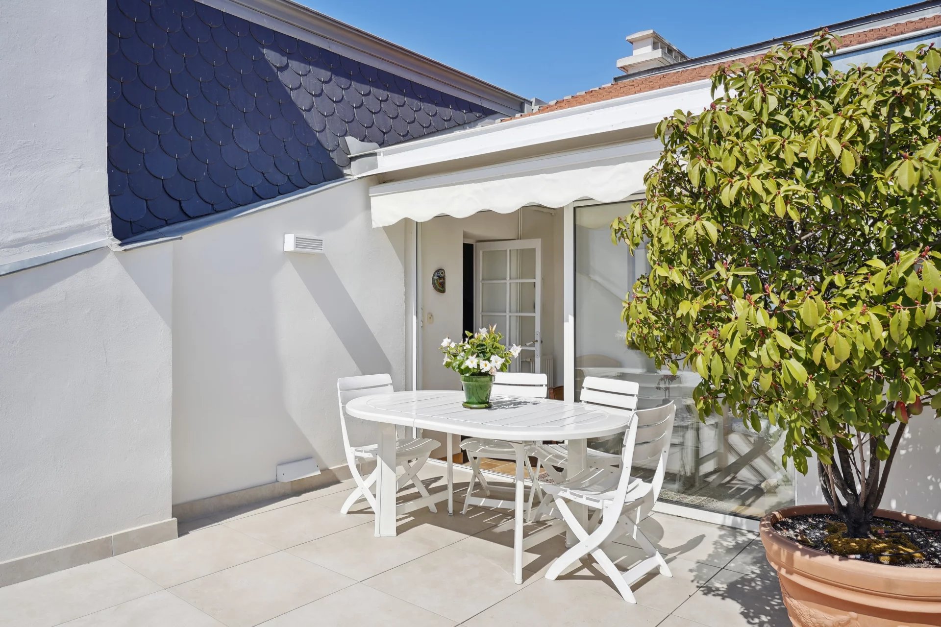 A beautiful top floor Bourgeois apartment, out past the palm trees it boasts a panoramic sea views, located in a renowned 19th Century Palace in the sought-after district of Croix des Gardes and within walking distance of the sandy beaches.