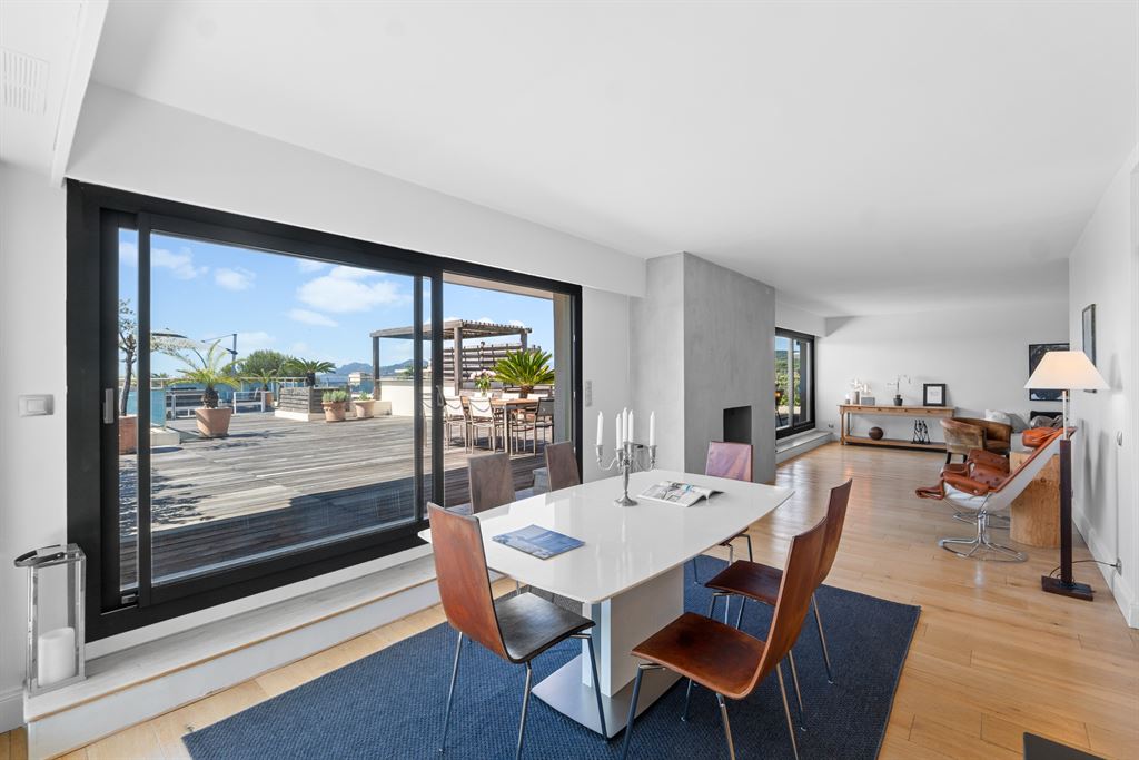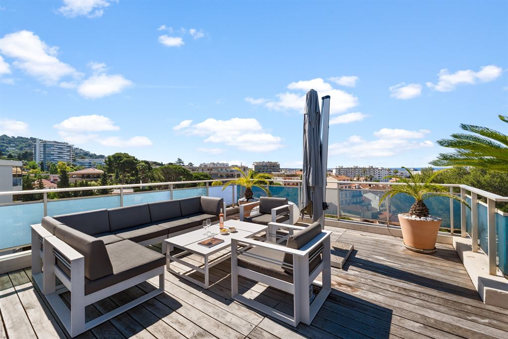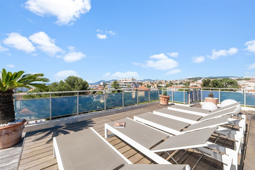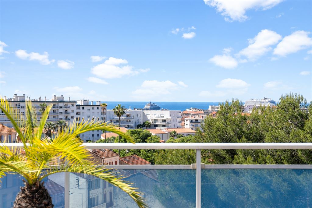 Situated in a quiet and sought-after residential area of Cannes, this top-floor penthouse offers remarkable panoramic views of the sea, the Lerins Islands, and the Esterel massif.