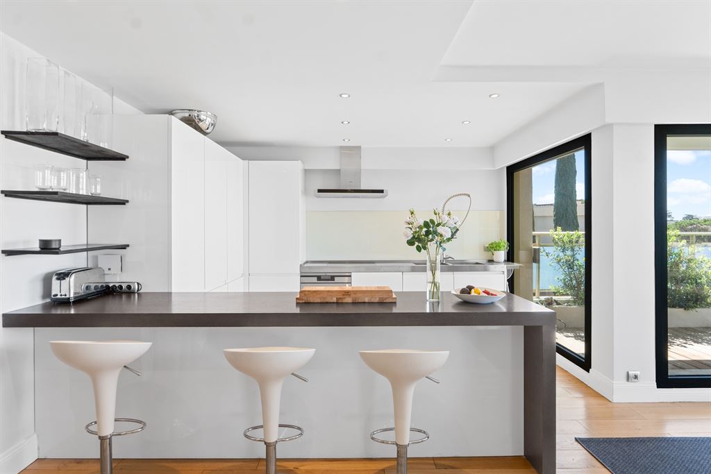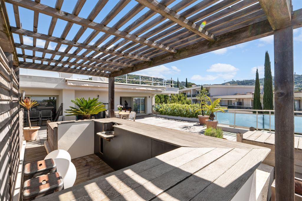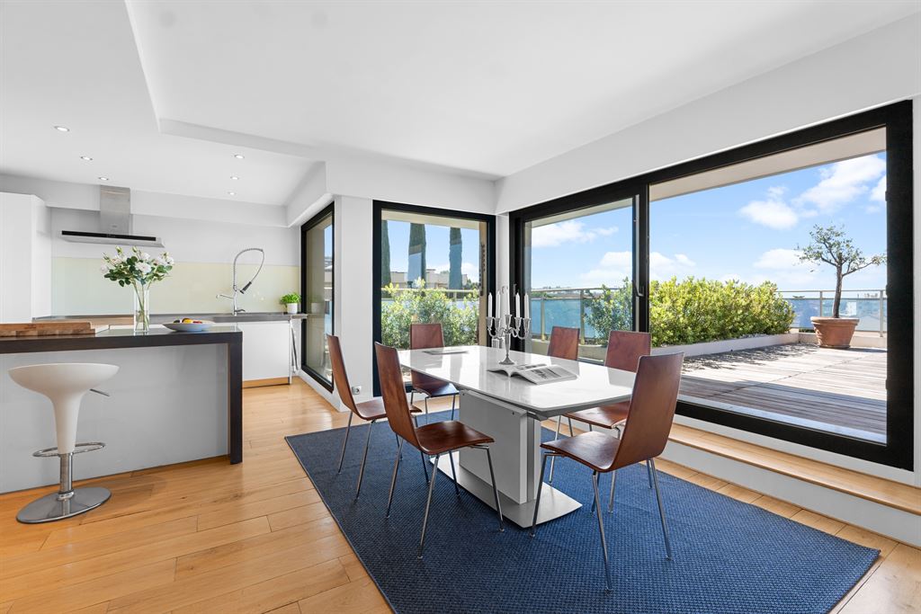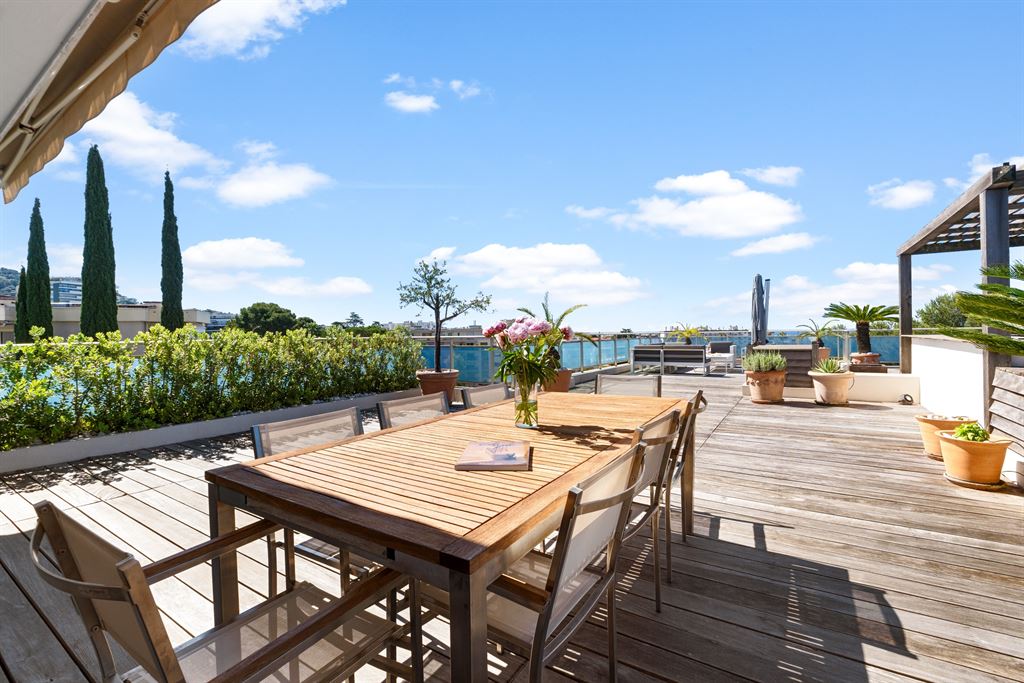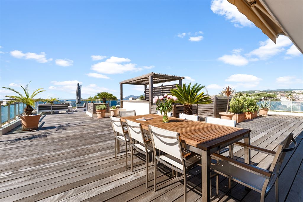 Situated in a quiet and sought-after residential area of Cannes, this top-floor penthouse offers remarkable panoramic views of the sea, the Lerins Islands, and the Esterel massif.