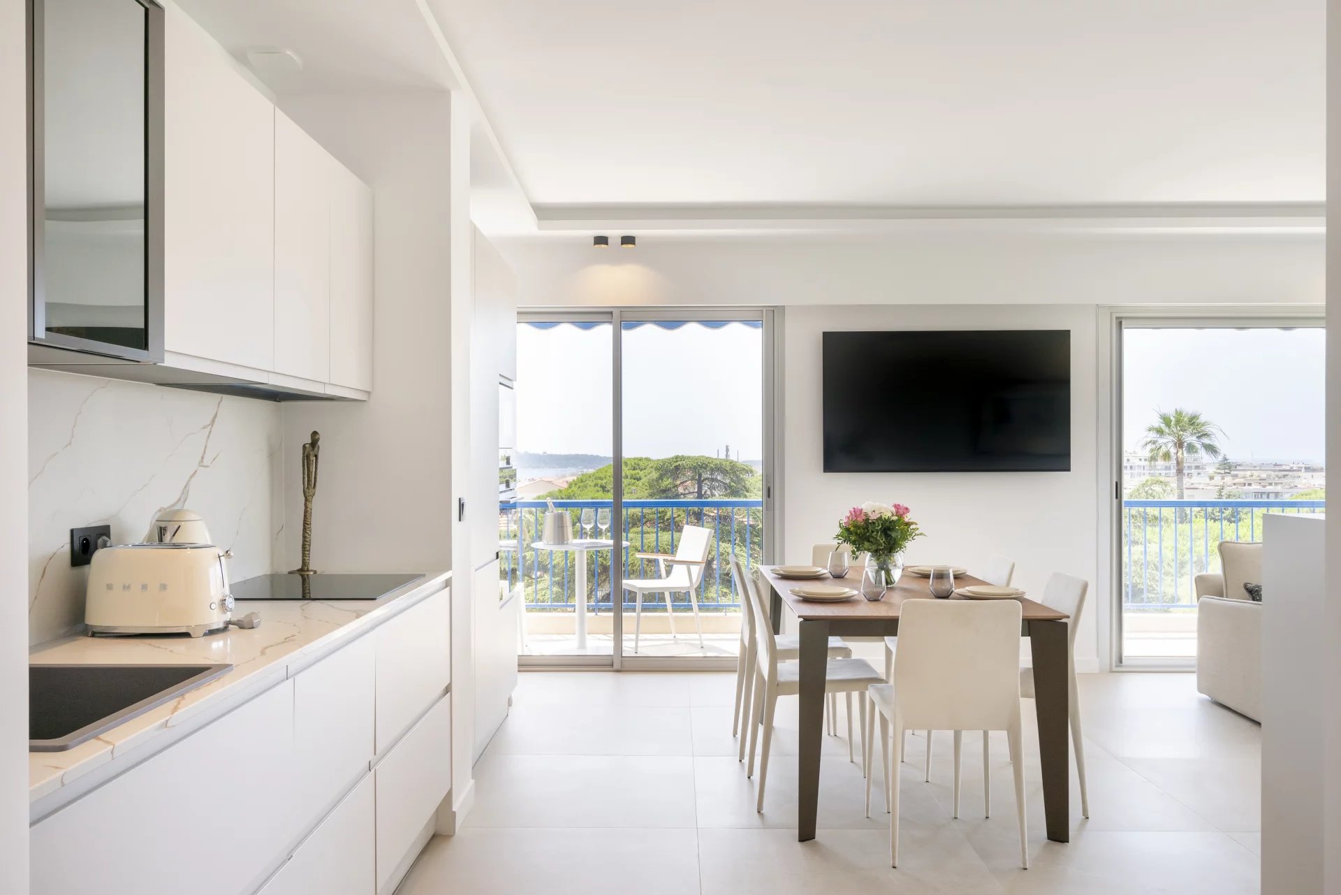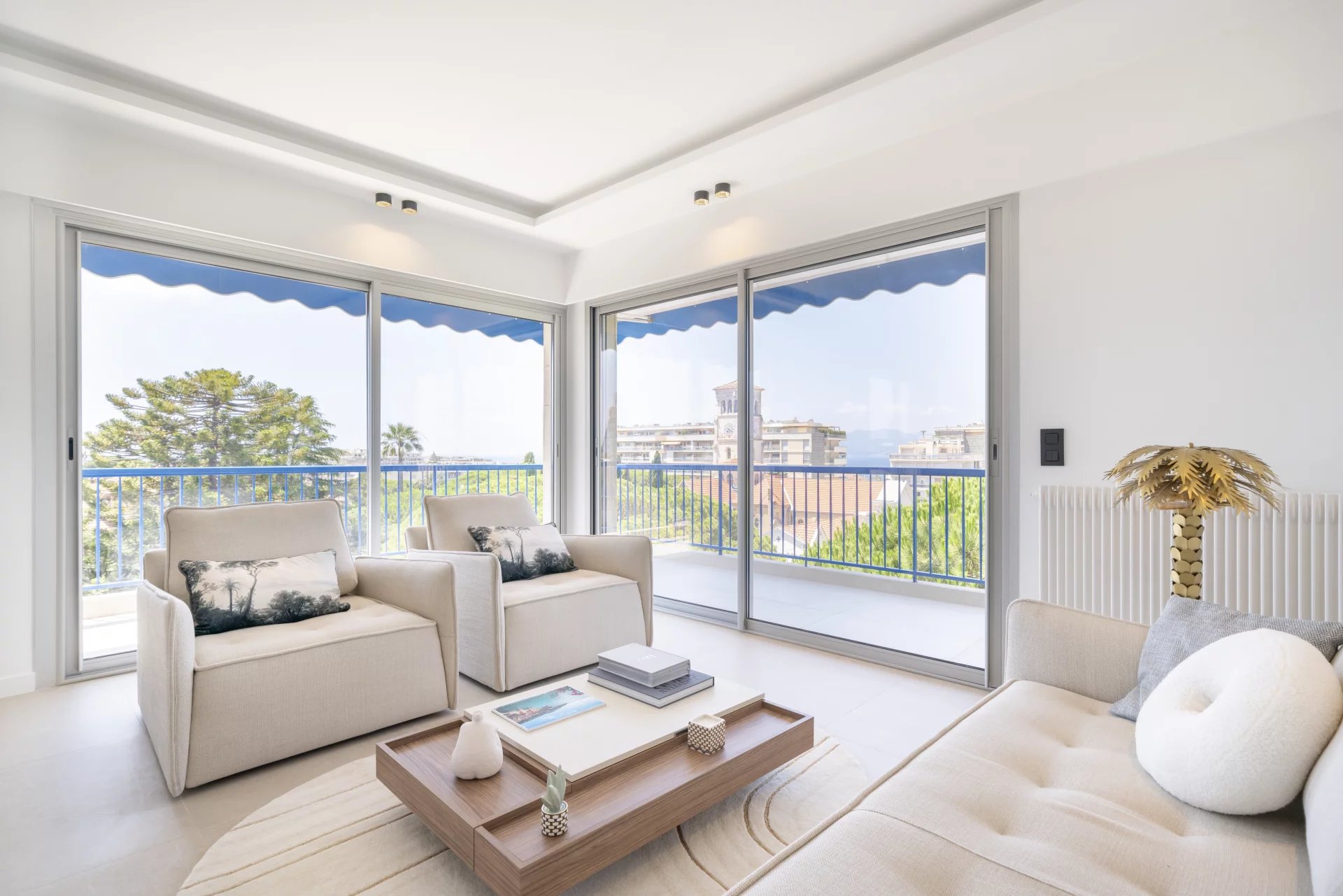 Cannes Basse Californie: In a secure residence with caretaker, fully renovated 91 m2, 3 bedrooms apartment with a lovely south-west facing corner terrace with sea view.