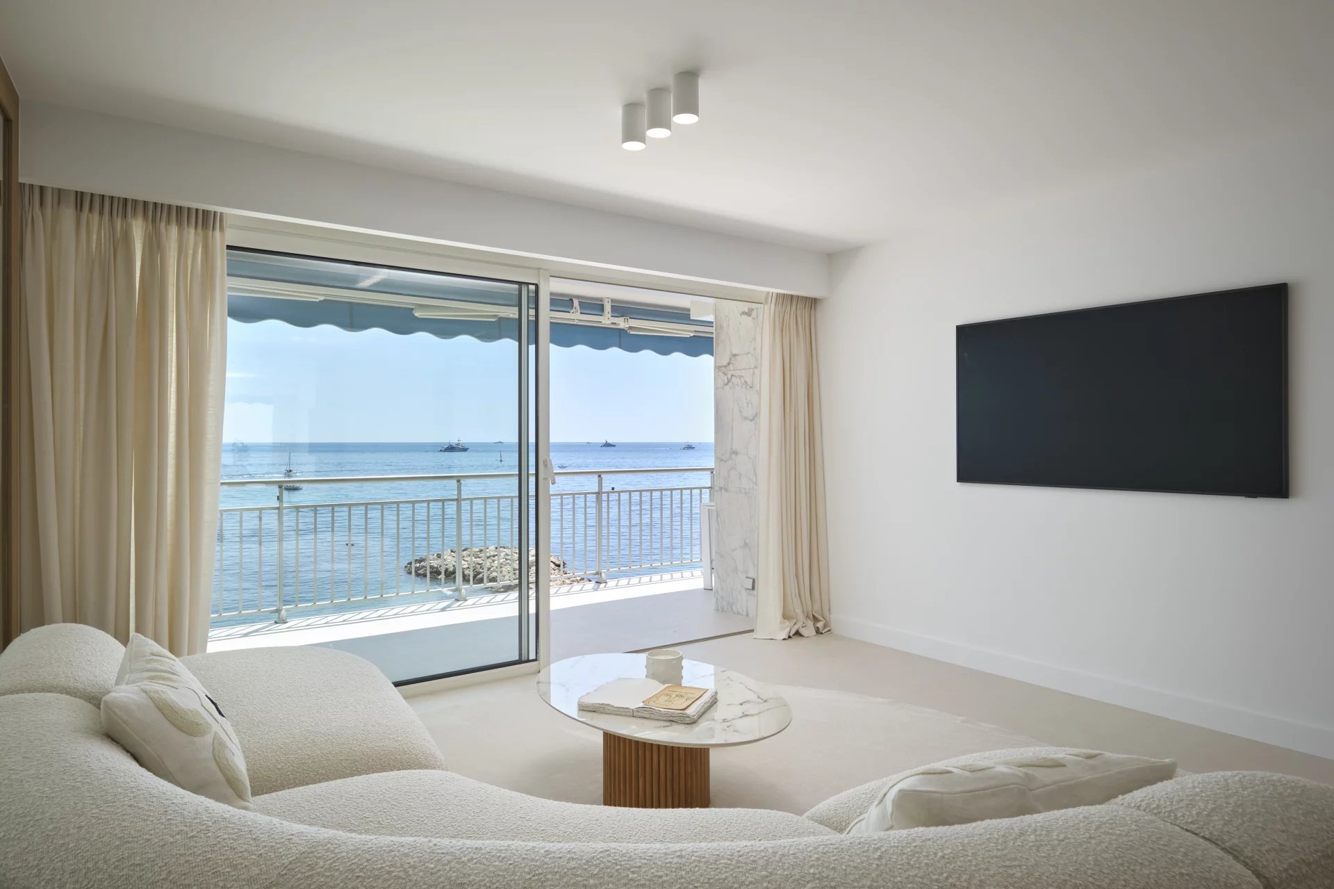 – Spacious living and dining area opening onto a south-facing terrace with direct sea view