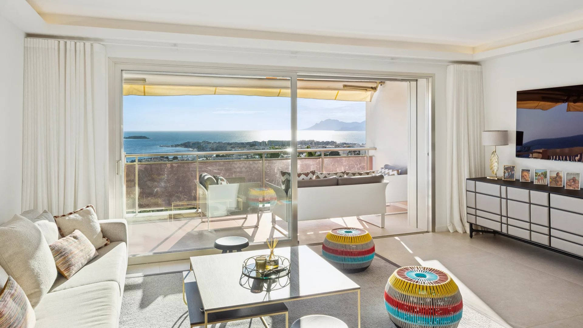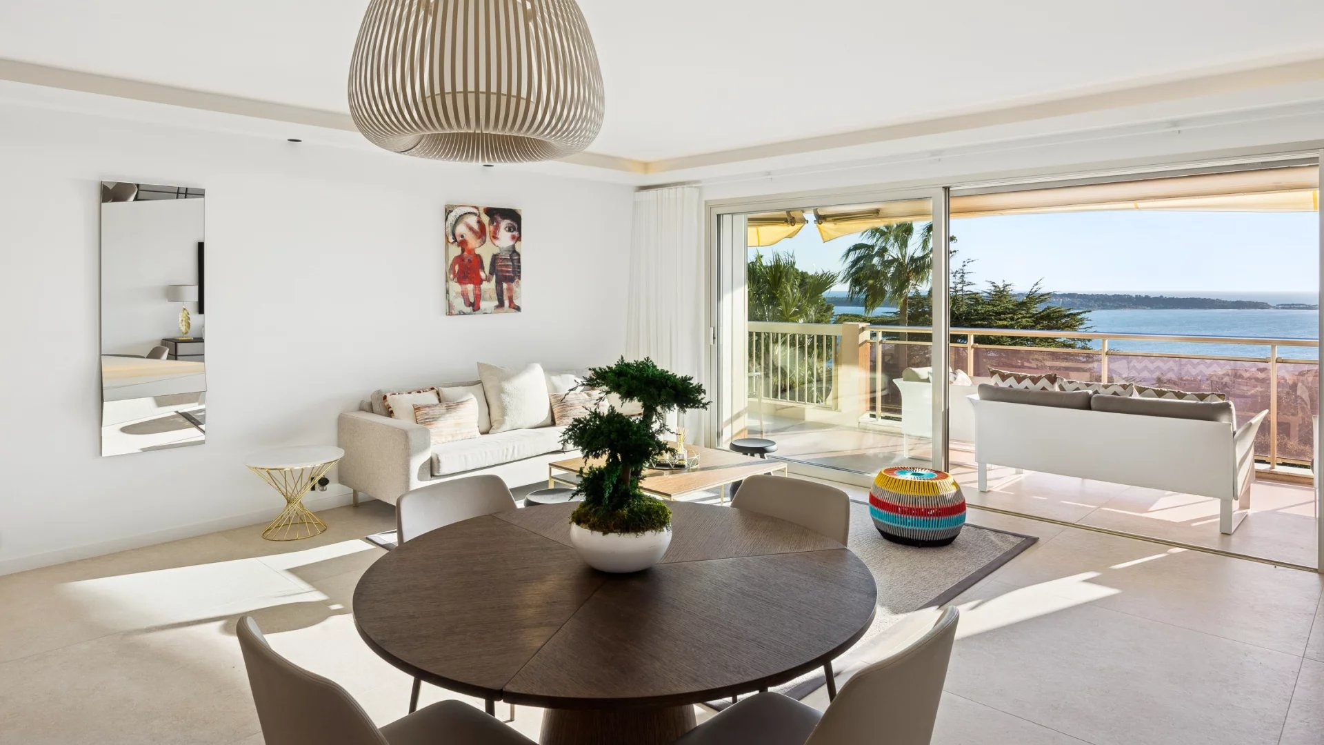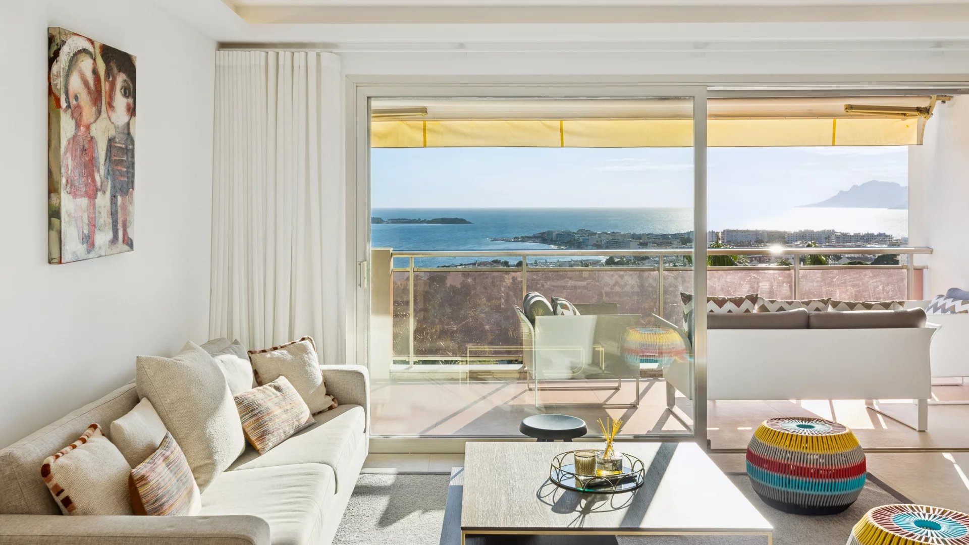 Upon entering, you will be charmed by a spacious and bright living room that opens onto a magnificent terrace of around 23 m2. Enjoy breathtaking views of the Mediterranean Sea, the Lerins Islands, and Palm Beach, perfect for outdoor relaxation.