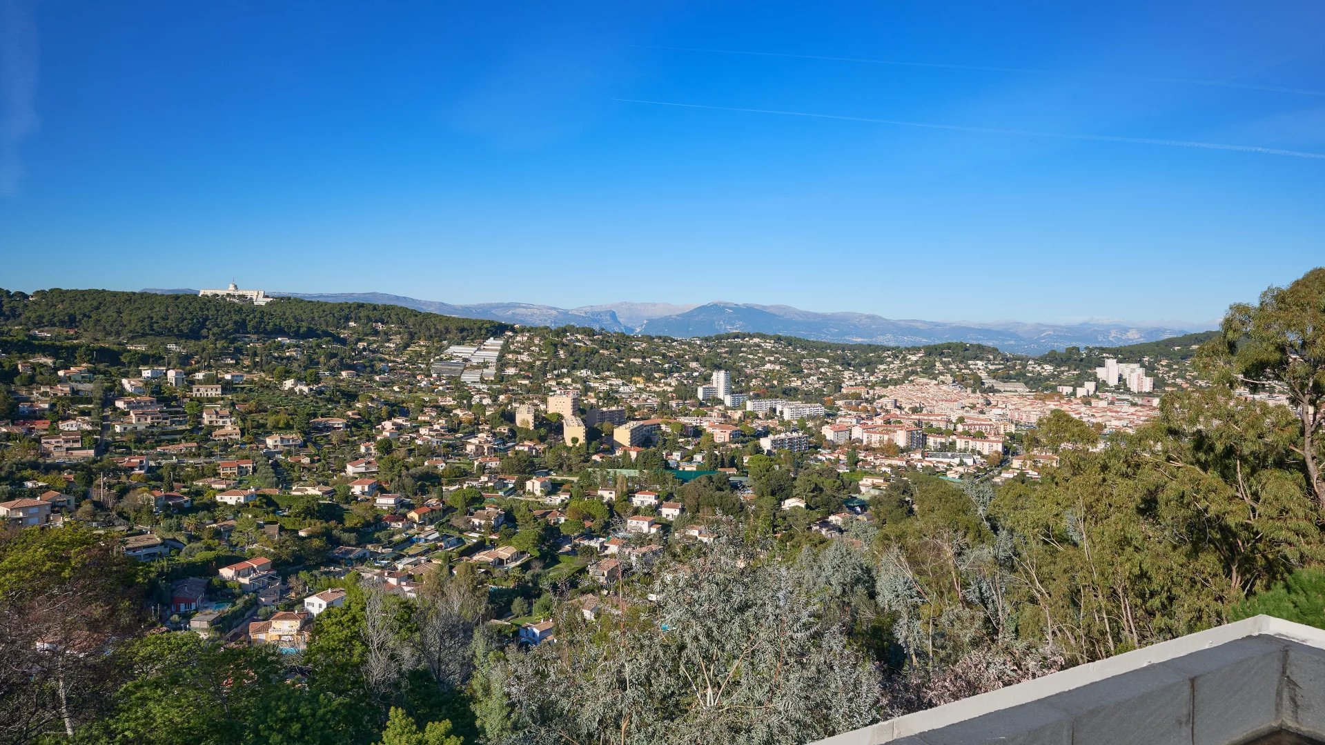 On the heights of Super Cannes-Vallauris, pretty new contemporary villa from 2023 with swimming pool, in absolute calm, unobstructed view of the hills and snow-capped mountains.