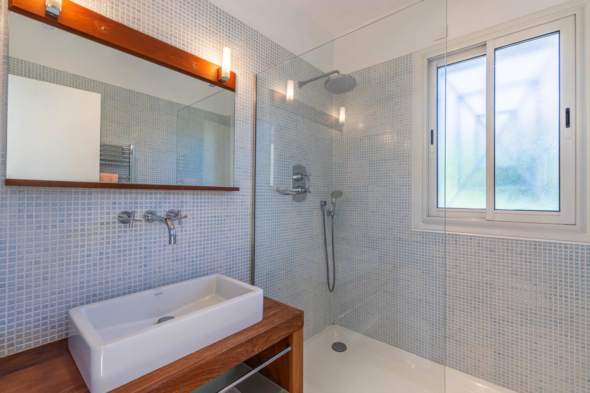 Accommodation consists of a large living and combined dining room, focal fireplace, modern fully equipped independent kitchen, 3 bedrooms including a master opening onto a terrace with little sea view.