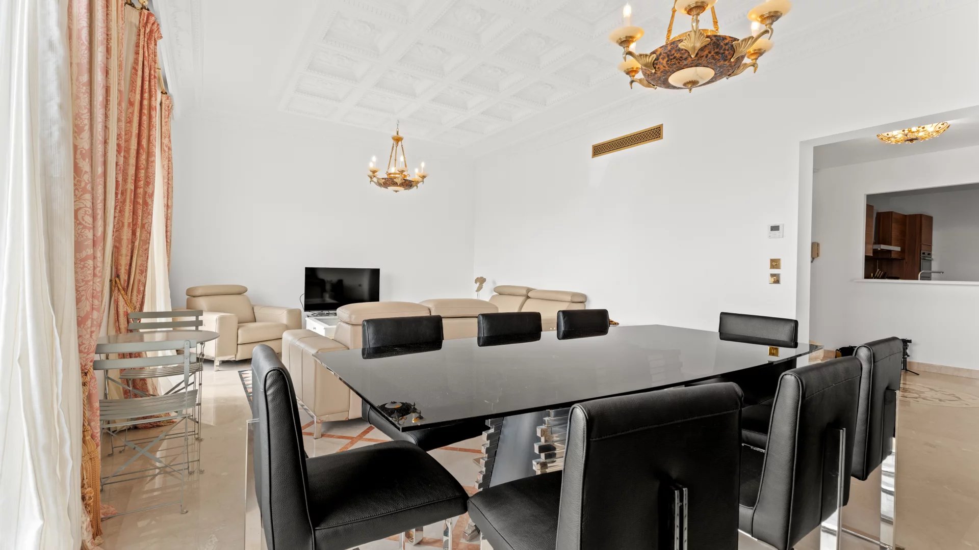 The property features a spacious living room, a fully equipped kitchen, and four comfortable bedrooms, complemented by three bathrooms and an additional shower room. Designed for both family living and entertaining, the apartment offers generous volumes and an exceptional lifestyle on the French Riviera.