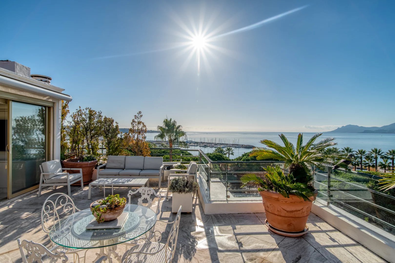 Ideally located opposite the legendary Port Canto, within a prestigious residence, discover this refined duplex penthouse offering panoramic sea views over the Bay of Cannes and the Esterel hills, complemented by two spacious terraces totalling nearly 80m2.