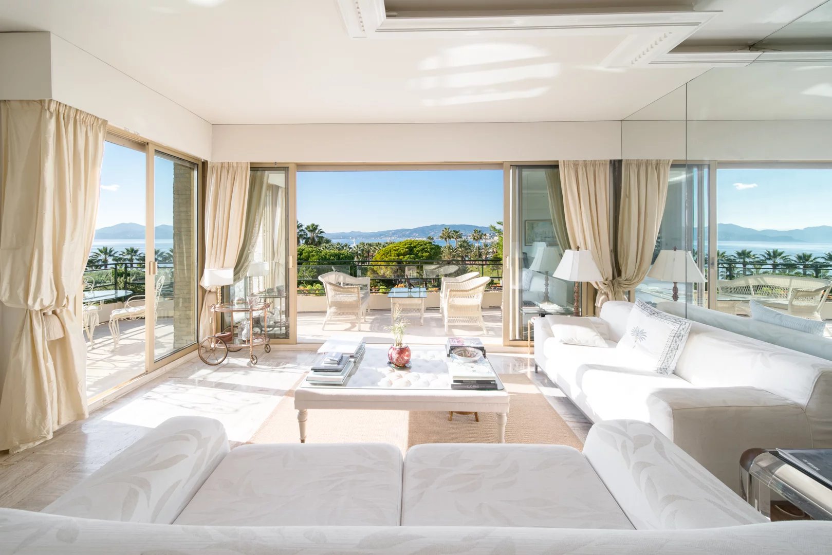– Bright living room opening onto an 18.56 sqm corner terrace with sea views