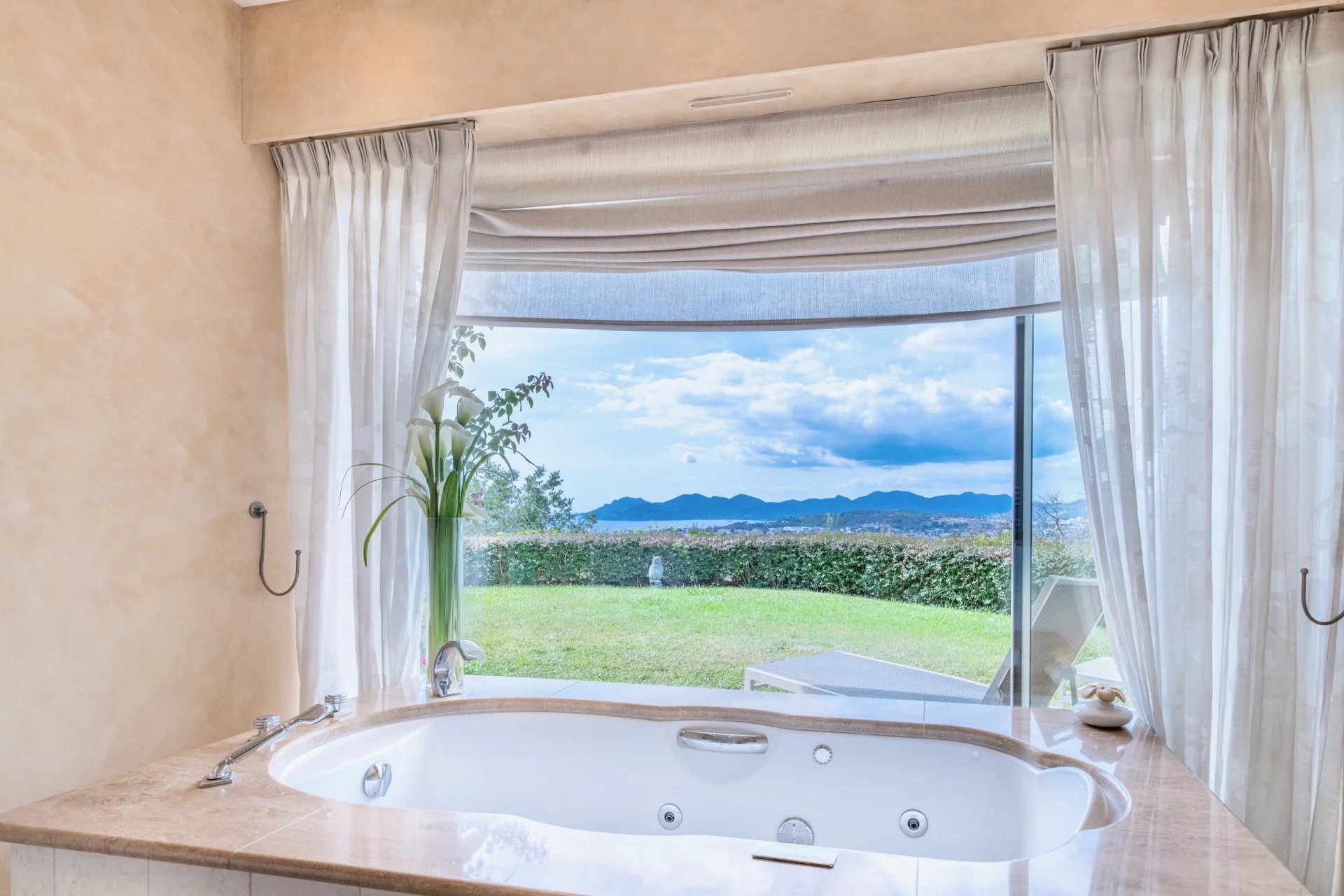 Enjoying panoramic sea views, this beautifully presented villa offers a prestigious address in a quiet and secure Domaine in the hills above Cannes.