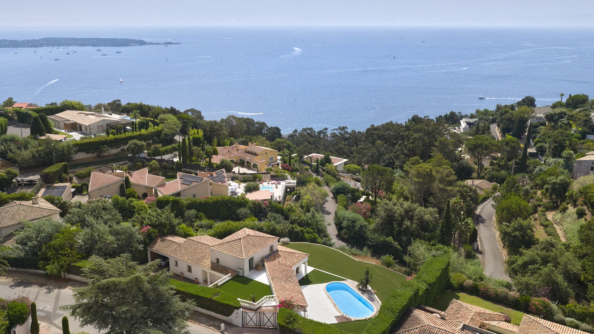 Located in the highly sought-after Super Cannes district, this elegant villa of approximately 210 m2 enjoys a panoramic sea view and a peaceful residential setting. Nestled within a beautifully landscaped elevated plot of around 2,125 m2, this property offers both privacy and proximity to Cannes’ most exclusive amenities.