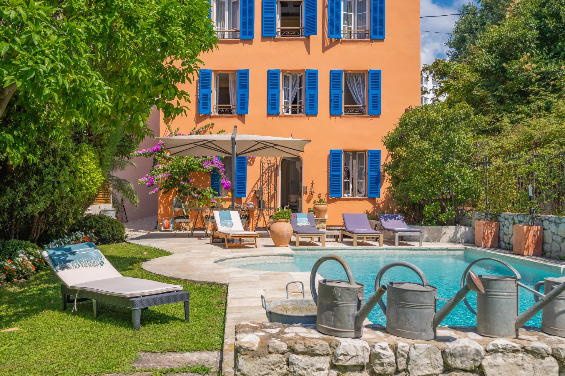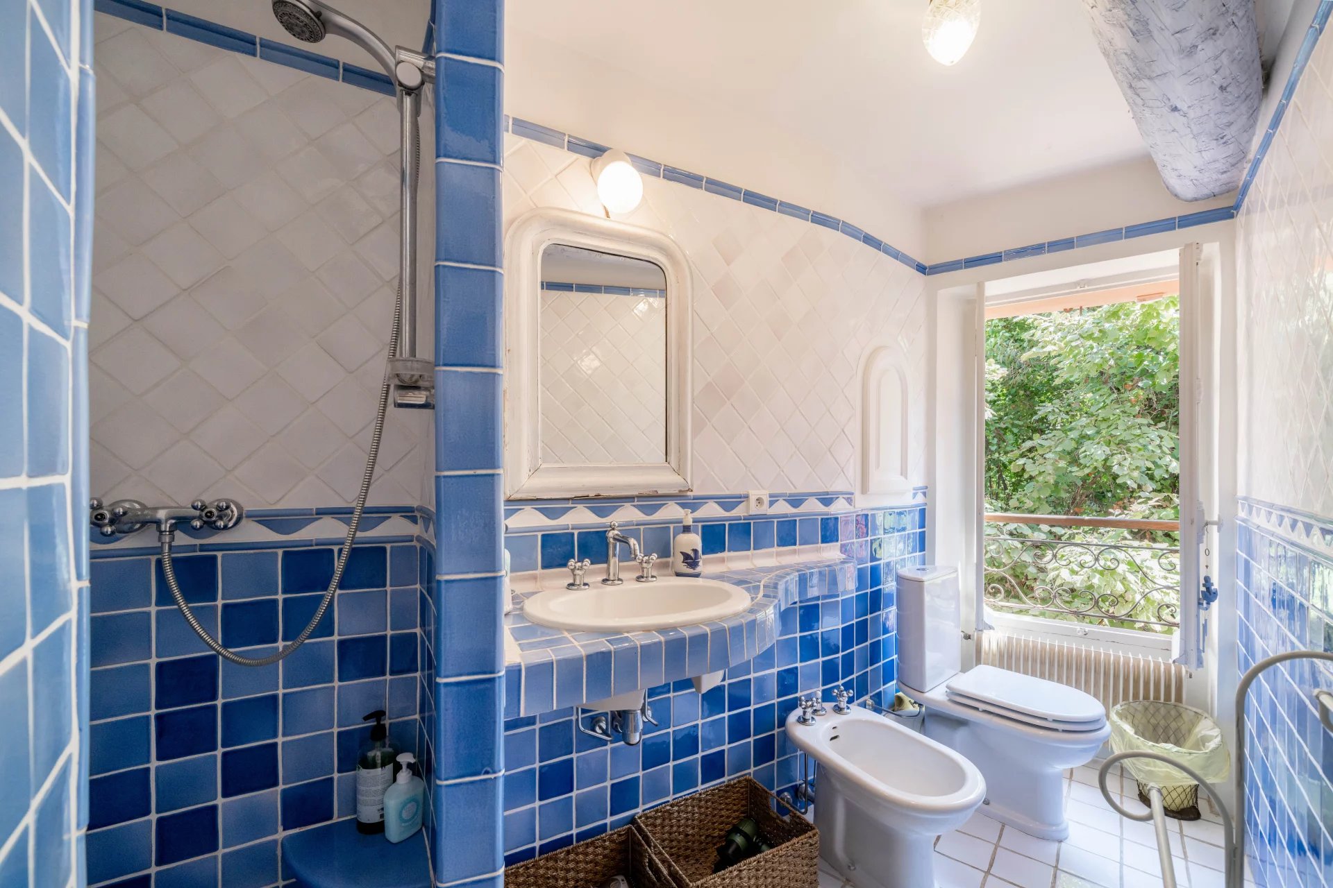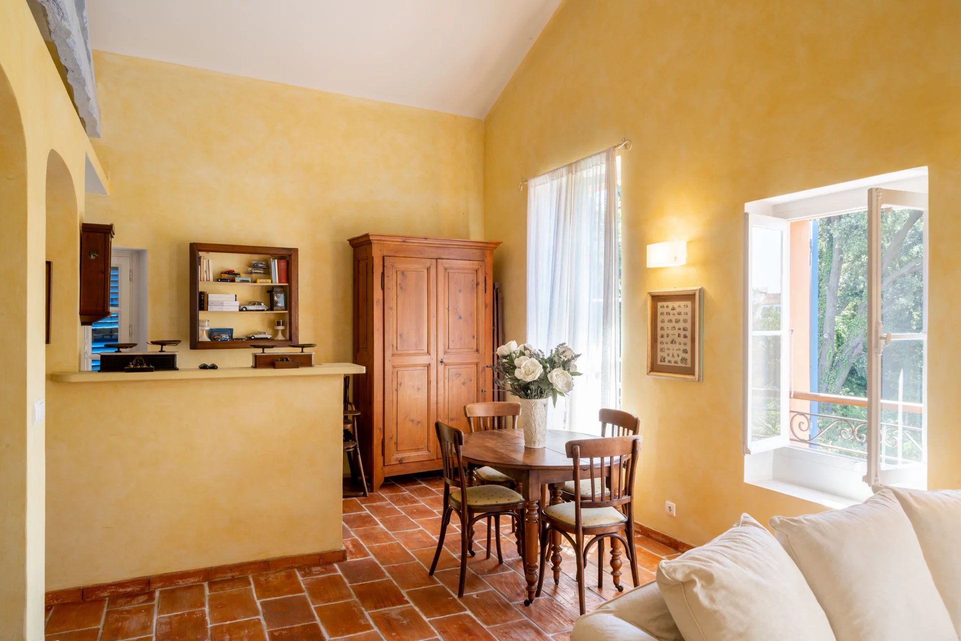 Outside, the landscaped garden features a swimming pool surrounded by relaxation areas, perfect for taking full advantage of the Cote d’Azur climate.