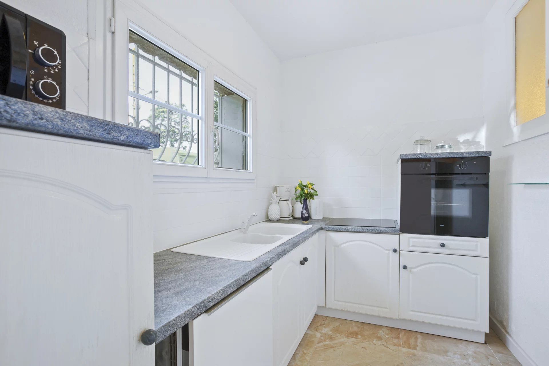 The Mediterranean garden, a true peaceful haven, includes multiple relaxation areas, an integrated above-ground pool, and an independent 20 m2 chalet with a mezzanine and bathroom. A 50 m2 garage completes this rare property, just 15 minutes from the beaches and Cannes city center.