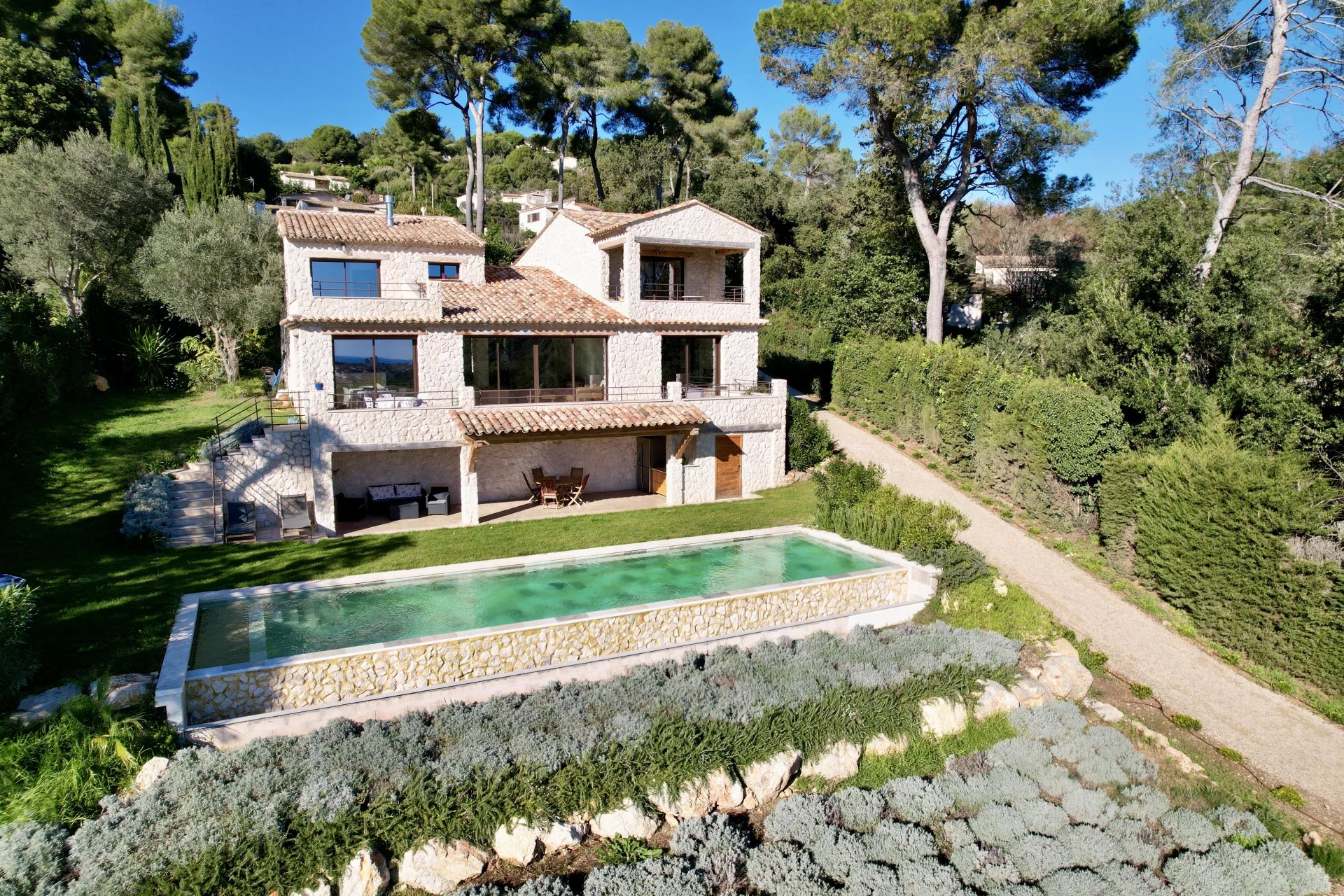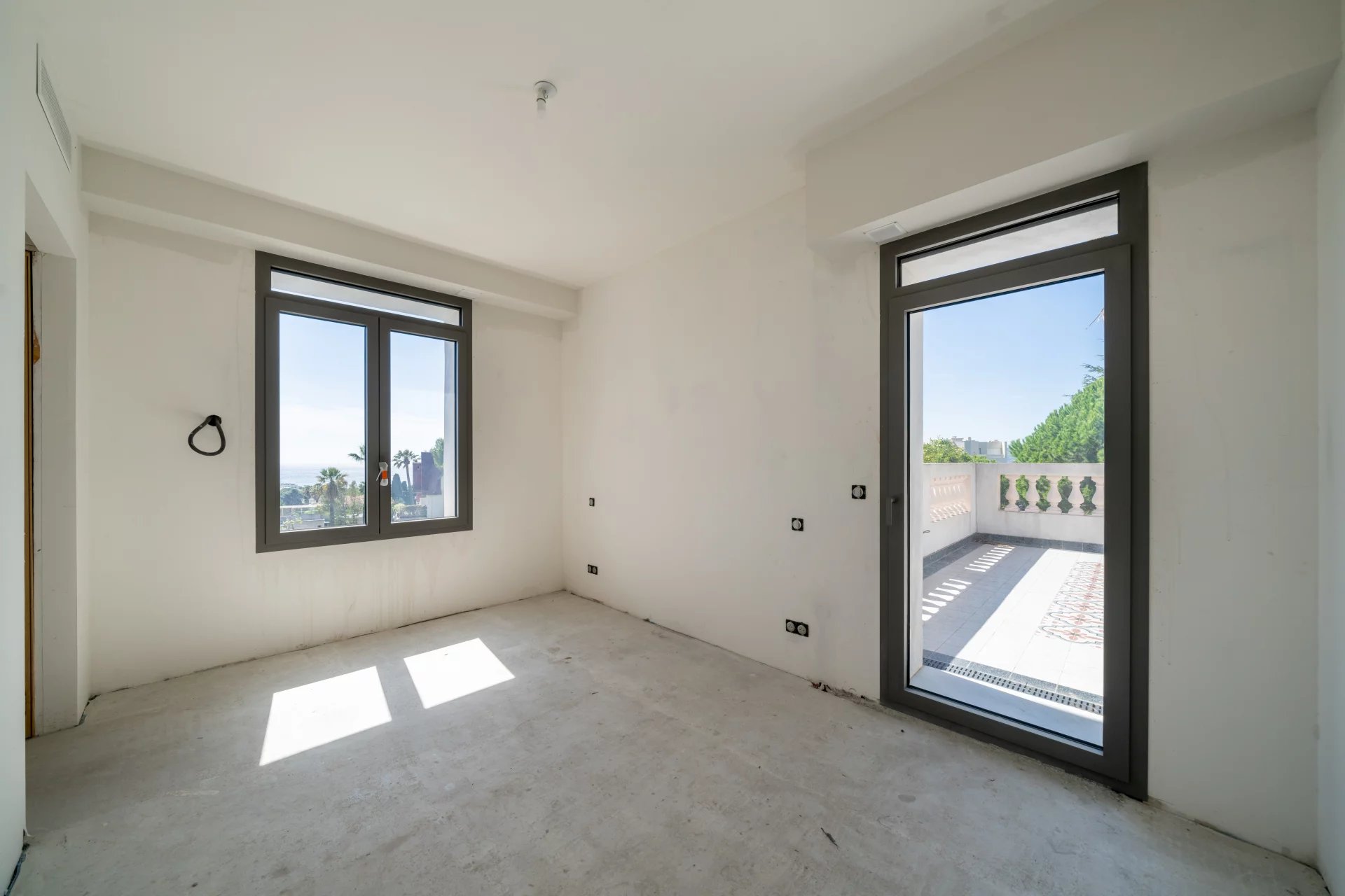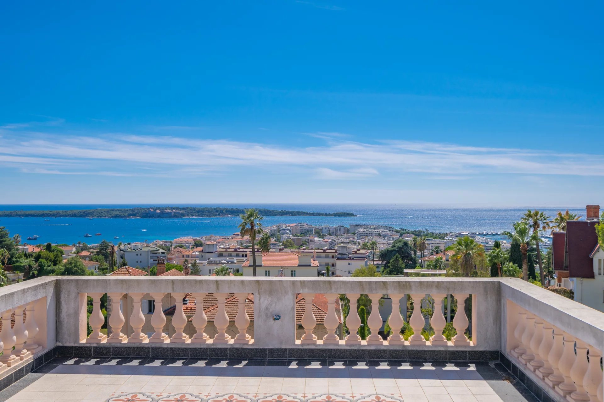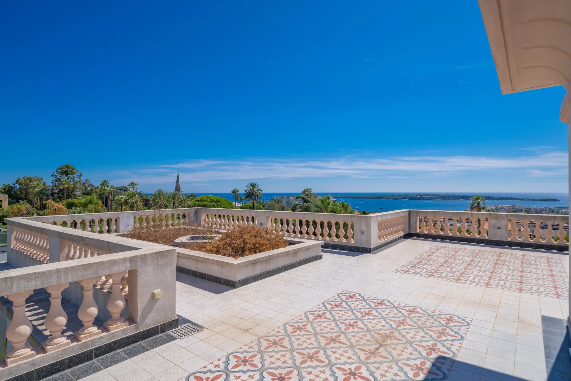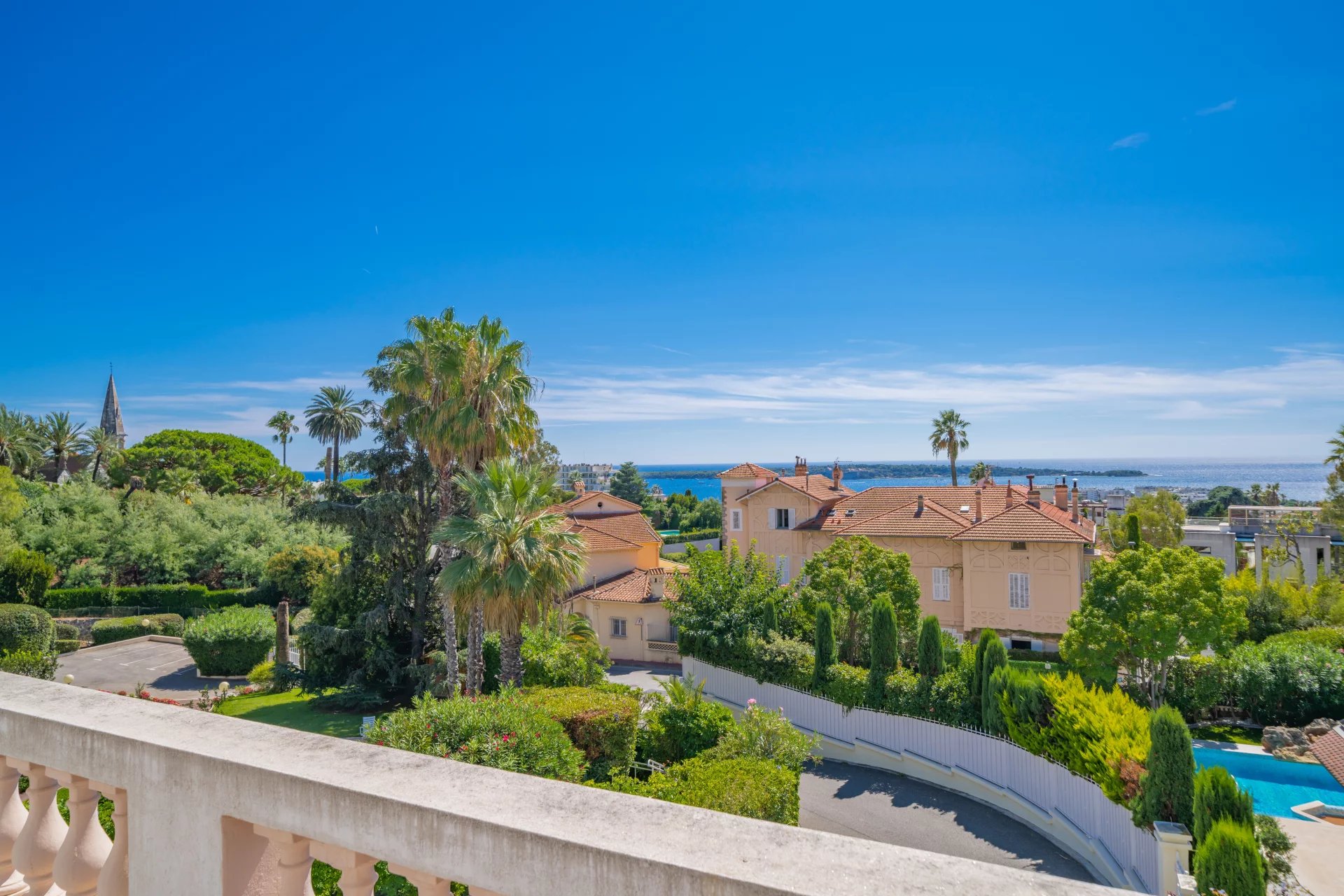 Fully renovated, it offers nearly 400 m2 of living space while preserving its original architectural charm. Nestled at the end of a quiet cul-de-sac, it enjoys full southern exposure and boasts panoramic sea views over the Bay of Cannes and the Lerins Islands.