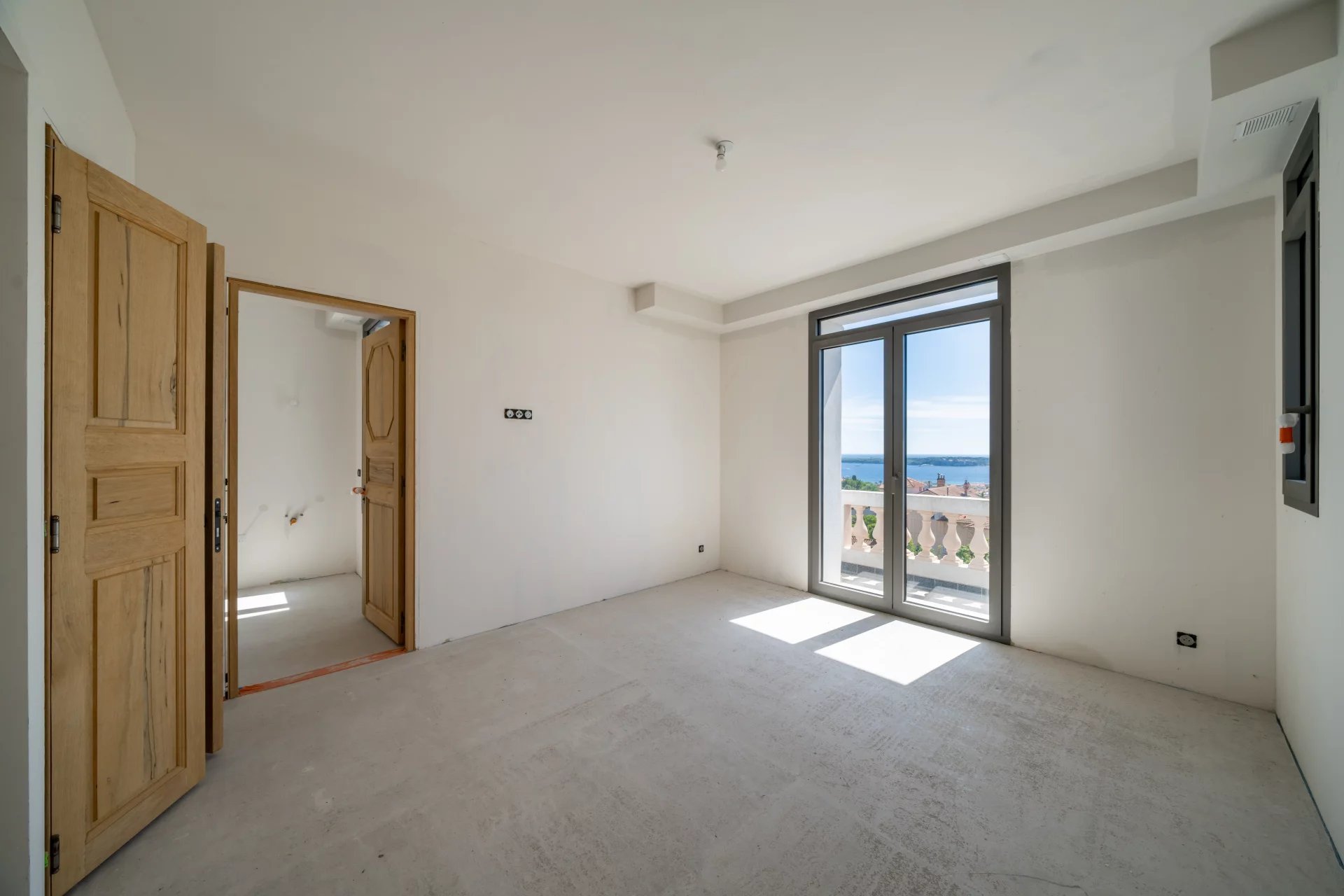 On the top floor, a fourth en-suite bedroom opens onto a spectacular rooftop terrace with breathtaking views of the sea and surrounding hills.