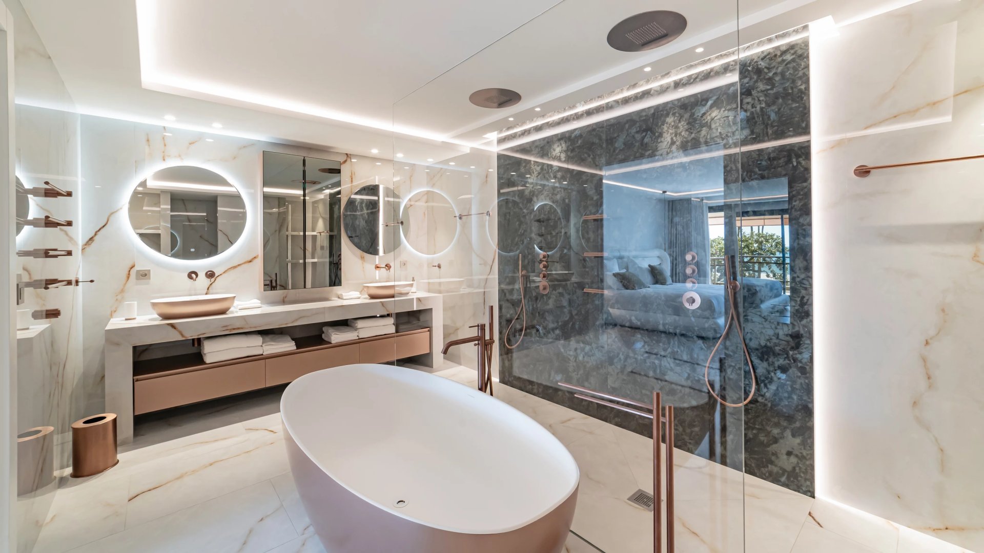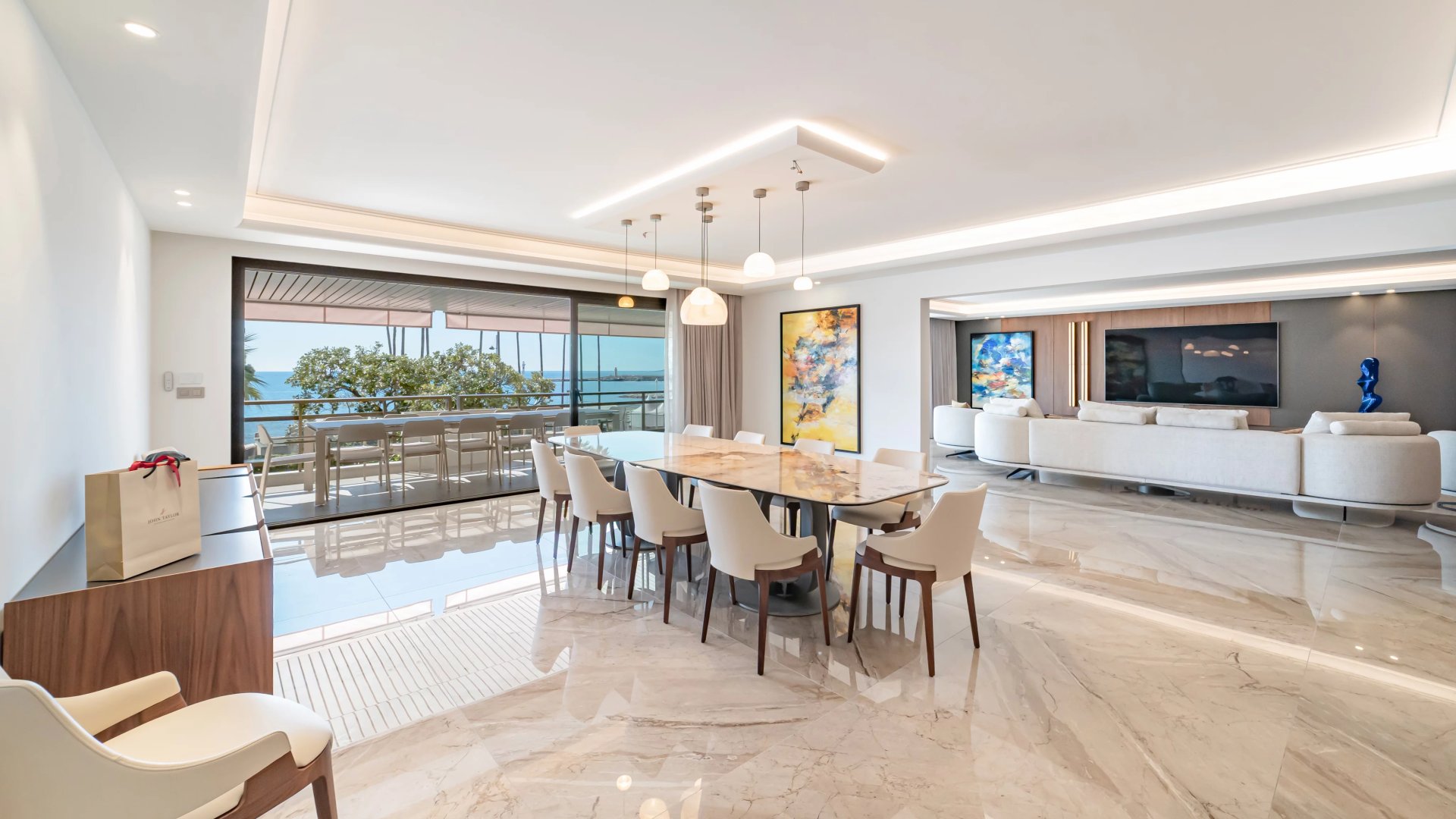 Located within one of the most prestigious residences on La Croisette, just steps from the Palais des Festivals and the Majestic Hotel, this sumptuous contemporary apartment of about 300 m2 offers an exceptional living environment.
