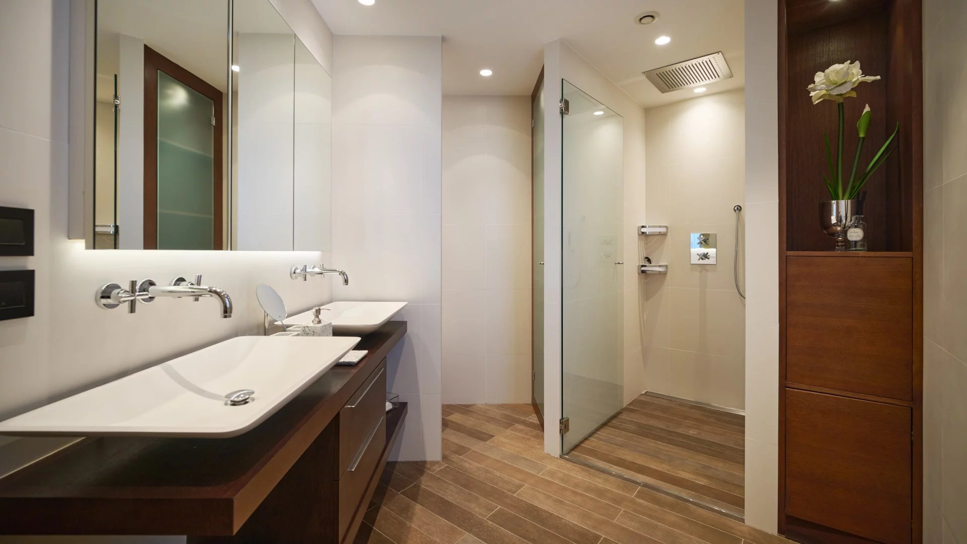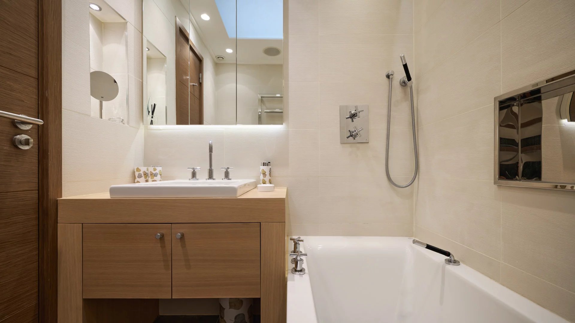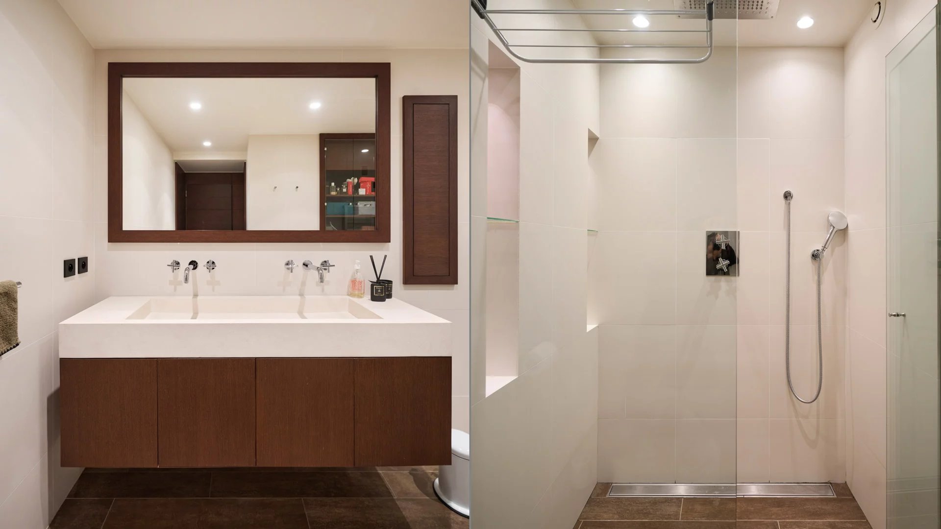It comprises a vast living/dining room with a bar area and two wine cellars, opening onto a spectacular 163 m2 terrace, offering breathtaking views of Port Canto, Palm Beach, the Bay of Cannes and the Lerins Islands. The fully fitted, closed kitchen has access to a second terrace. The apartment comprises four bedrooms, including a master bedroom with en suite bathroom and shower, and access to the terrace with sea view. An additional bedroom with private shower room, and two further bedrooms sharing a shower room.