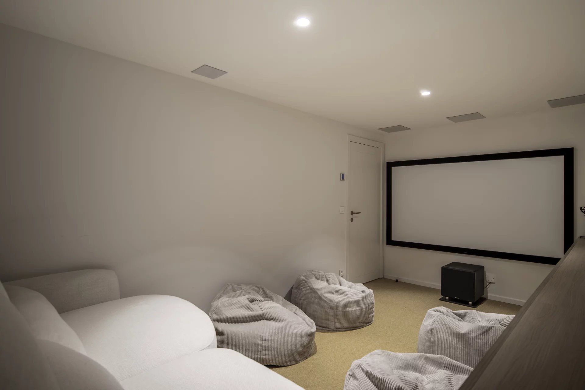Garden level: Independent apartment with private entrance, kitchen, living room, en-suite bedroom, gym, and soundproofed cinema room