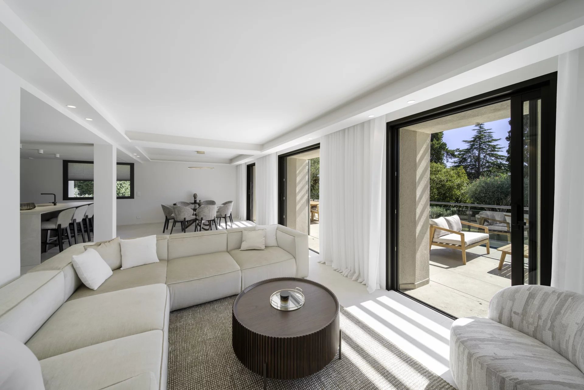 Nestled in a prestigious residential area of Cannes, just five minutes from the renowned beaches of La Croisette, this luxuriously renovated villa offers approximately 287 m2 of elegant living space combined with beautifully landscaped grounds and modern amenities.