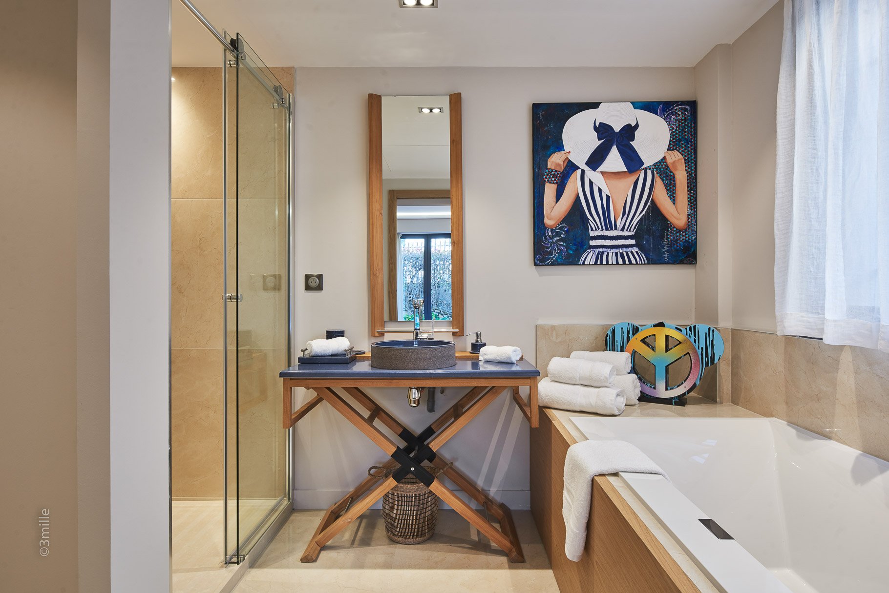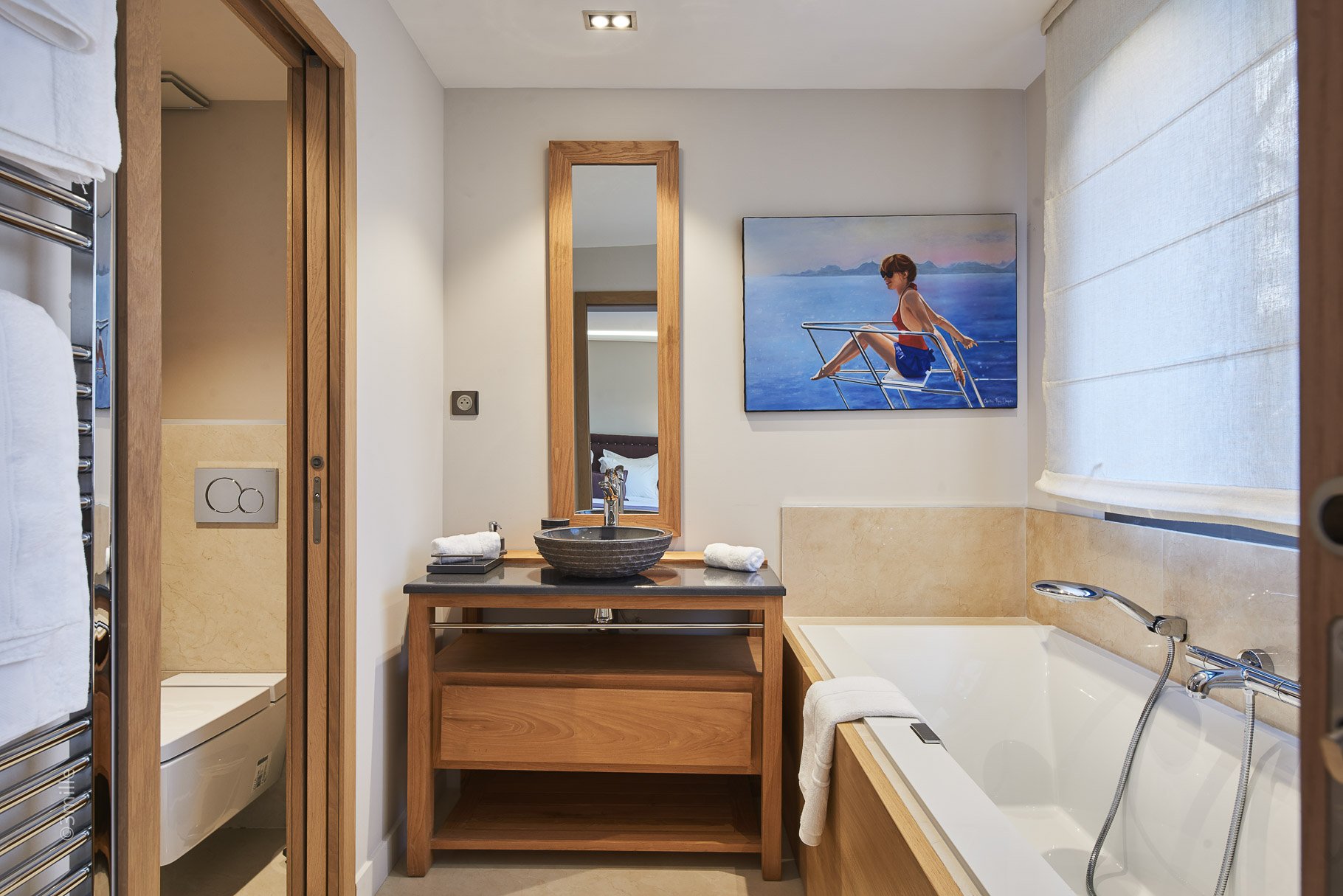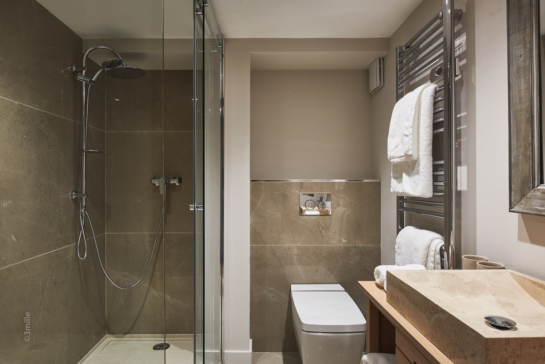 Accommodation composed of a large living room, a dining room opening onto the outdoor area, a fully equipped kitchen, five bedrooms en suite including a master bedroom, a massage room and rest area.