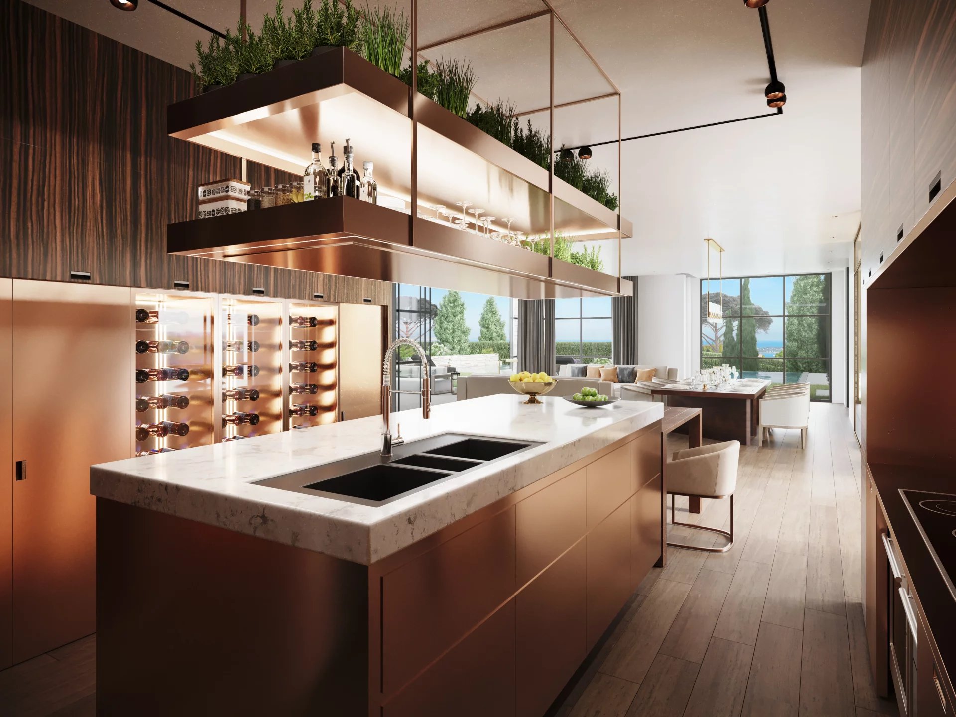– Fully equipped designer kitchen featuring premium Miele and Gaggenau appliances