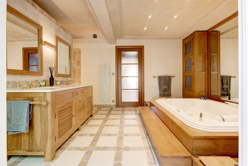 The villa includes 6 en suite bedrooms, including a master suite with a dressing room and private terrace overlooking the sea, ensuring optimal comfort.
