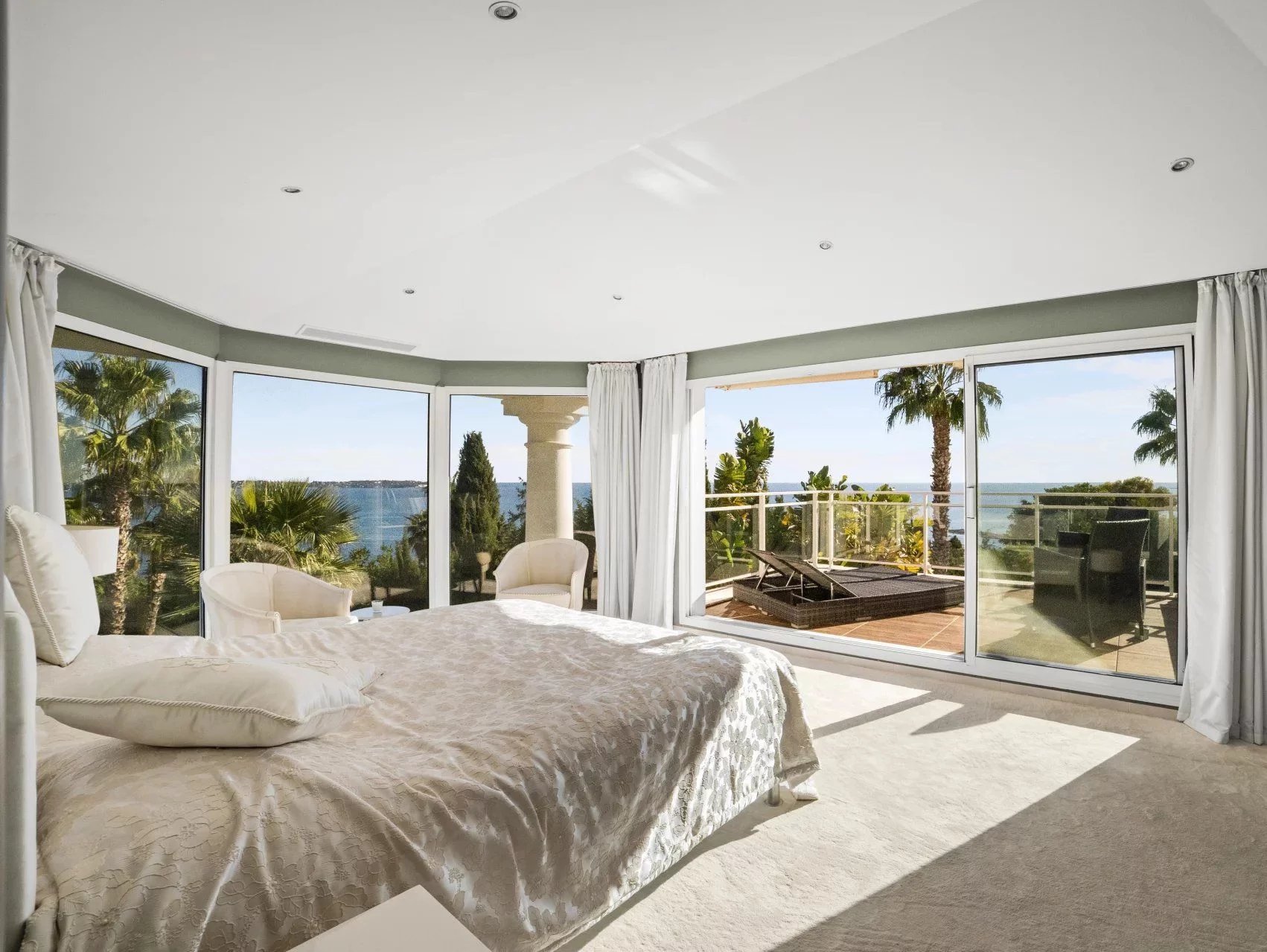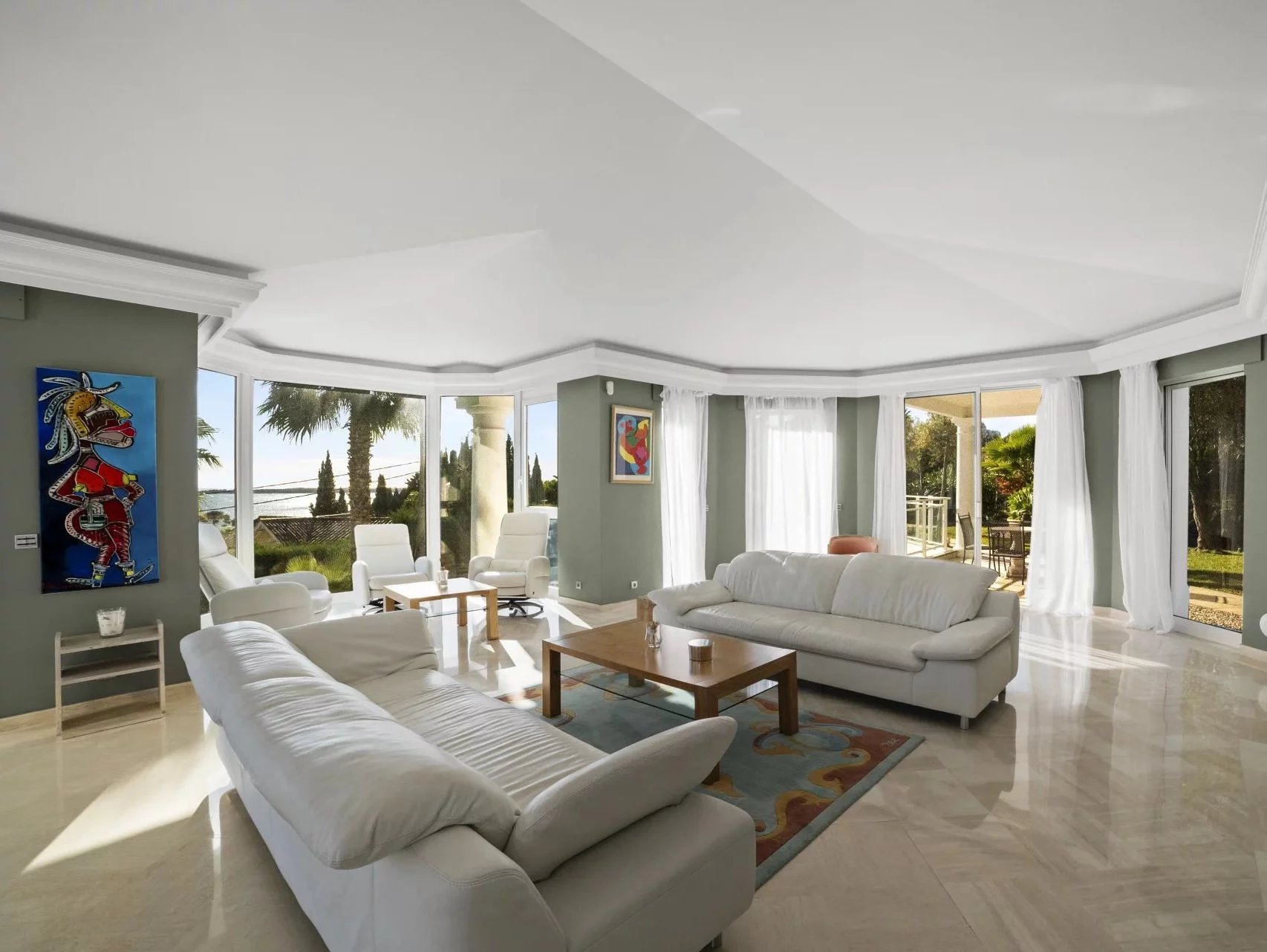 This sea view villa blends timeless Mediterranean elegance with generous living spaces. Reception areas are bright and open onto the terraces, creating a refined yet welcoming atmosphere, ideal for a primary or secondary residence.