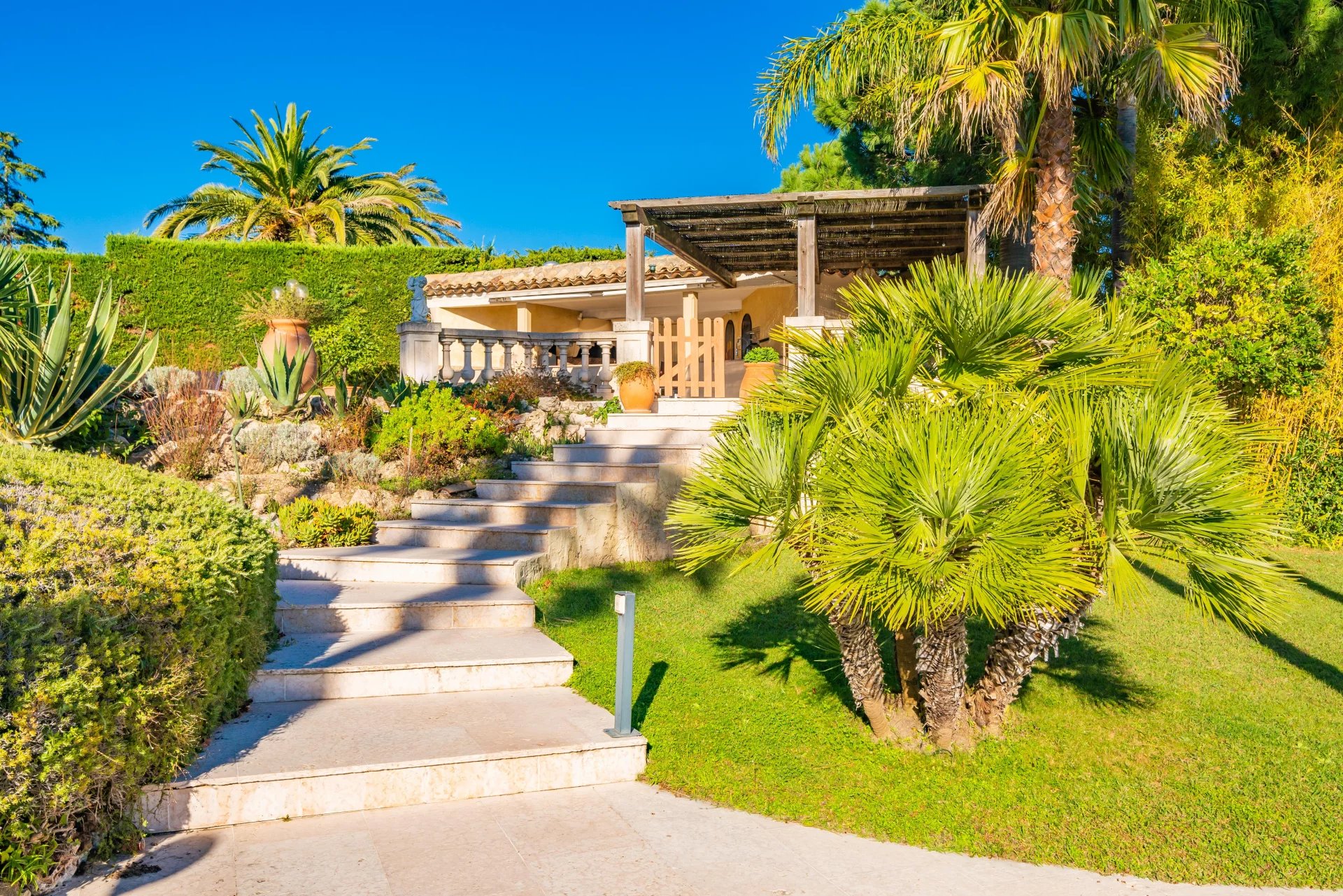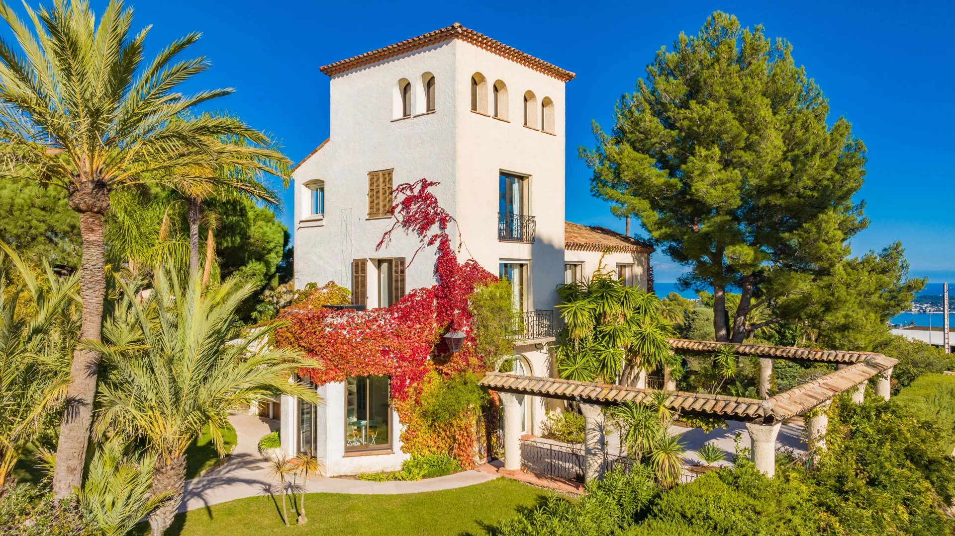 Located in the prestigious Super Cannes area, this villa with Provencal charm has an exceptional 360 degree panoramic sea view over the Bay of Cannes, the Alps and the Lerins Islands.