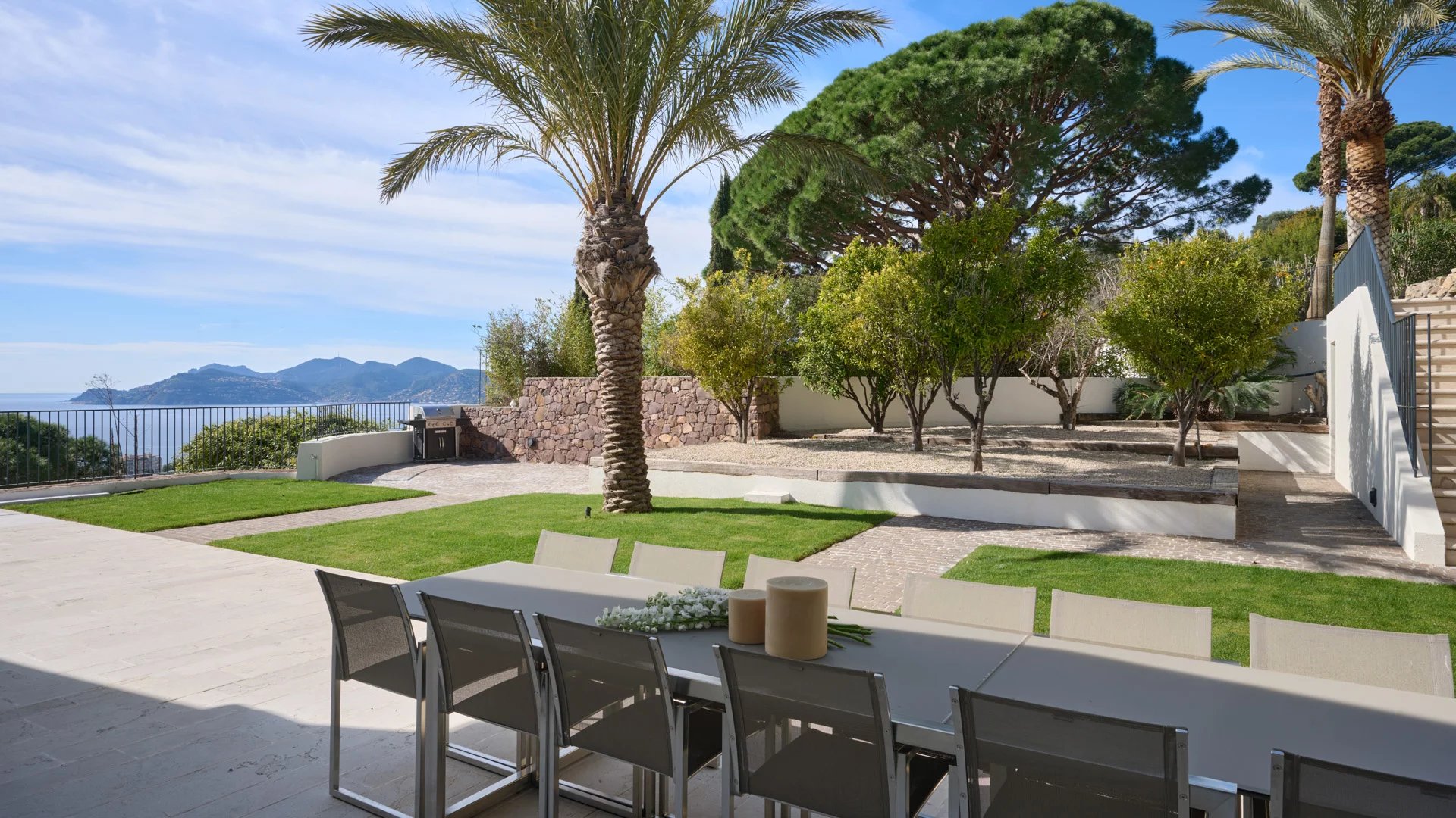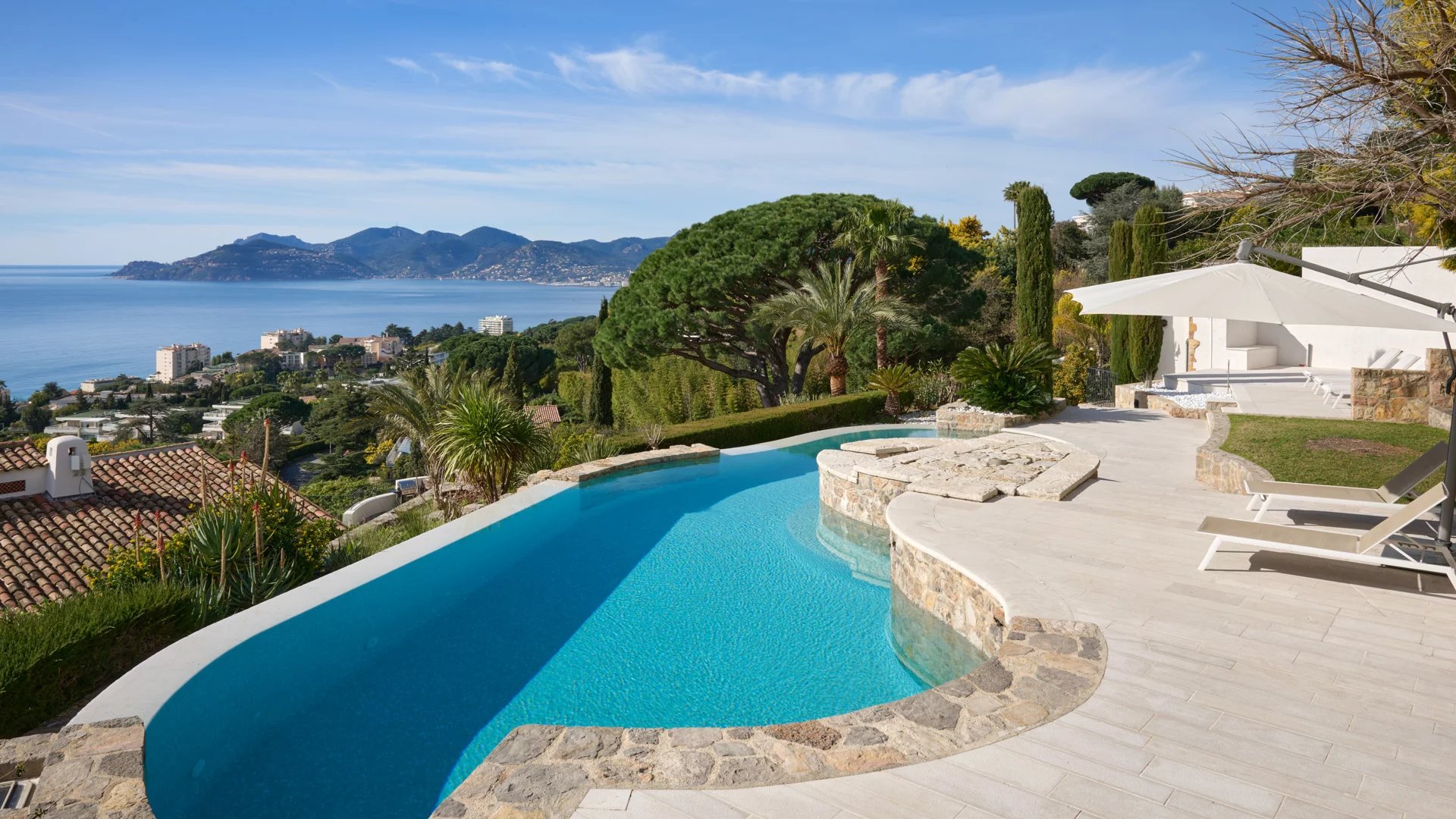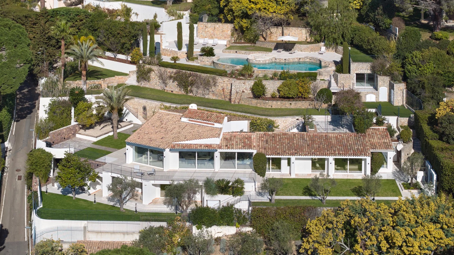 Nestled in an exclusive and elevated setting, this stunning renovated villa offers breathtaking panoramic views over the Bay of Cannes, Cap d’Antibes, and Le Suquet. Set within a beautifully landscaped 2,400 m3 garden, the property is a private sanctuary of luxury and elegance, featuring multiple tiered terraces, a heated swimming pool with Jacuzzi, and lush Mediterranean greenery, including majestic palm trees and elegant cypress trees.