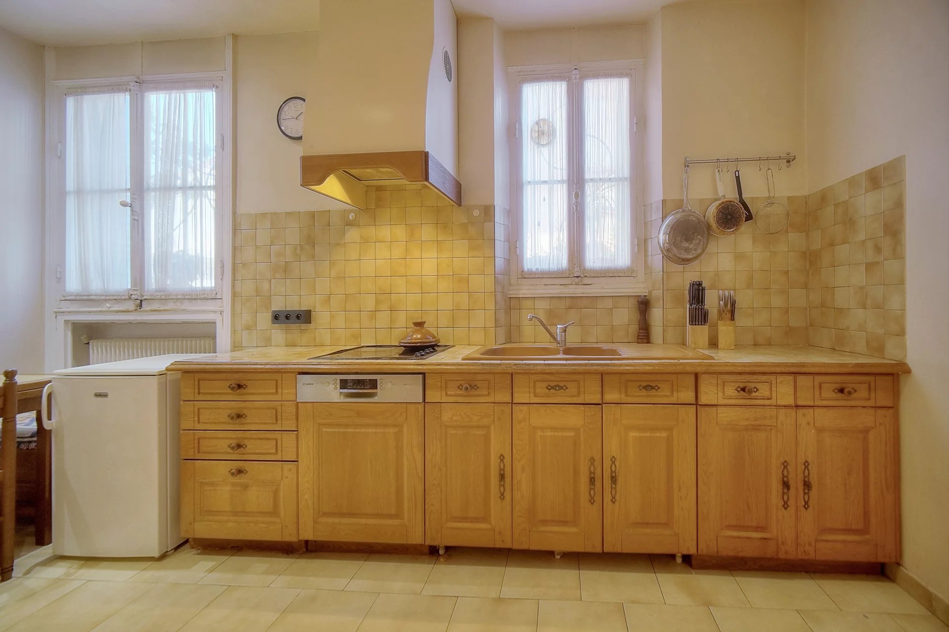 The interiors are bathed in natural light, with a thoughtful layout that blends generosity of space with refined finishes. The large living room invites moments of relaxation and conviviality, while the modern kitchen, fully equipped, is designed for both daily living and entertaining at scale.