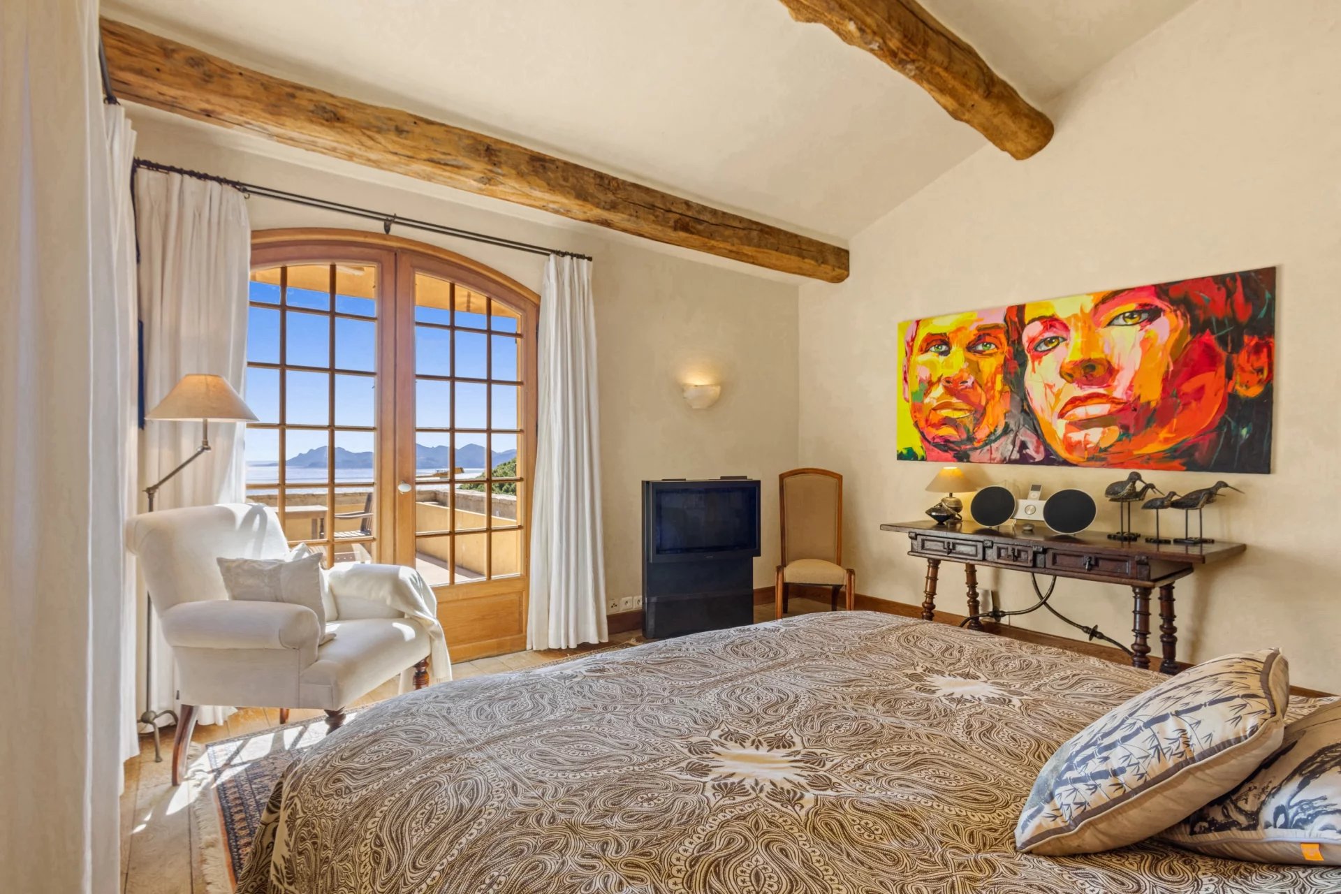 Set within 5,500 m2 of meticulously landscaped gardens, the 650 m2 residence achieves a perfect harmony between rustic authenticity and refined luxury. The interiors showcase magnificent exposed wooden beams and stone archways, while expansive glass doors frame the sea views and flood the living spaces with golden Riviera light.