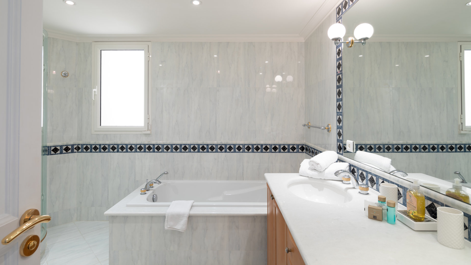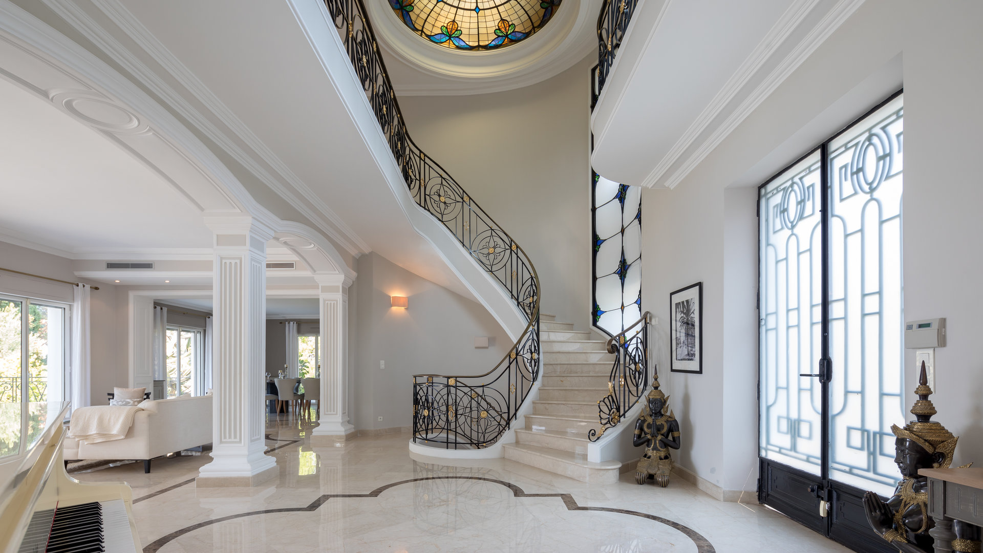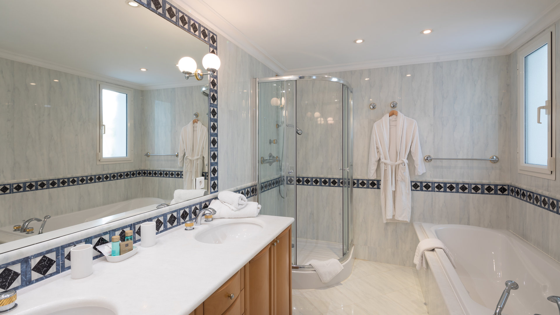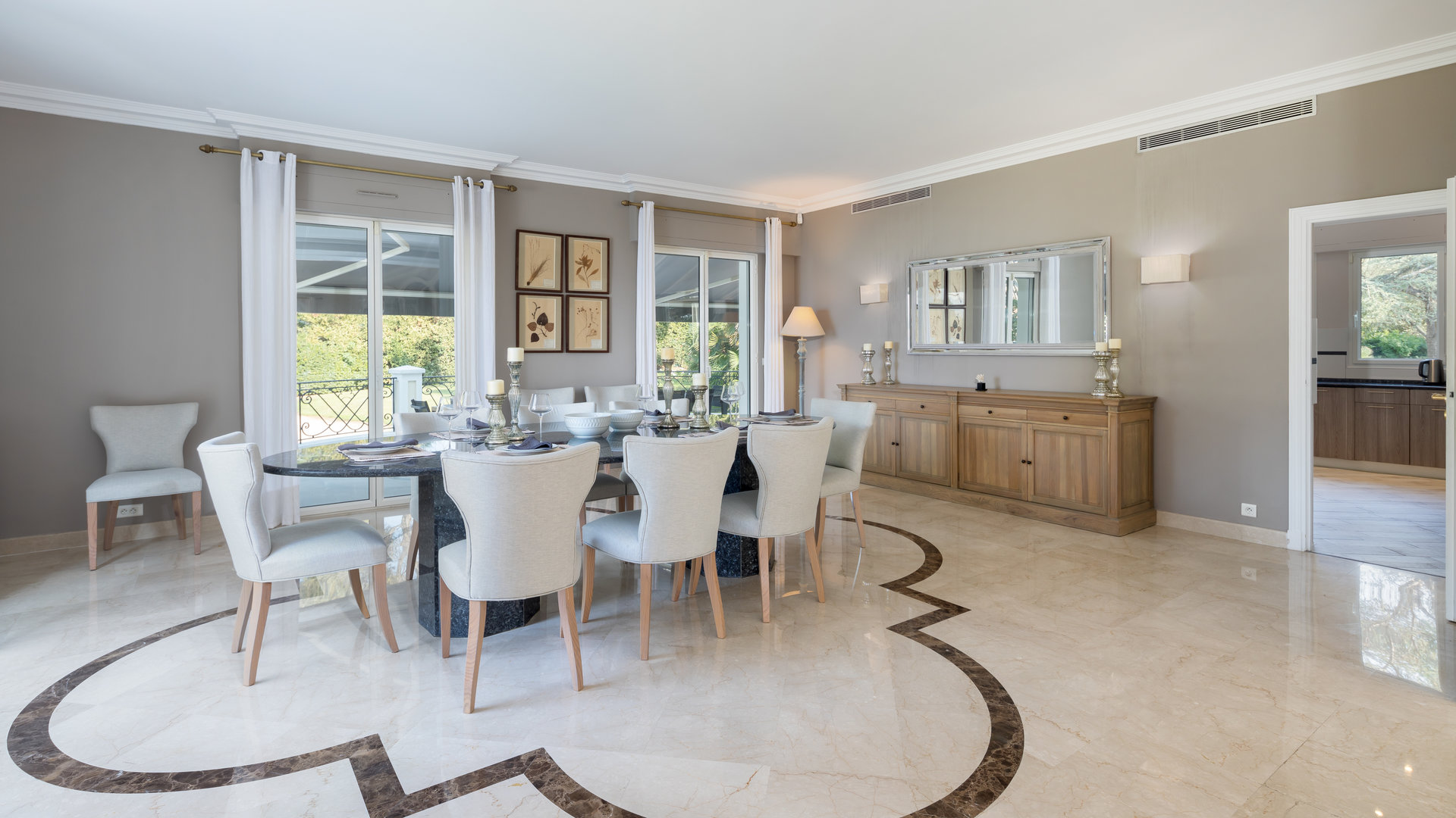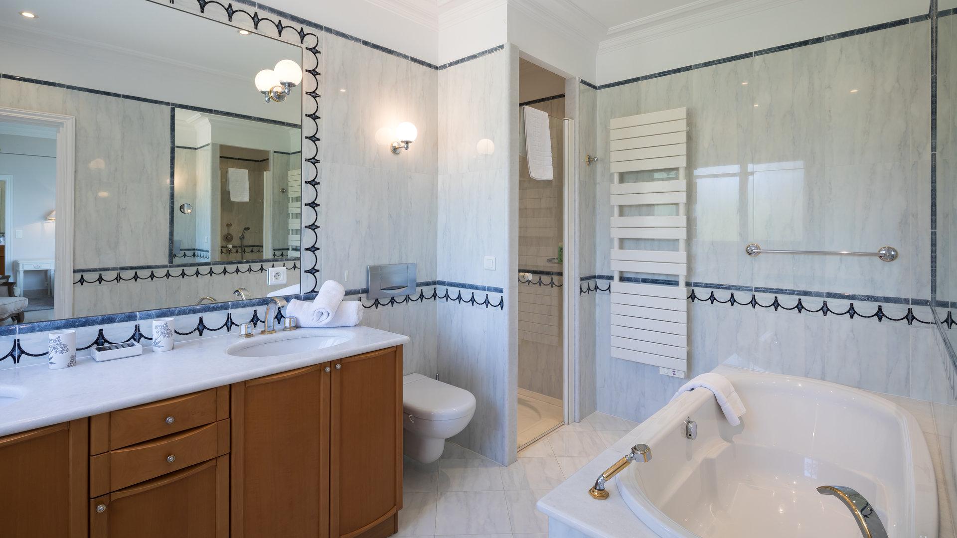 Garden level: 6 en suite bedrooms each giving onto a small terrace. Staff accommodation with equipped kitchenette, bathroom and WC.