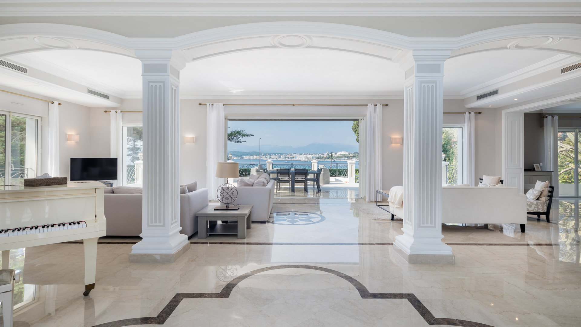 Ground floor with entrance hall; spacious living room opening onto terrace with sea view; dining room; powder room; fully equipped kitchen opening onto terrace.