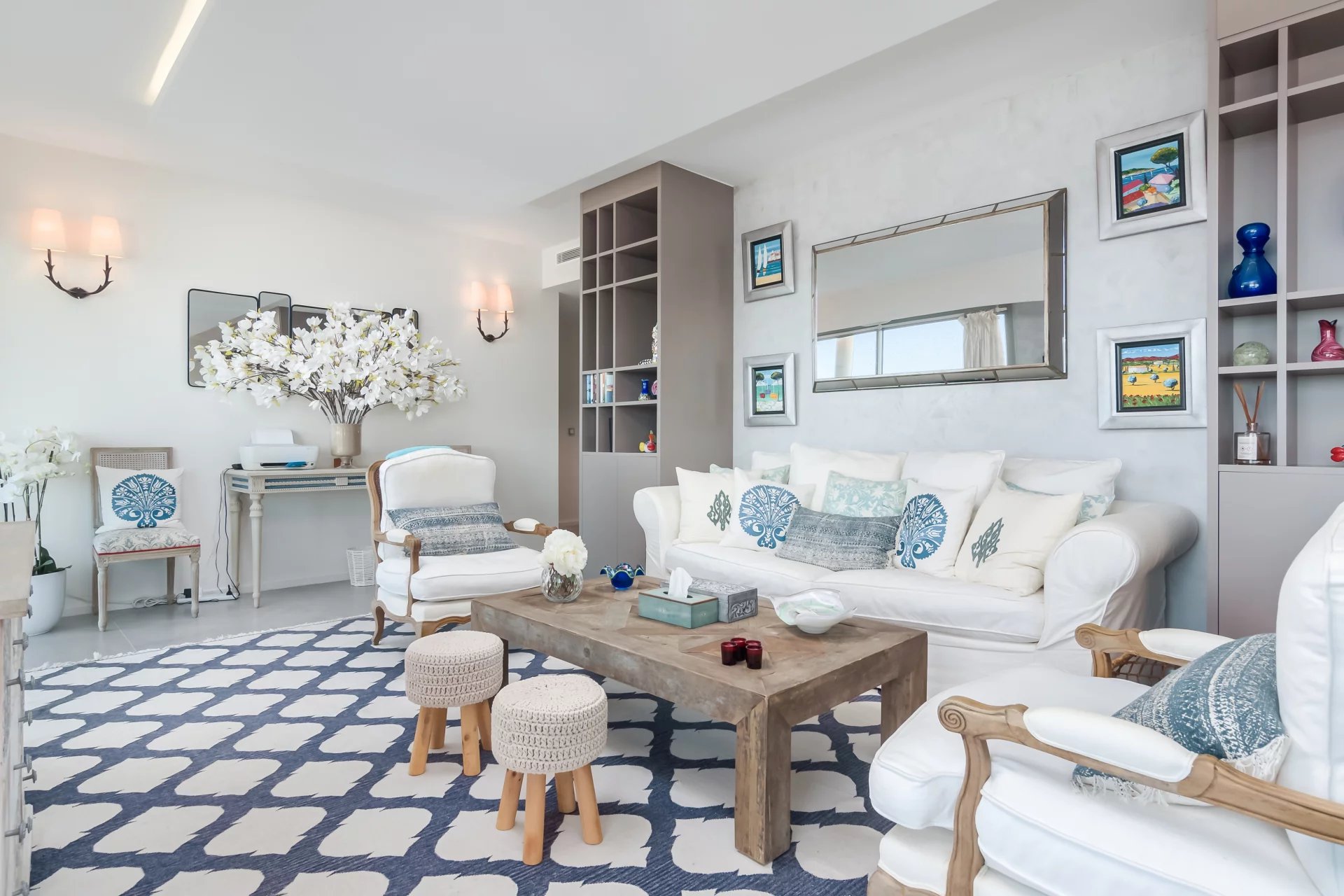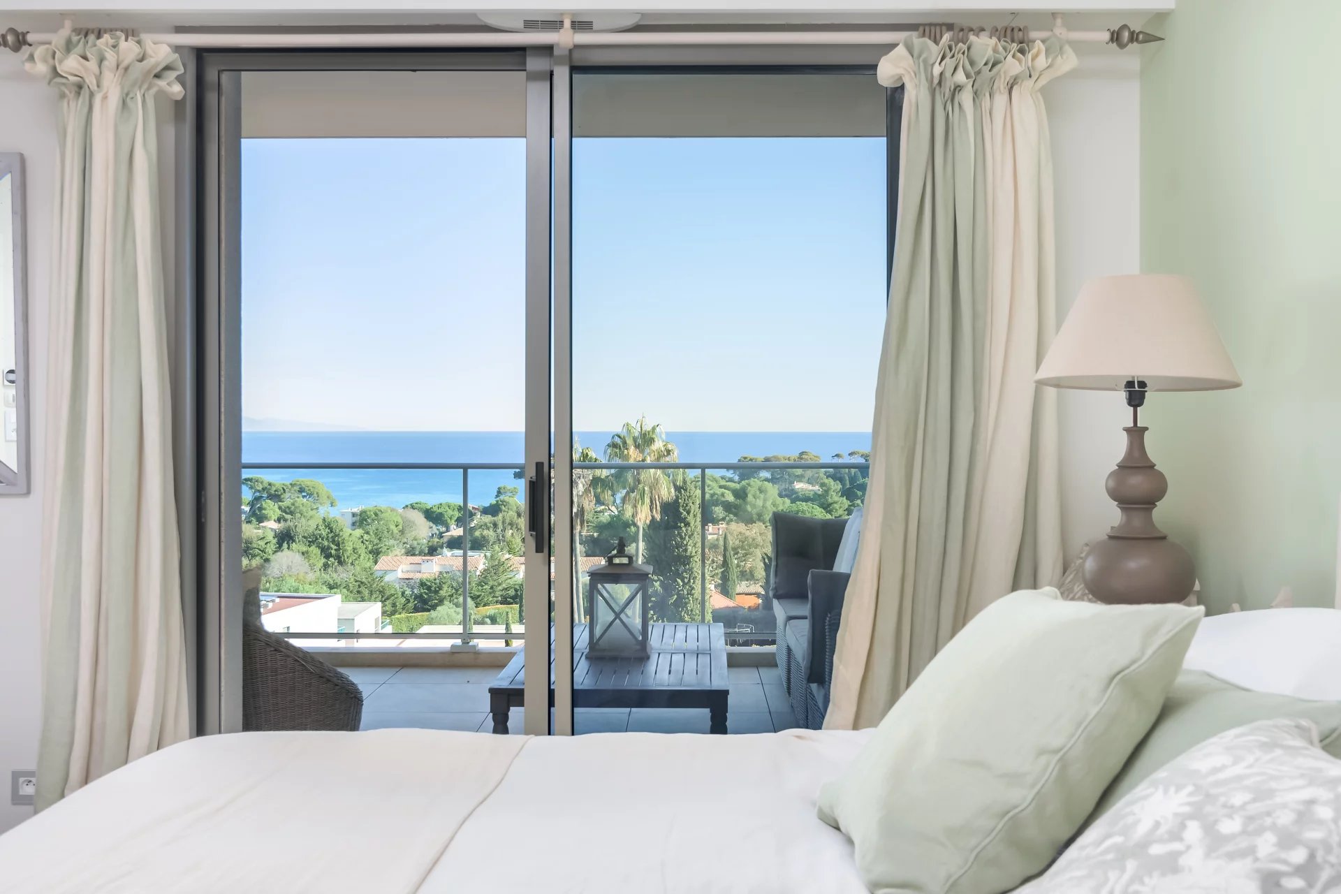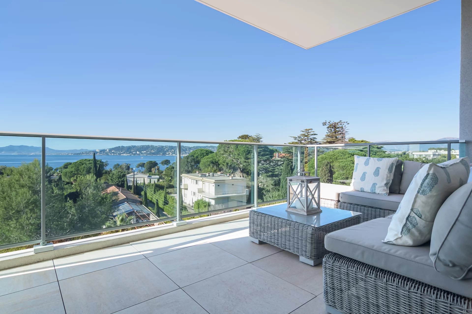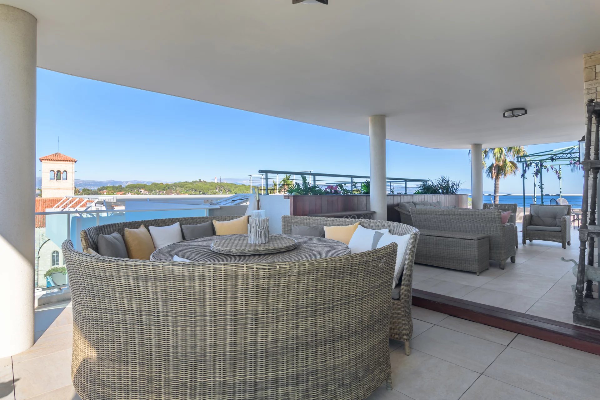 Ideally located on the heights of Cap d’Antibes, this penthouse enjoys a double exposure to the sea, from east to west, following the sun from sunrise to sunset.