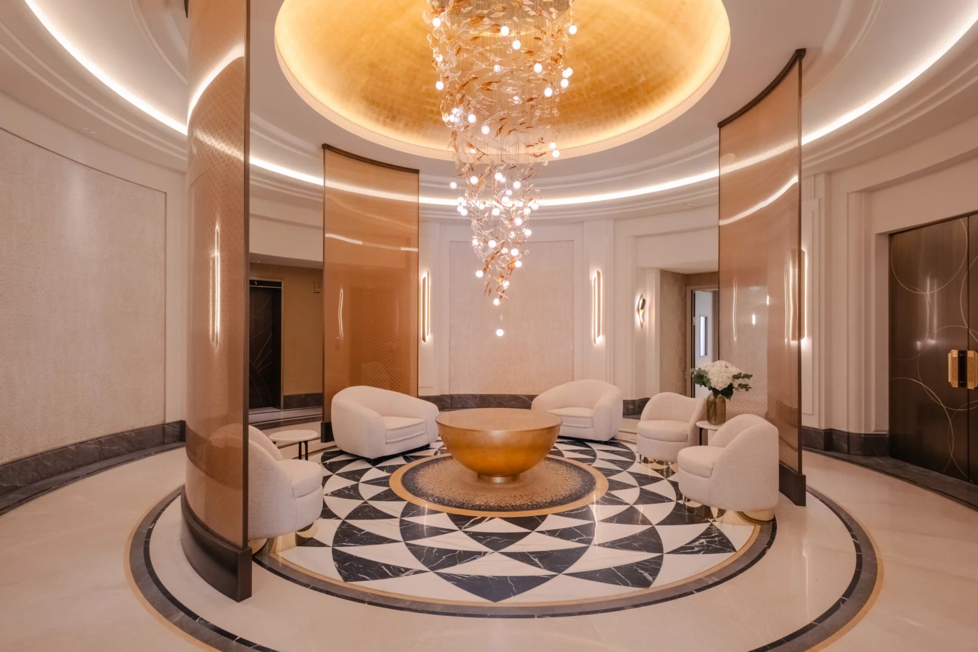 Set within the iconic Le Provencal, a meticulously restored Art Deco palace, residents benefit from access to outstanding communal facilities: a grand reception lobby, six hectares of landscaped gardens, a 30-metre outdoor swimming pool, a comprehensive spa with indoor pool, hammam and sauna, a state-of-the-art gym, yoga studio and private cinema.