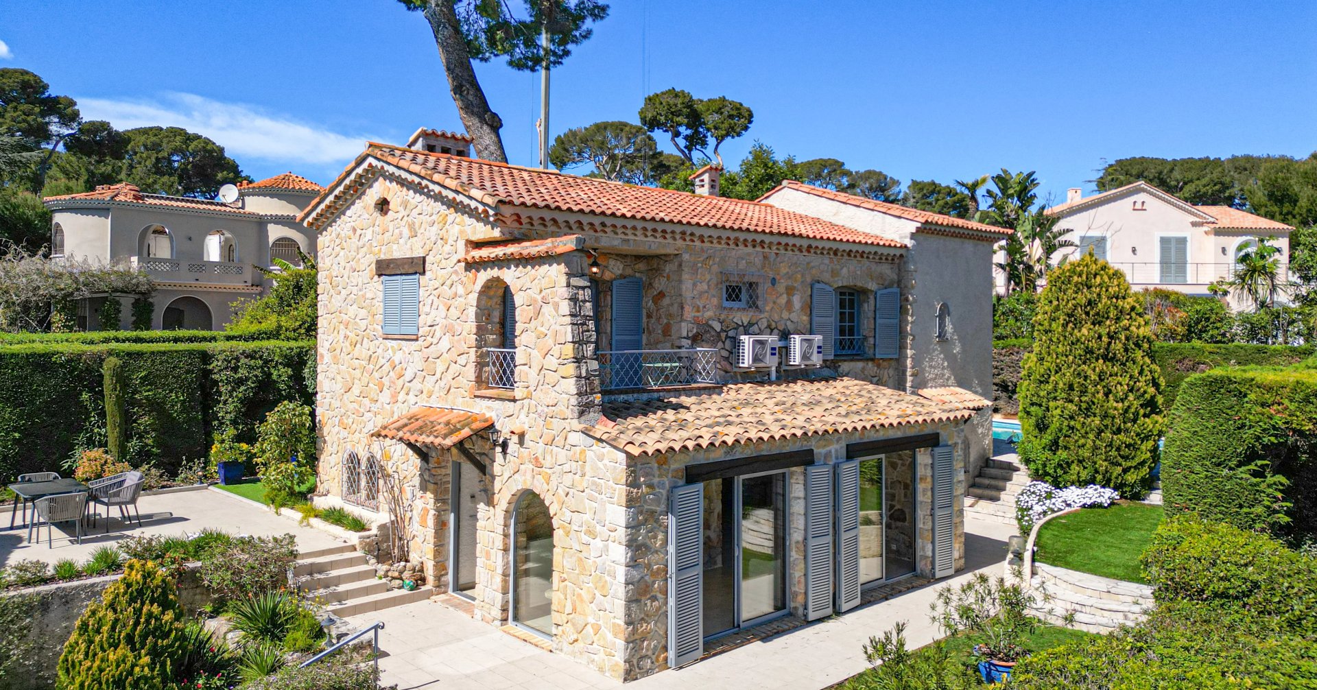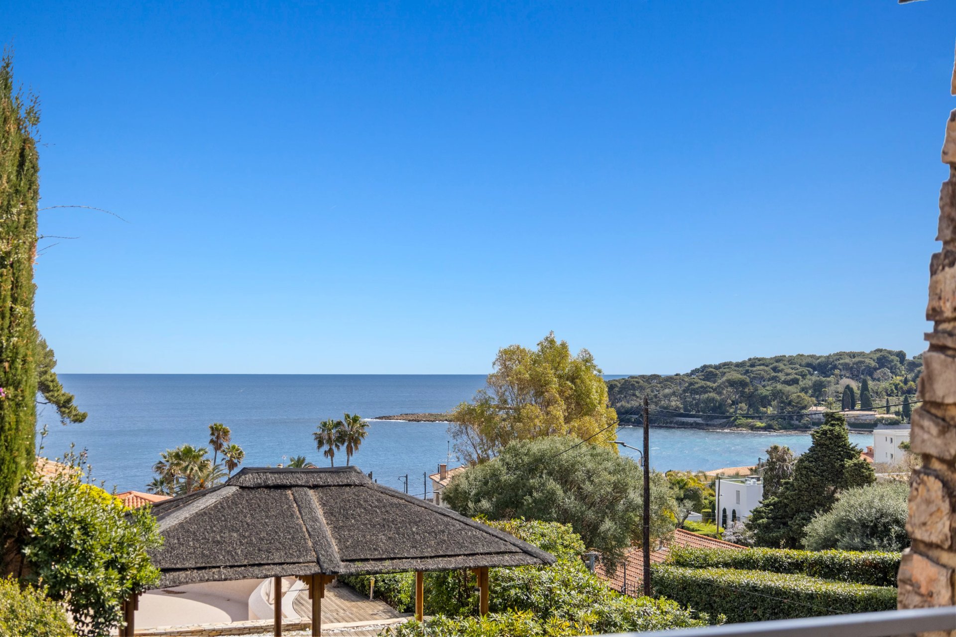 Just a few steps from the Garoupe beaches, this magnificent stone villa with a pool offers a beautiful sea view and enjoys a prime location on the Cap d’Antibes.