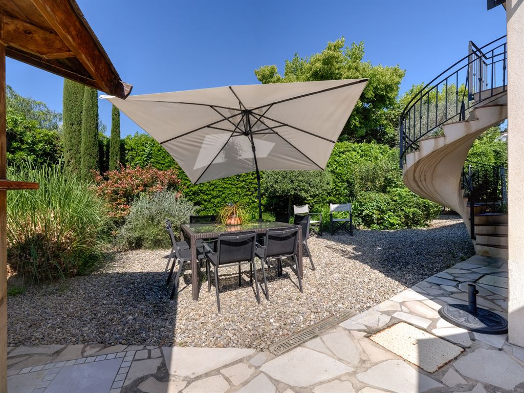 The landscaped 960 m2 garden evokes the spirit of the South of France, with shaded corners, sun-drenched terraces, and a beautiful pool area that extends the living space naturally. A former garage has been converted into a fitness room, and the attic offers additional development potential.