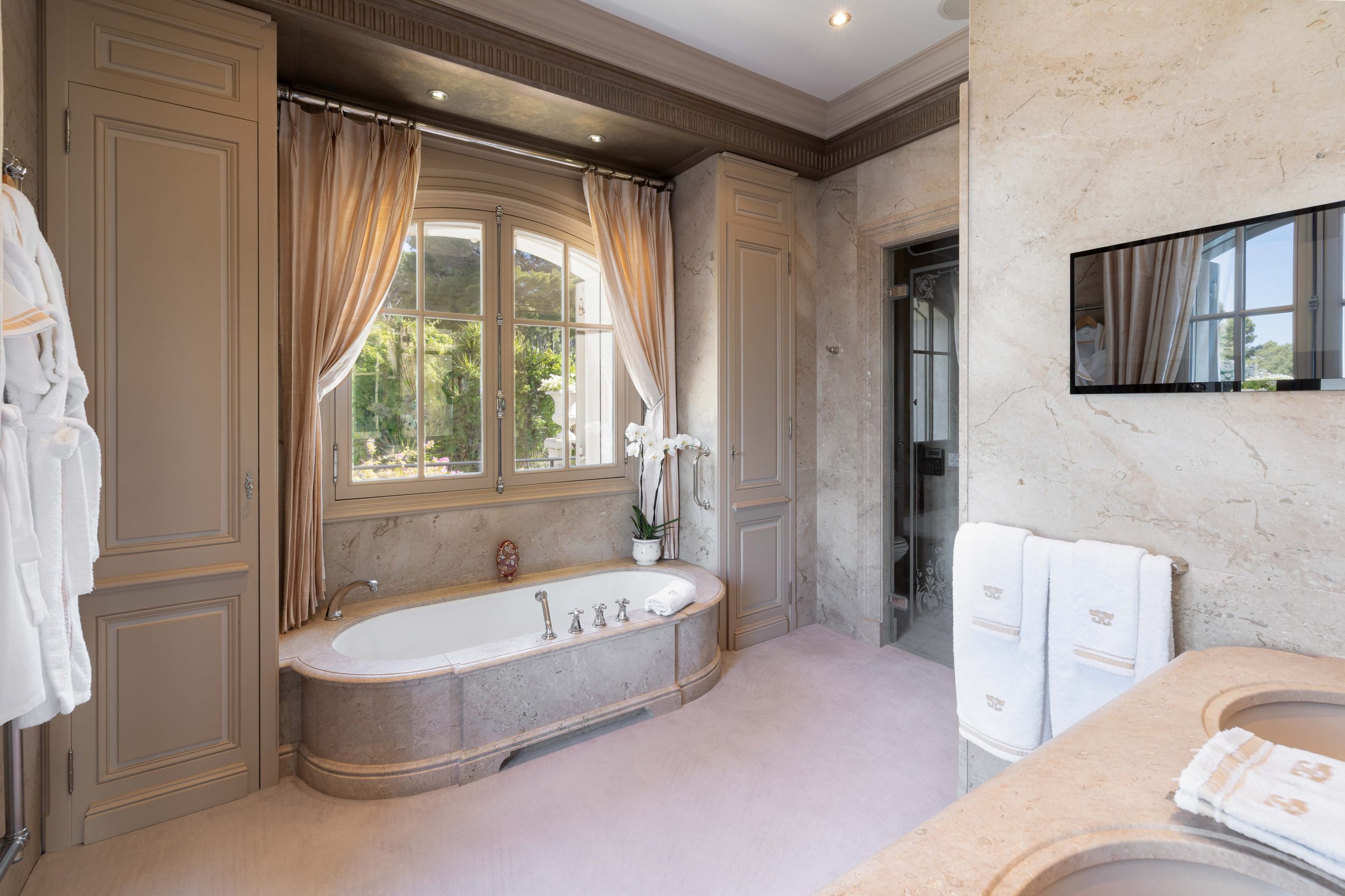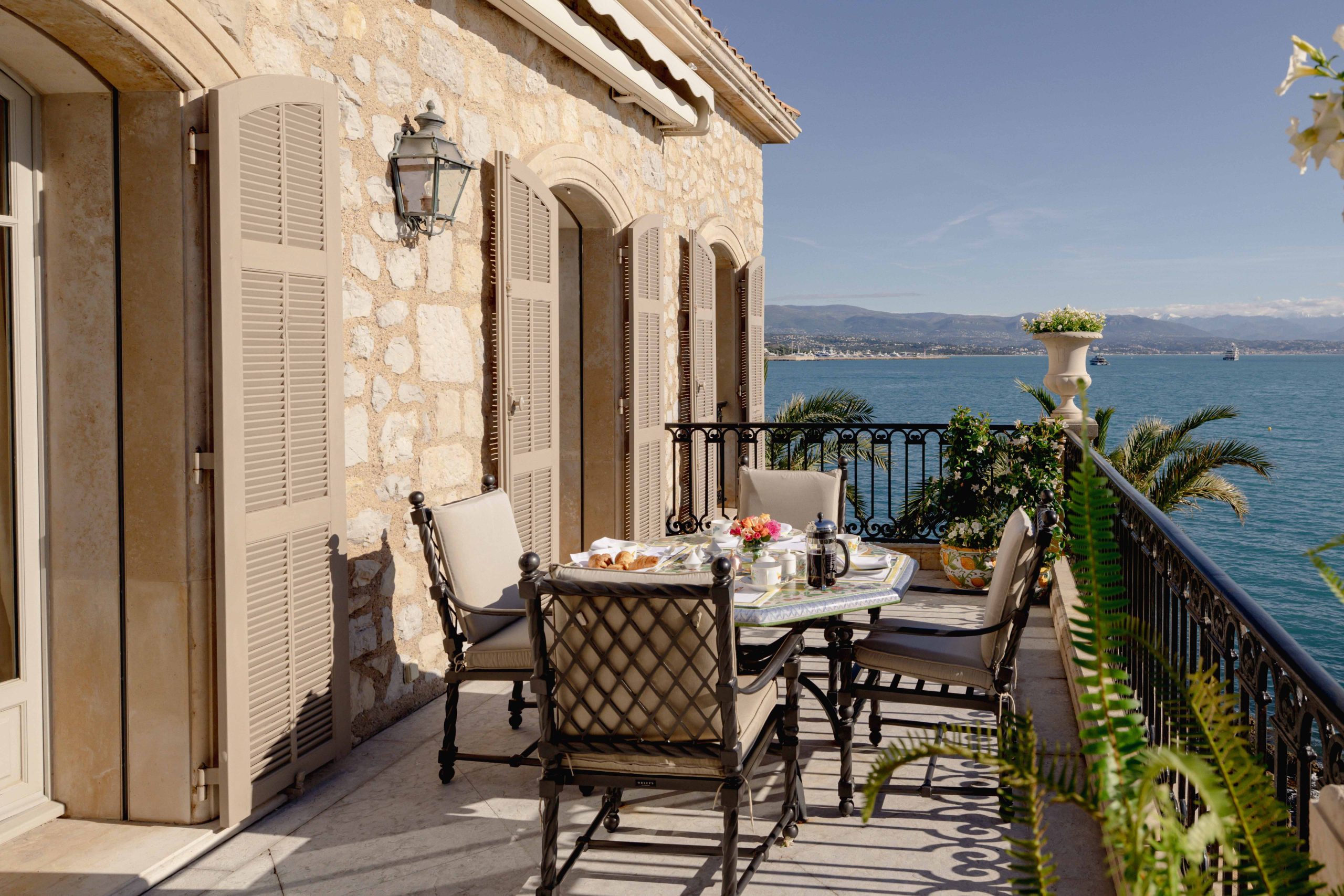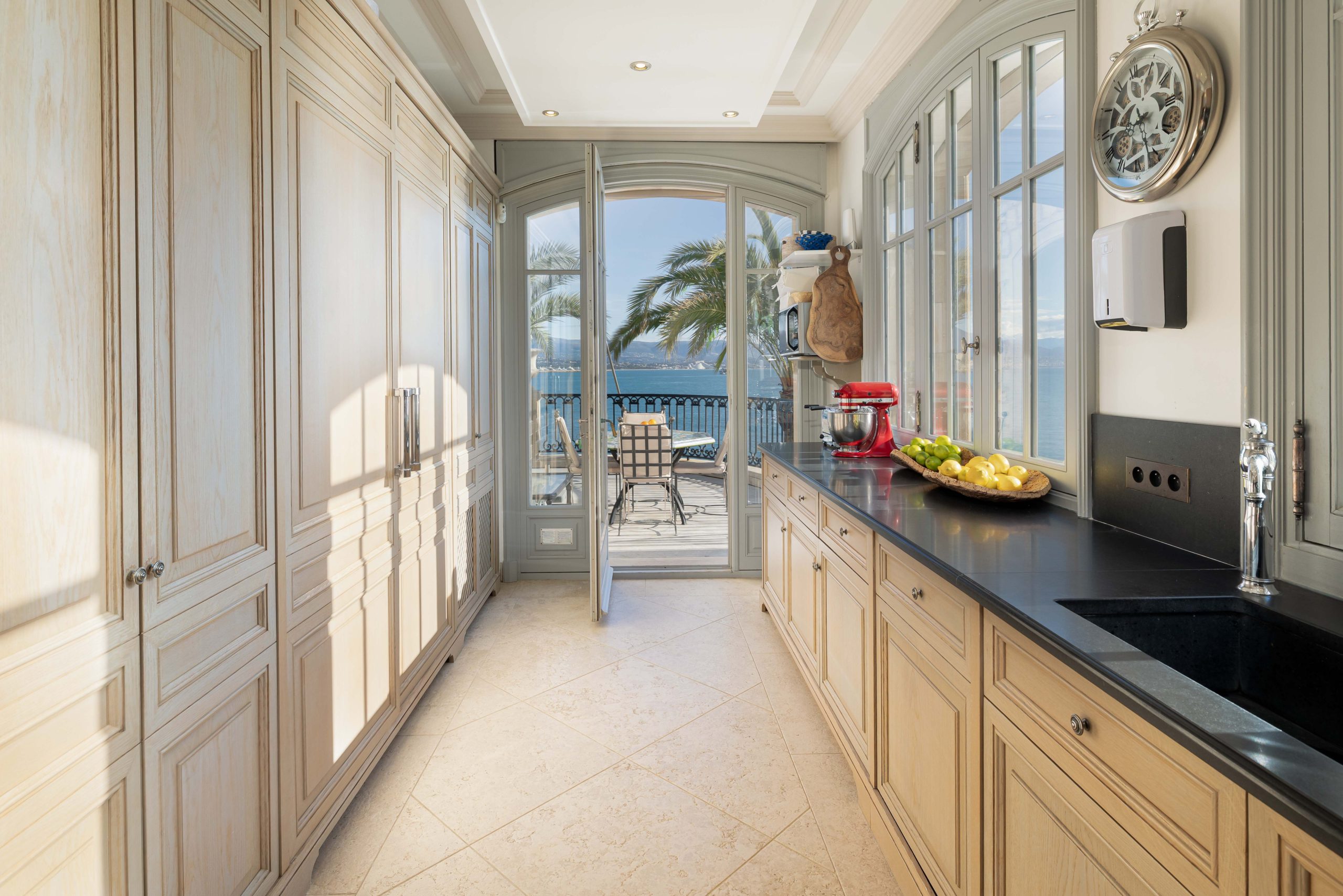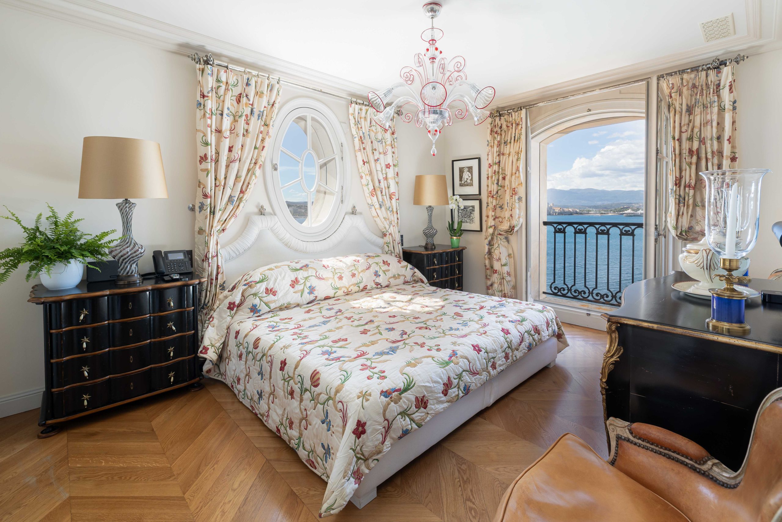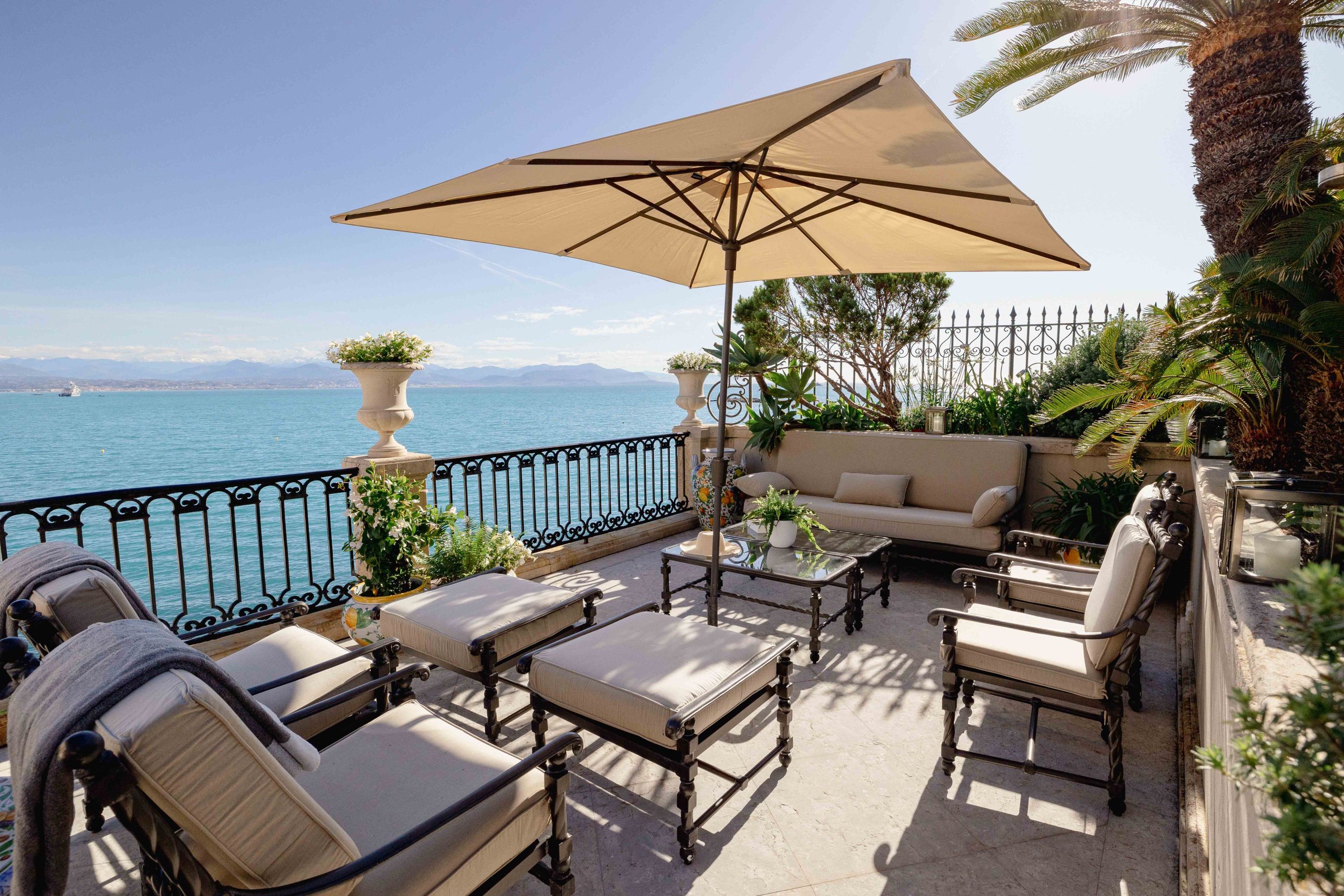 This is a true “pieds dans l’eau” property, situated right on the waters edge, with direct access to a sandy beach. It lies within easy walking distance to a port, public beaches, shops and restaurants, as well as the old town of Antibes. From most rooms there are uninterrupted sea views across the bay to Antibes, Nice, Monaco and as far as Italy with the breathtaking snow capped Alps behind.