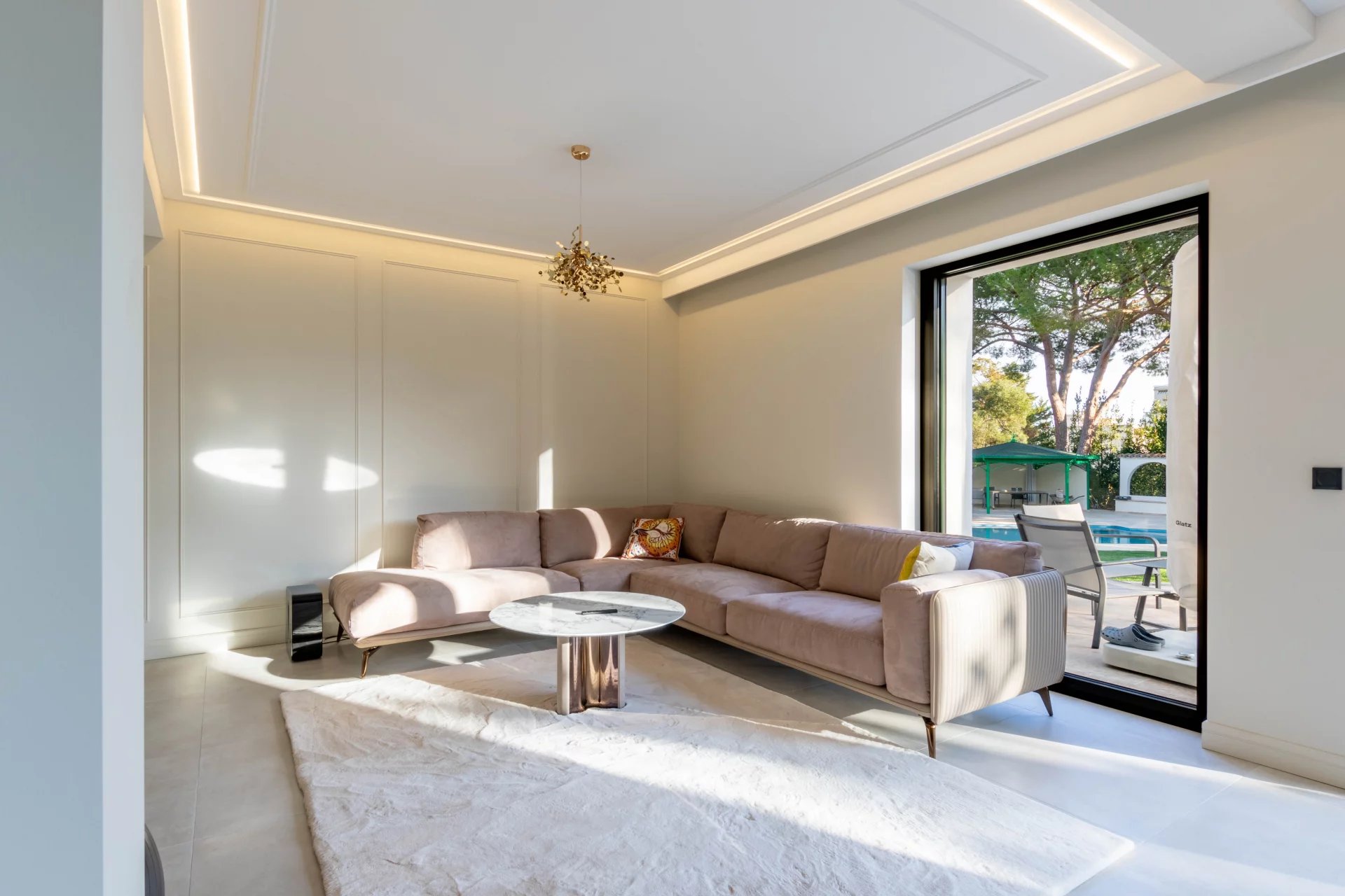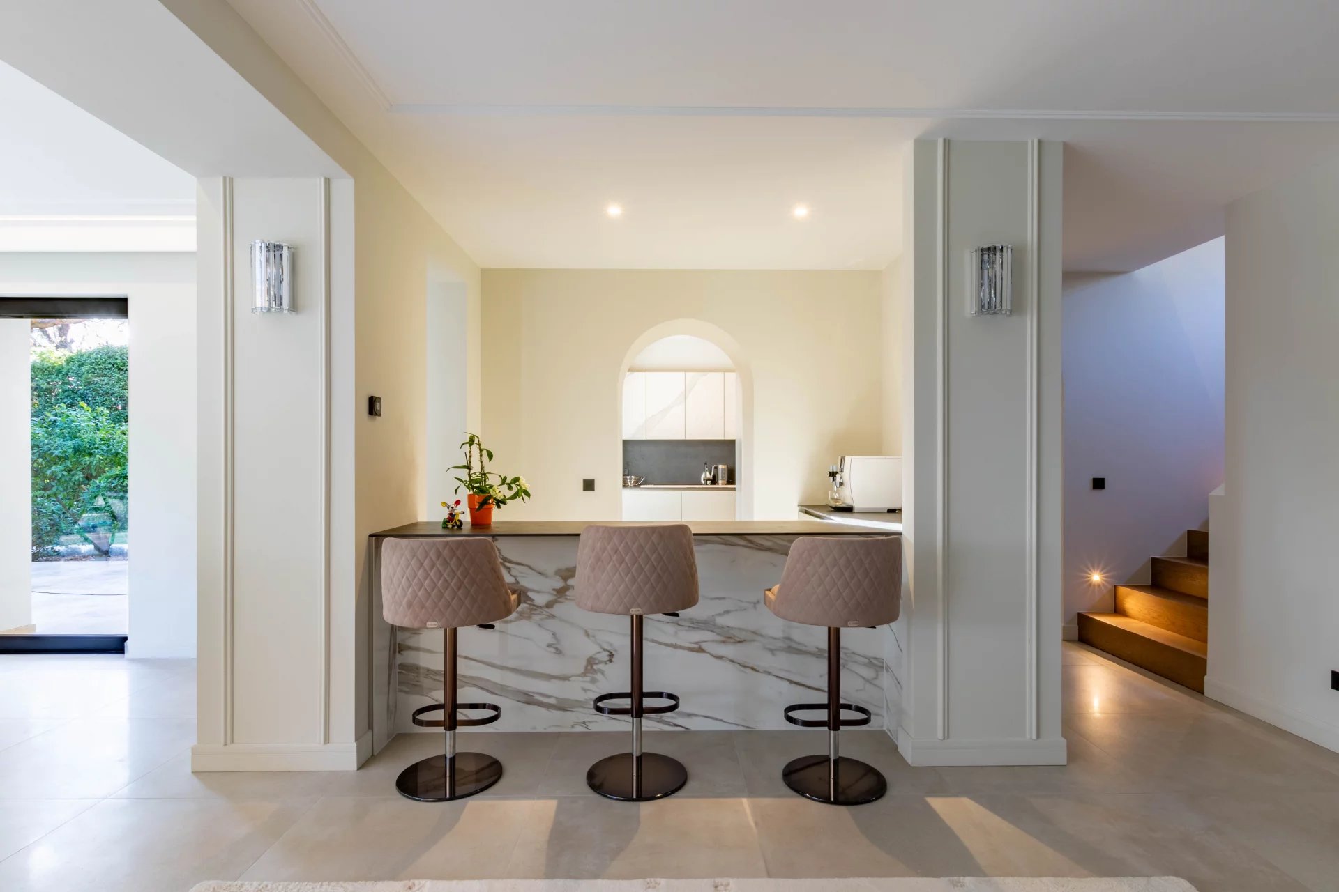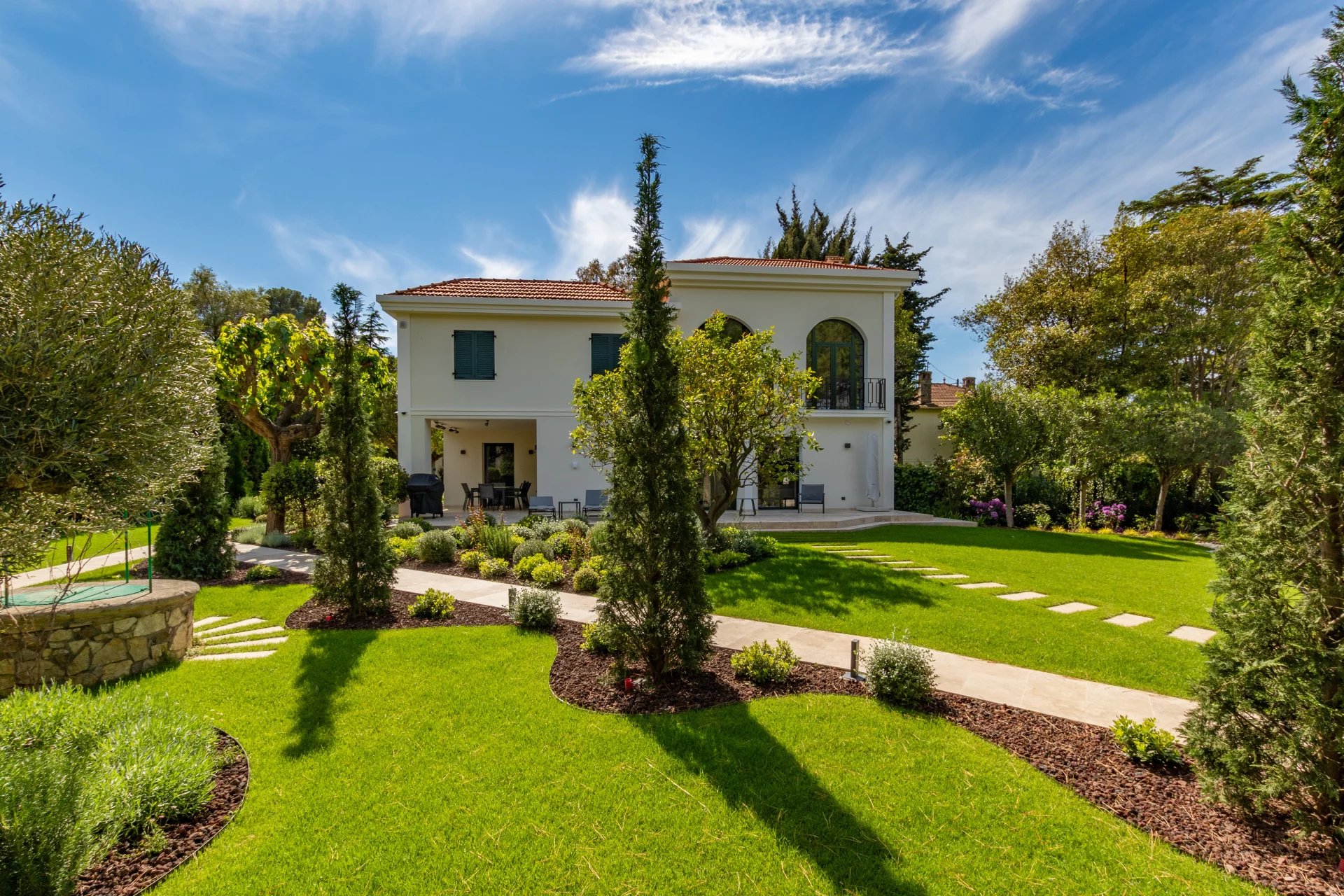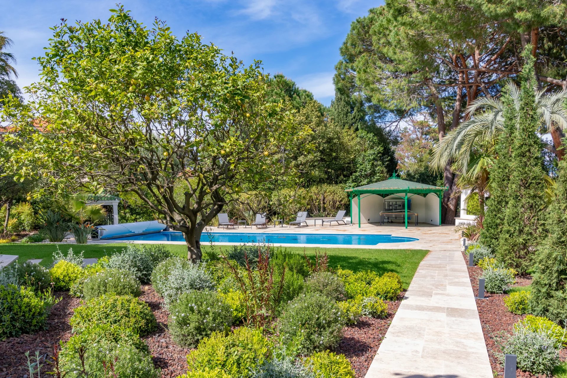 Located in Cap d’Antibes, close to the beaches, this villa of about 300 sqm was renovated in 2023 with quality materials and offers high-end services.