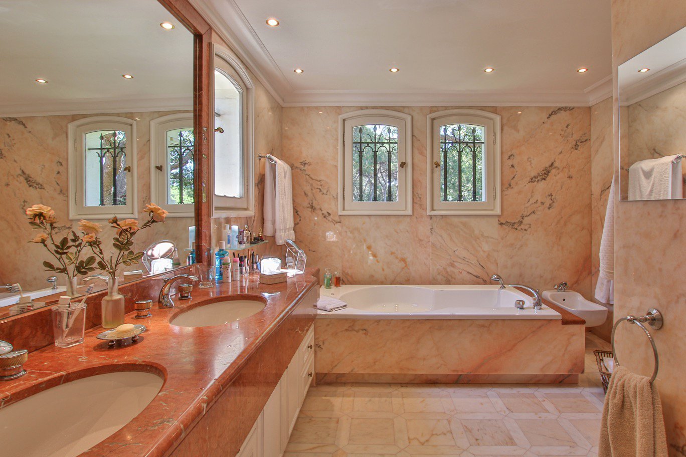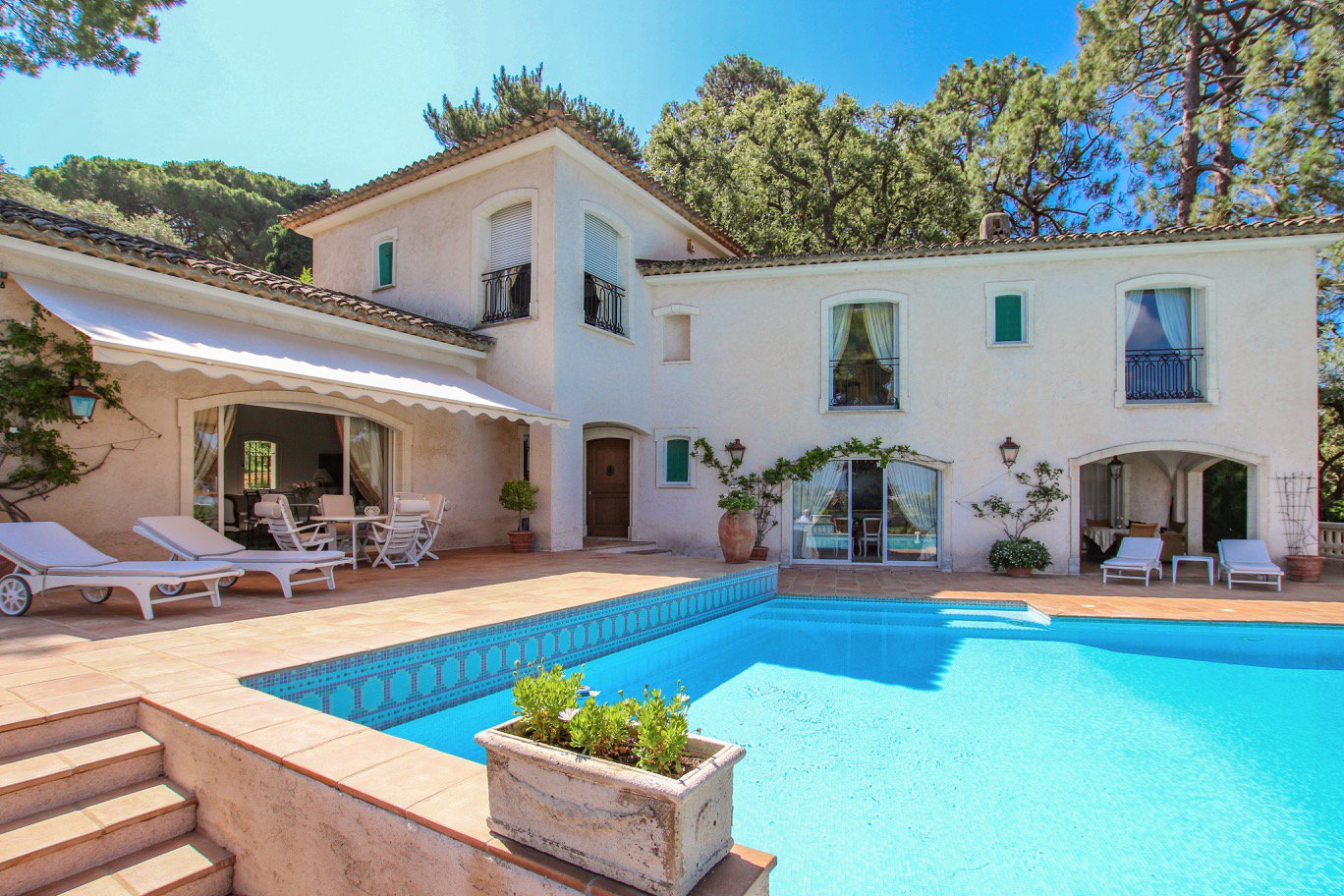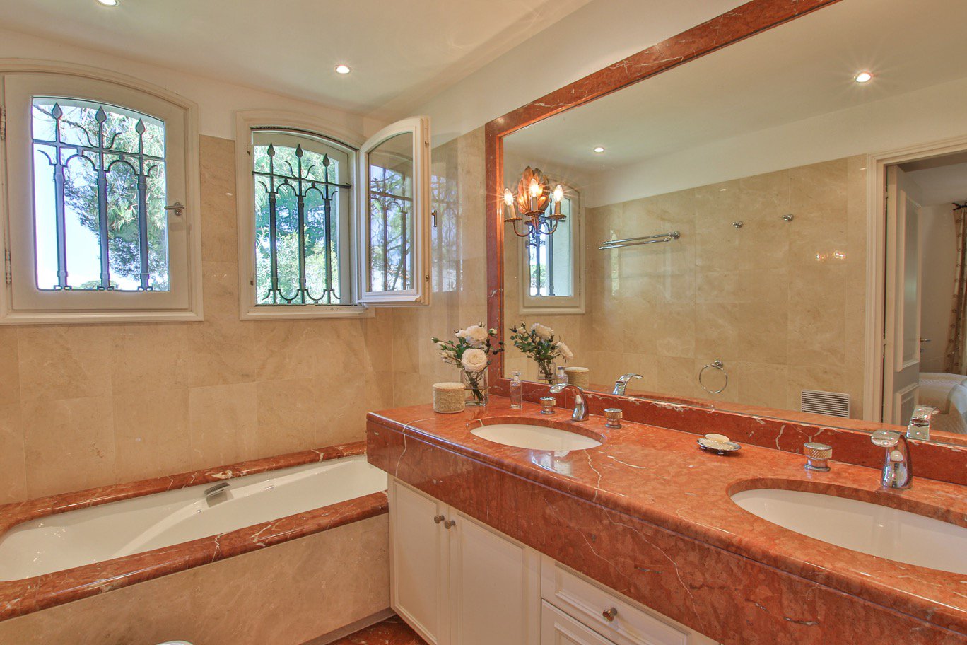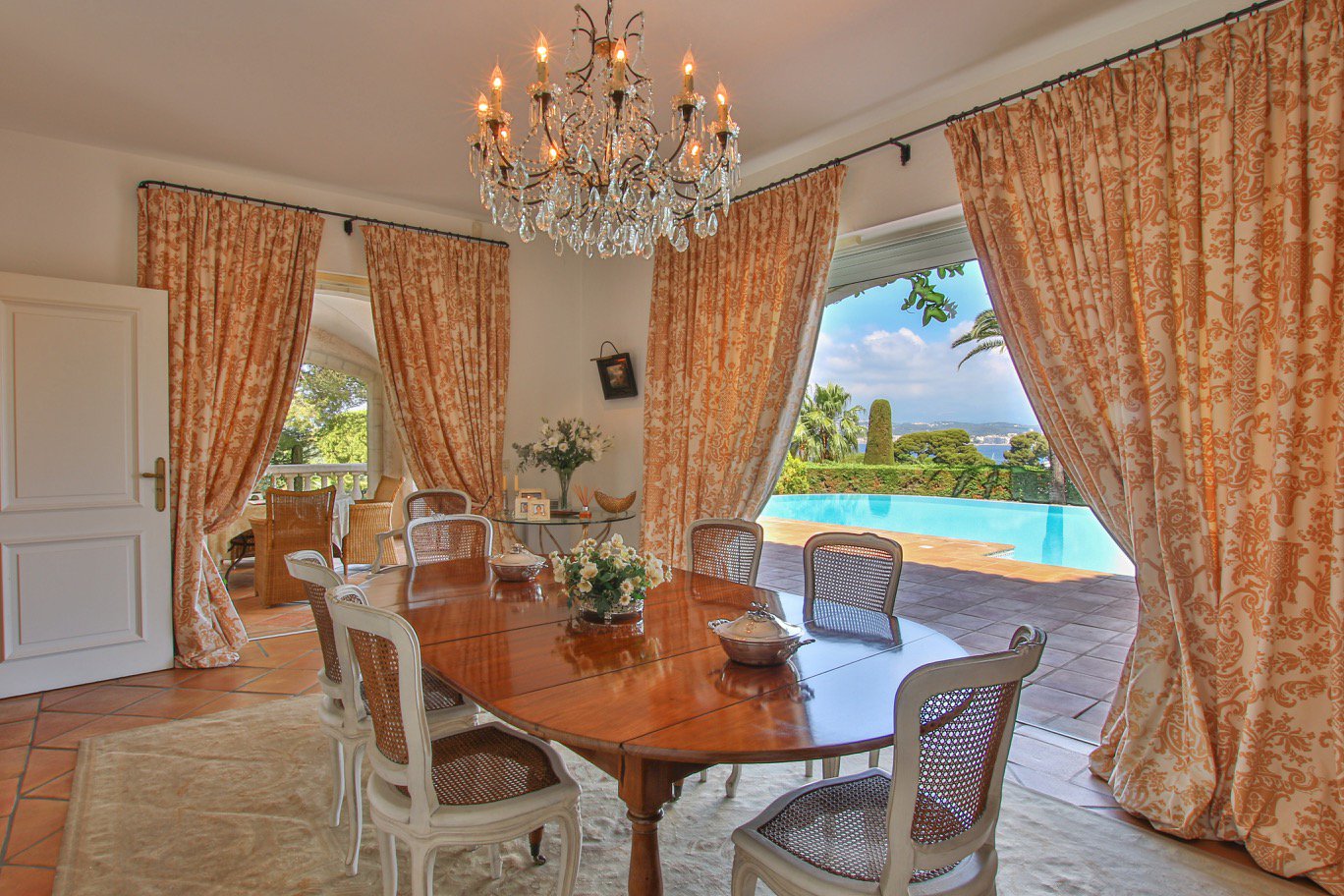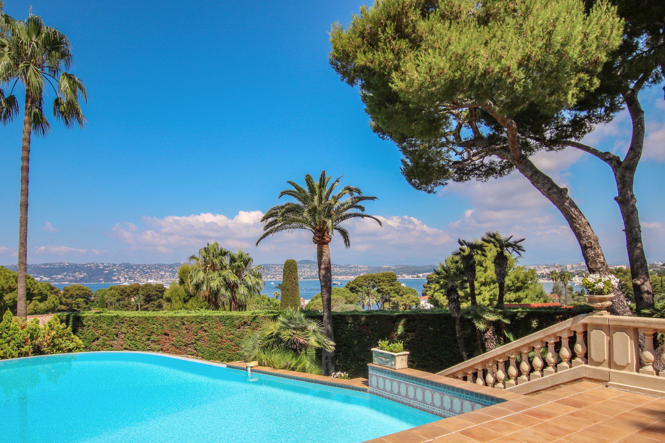 Beautiful property of approximately 400 sq.m on a landscaped garden of 2,483 sq.m with infinity pool and sea view, located just a few meters from the Hotel du Cap d’Antibes.