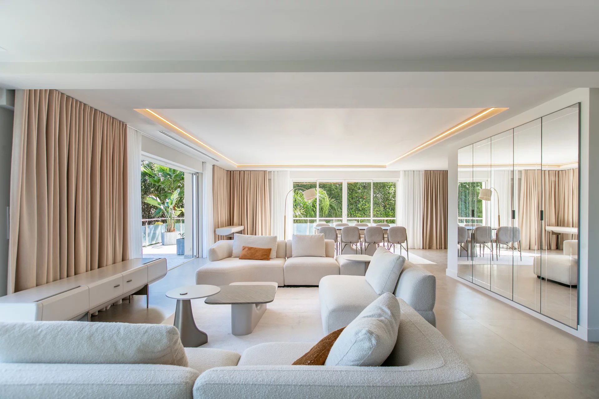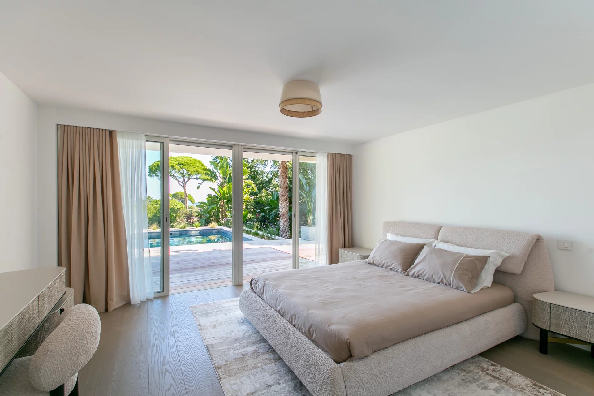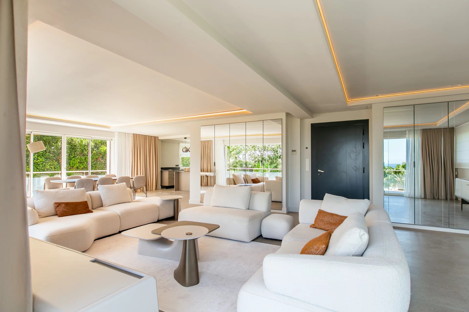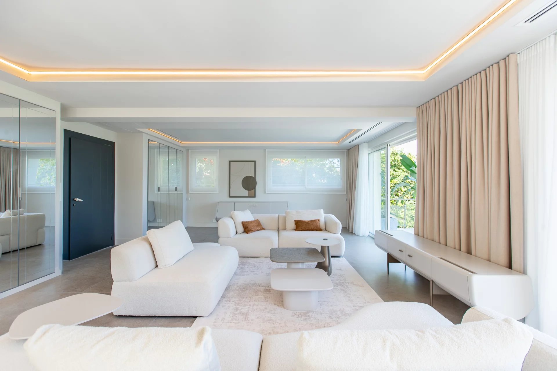 Nestled in a quiet, secure domain on the prestigious East side of Cap d’Antibes, this recently renovated villa offers fast access to sandy beaches via a private gate and complete privacy.