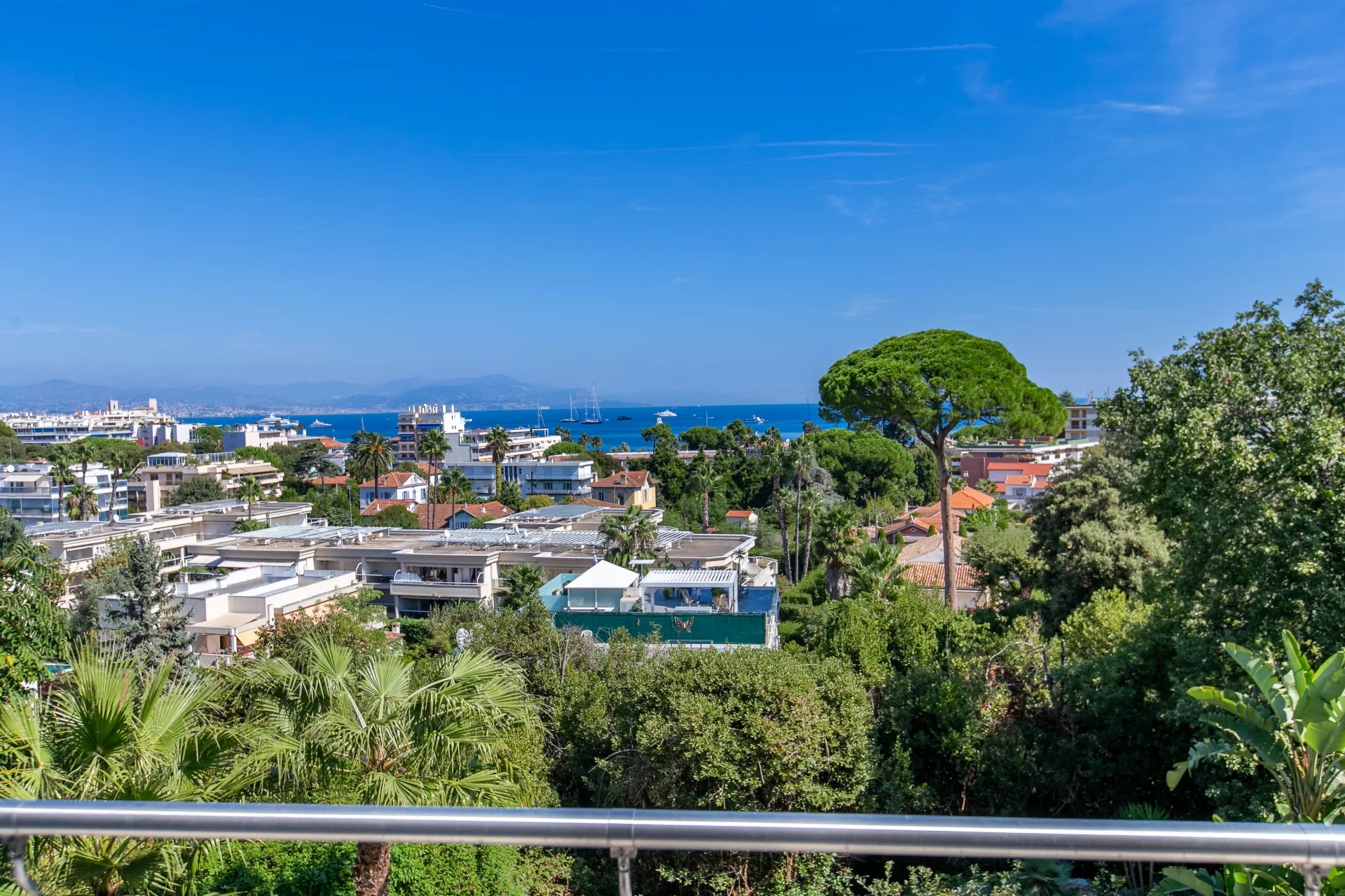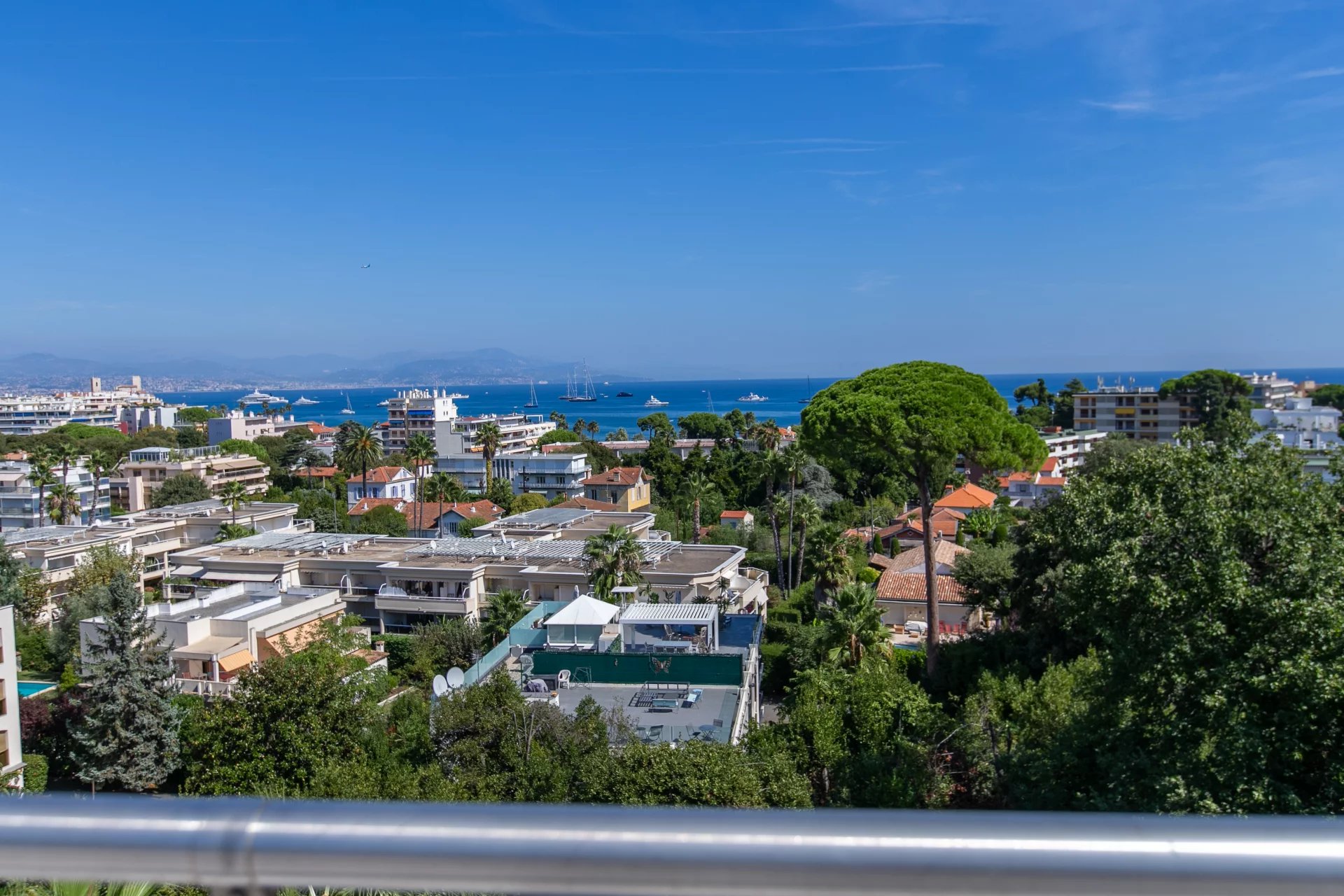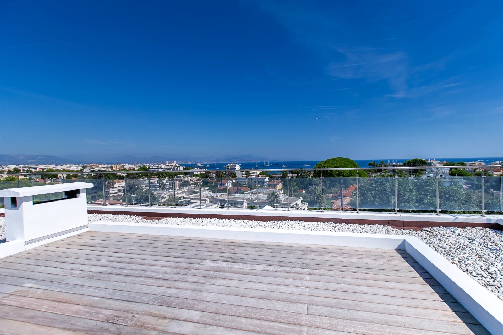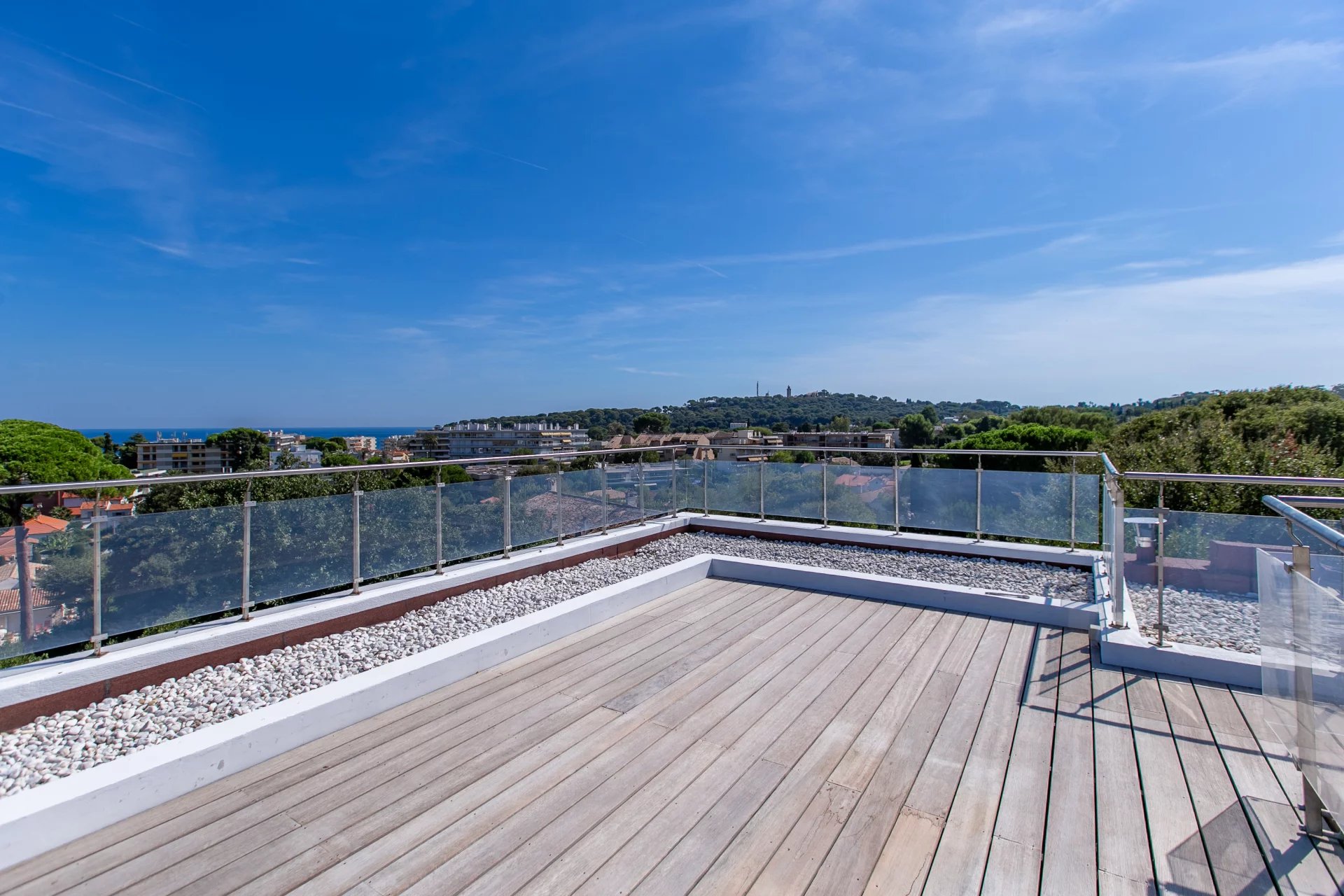 Furnished rooftop terrace offering panoramic views over the Mediterranean and historic Antibes.