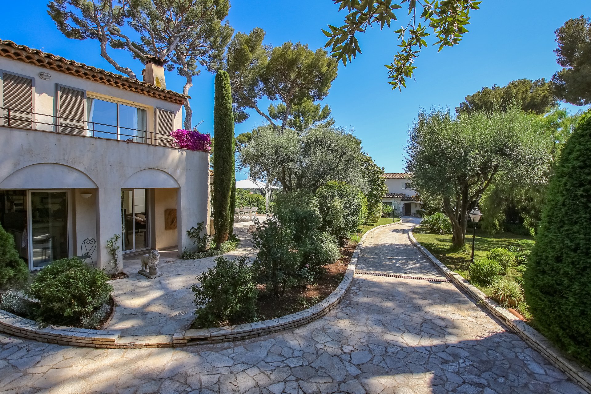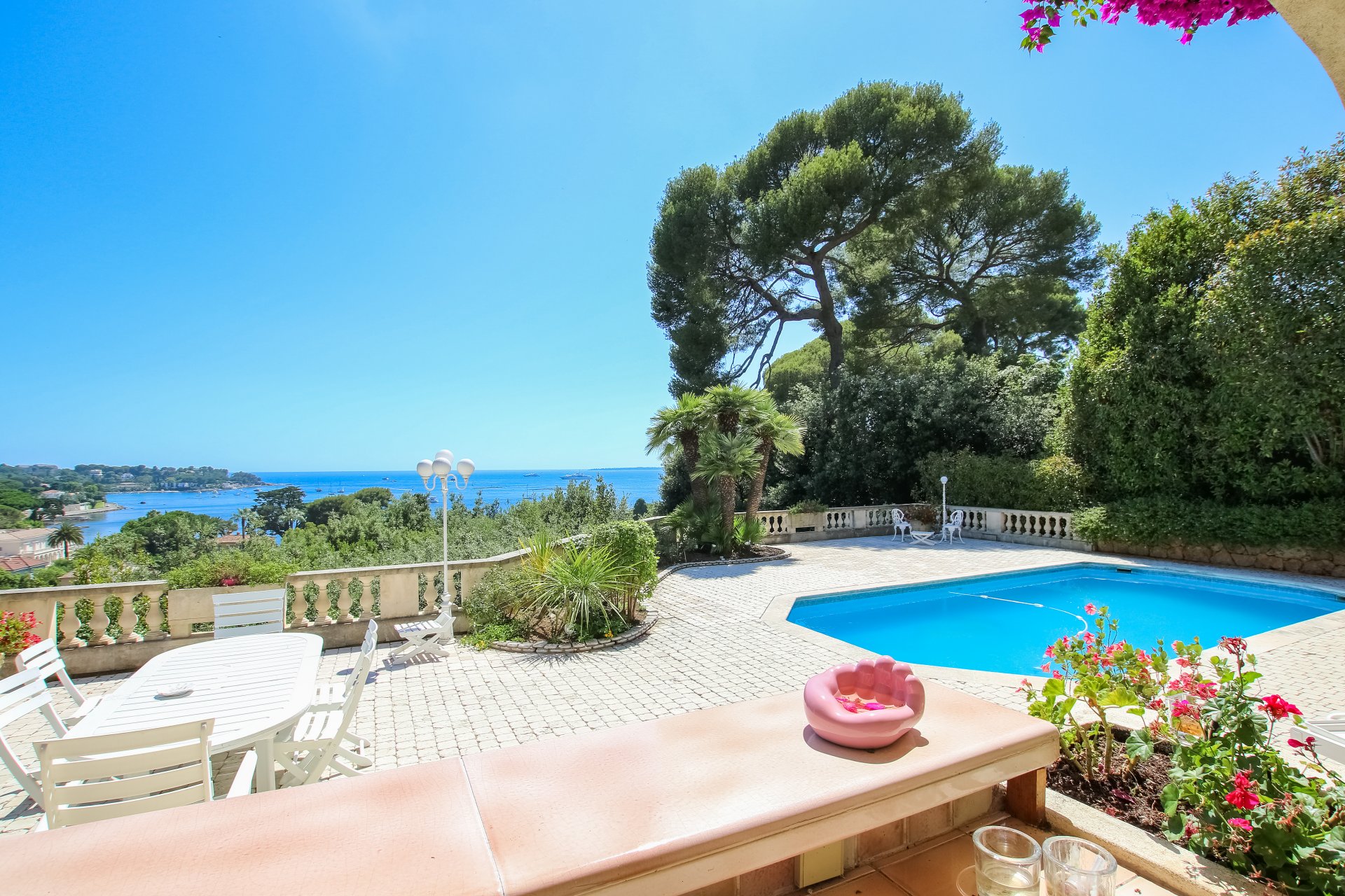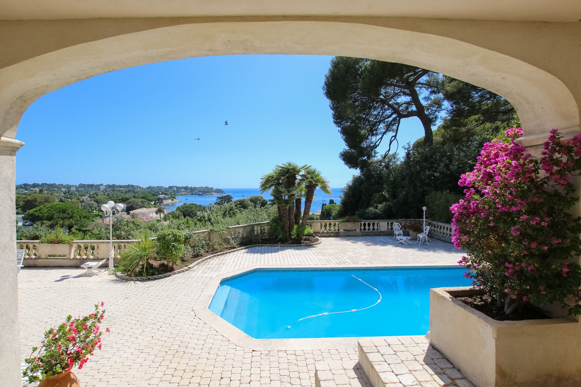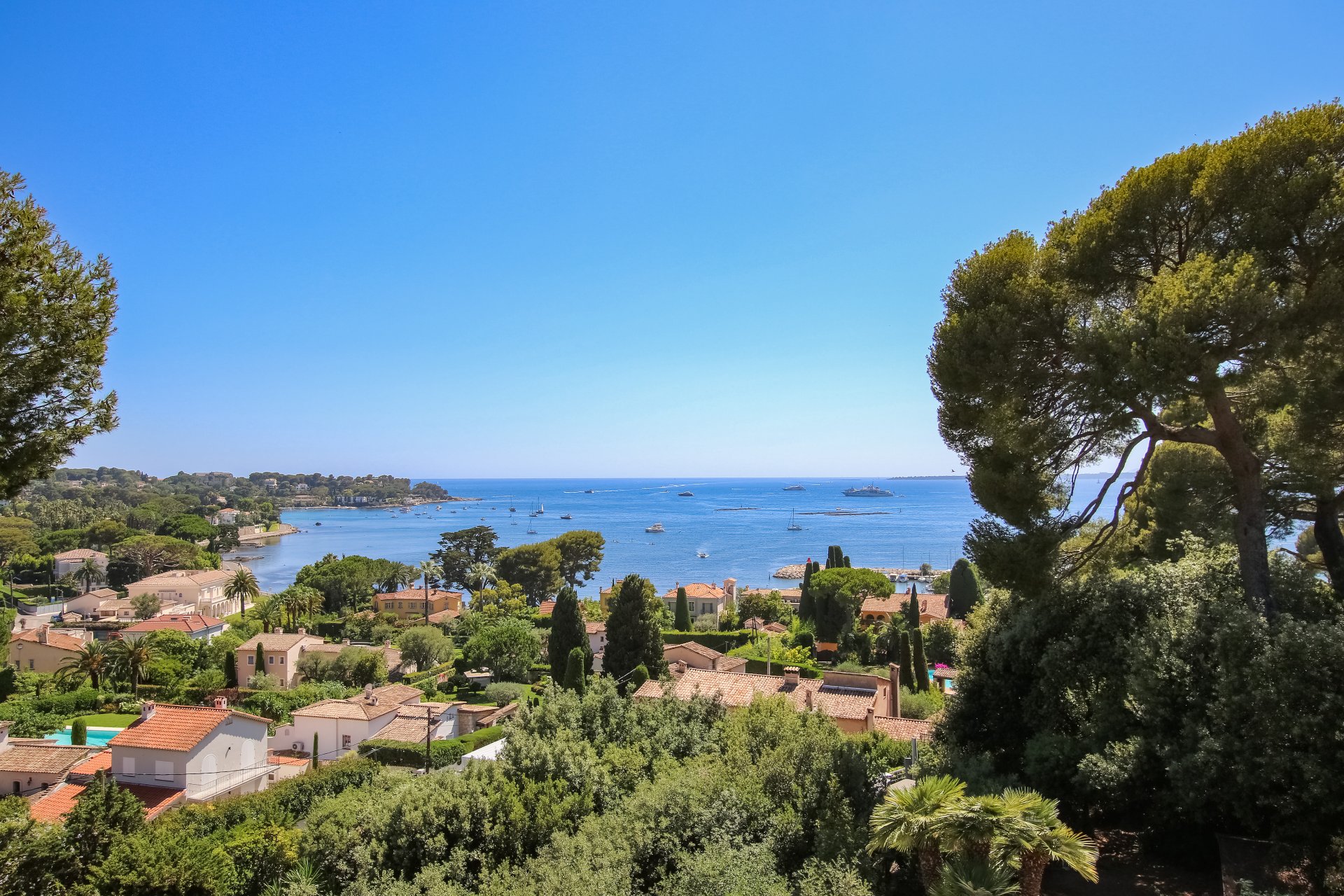 Ideally located in a private domain of Cap d’Antibes, near the downtown of Juan Les Pins, in a calm and peaceful environment, very beautiful property with panoramic sea view over the bay of Golfe Juan and the Lerins Islands.