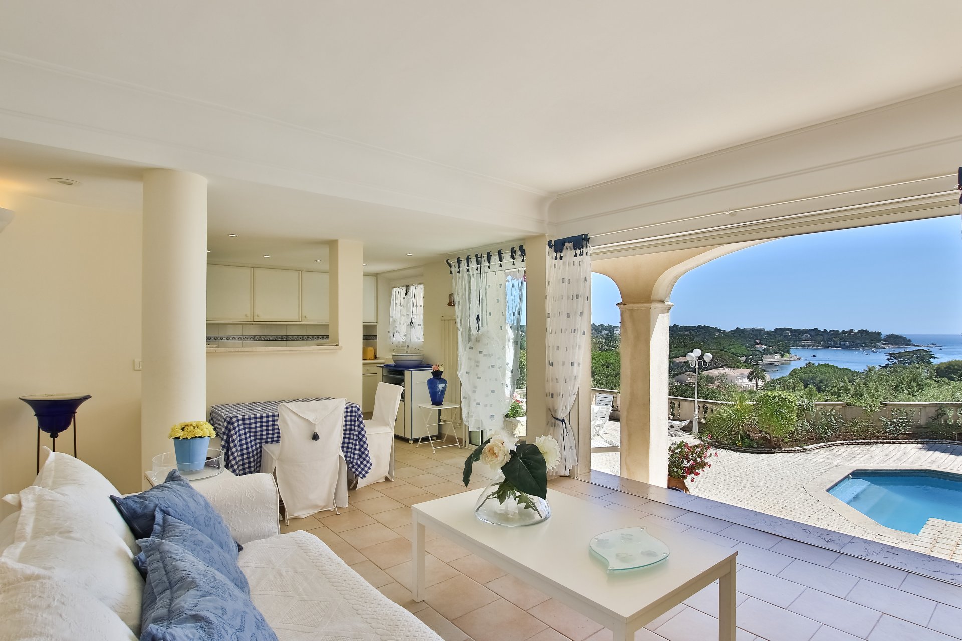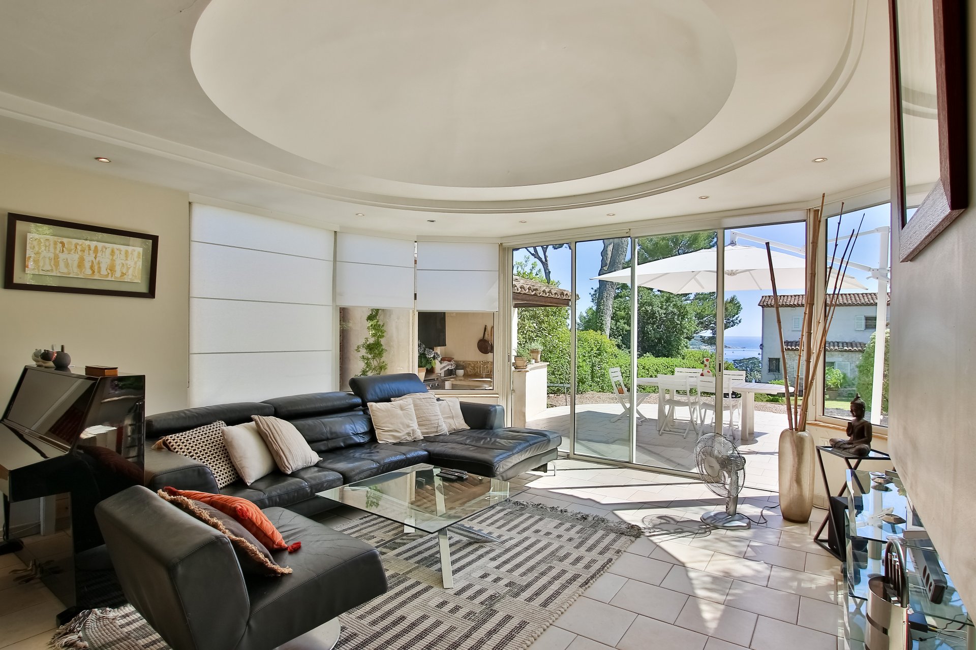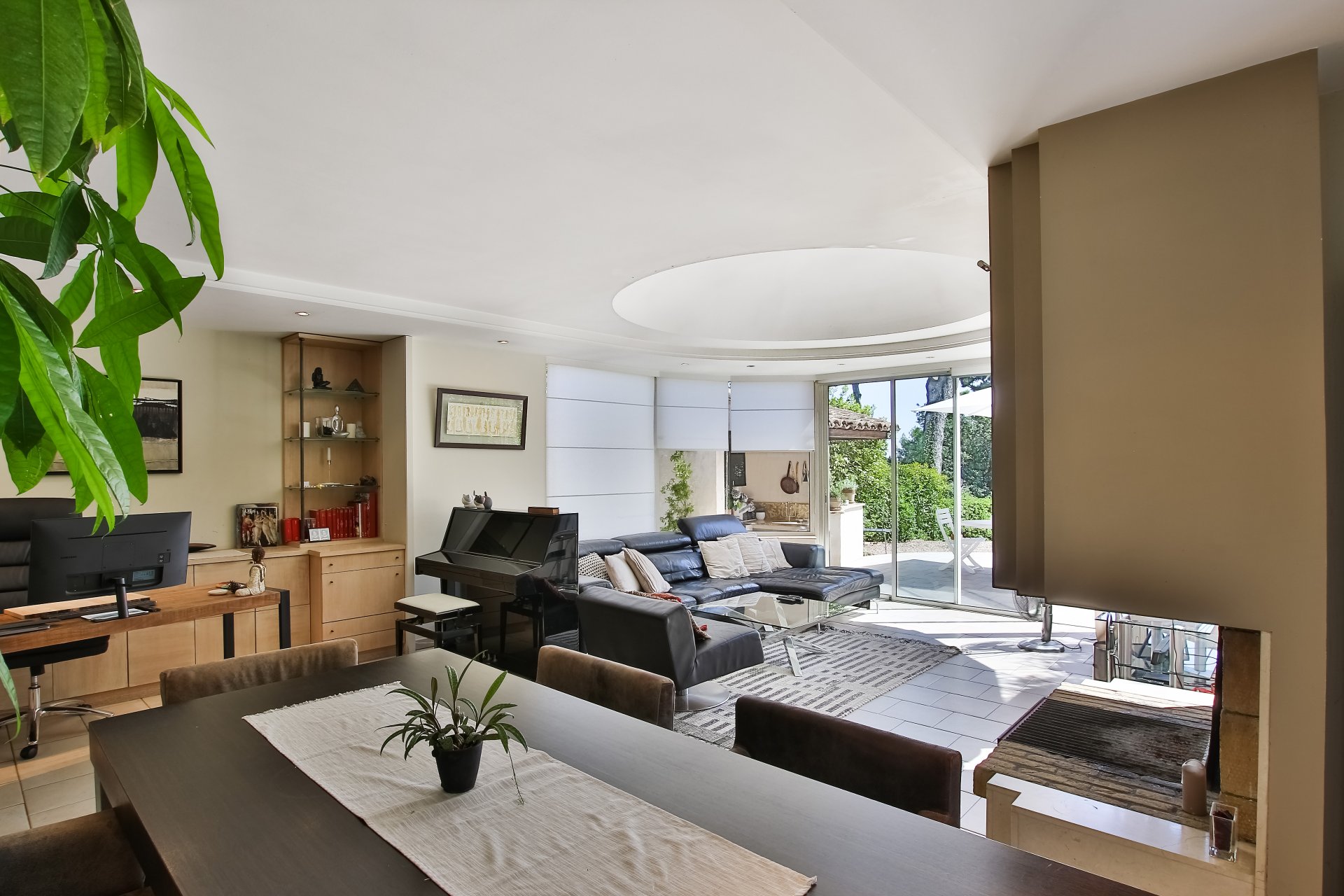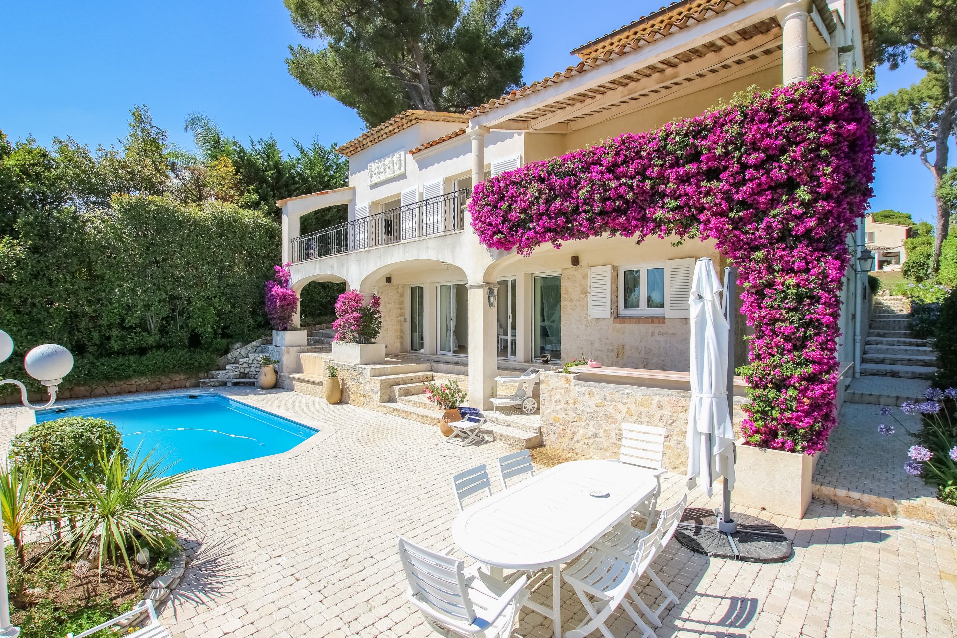 Ideally located in a private domain of Cap d’Antibes, near the downtown of Juan Les Pins, in a calm and peaceful environment, very beautiful property with panoramic sea view over the bay of Golfe Juan and the Lerins Islands.