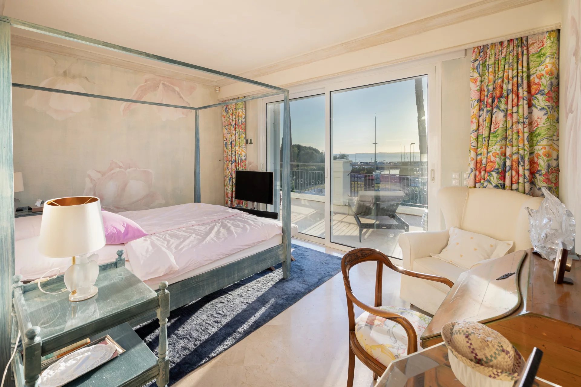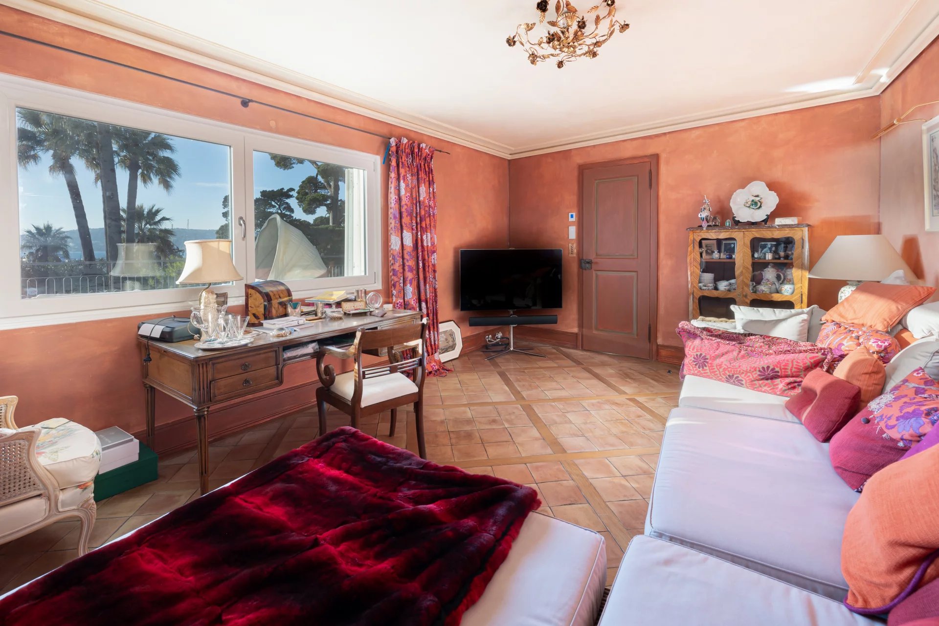 Perched in an enviable position, walking distance to shops and beach club, the villa enjoys breathtaking west-facing views, stretching from Cap d’Antibes to Cannes’ Pointe de la Croisette and the Esterel mountains beyond.