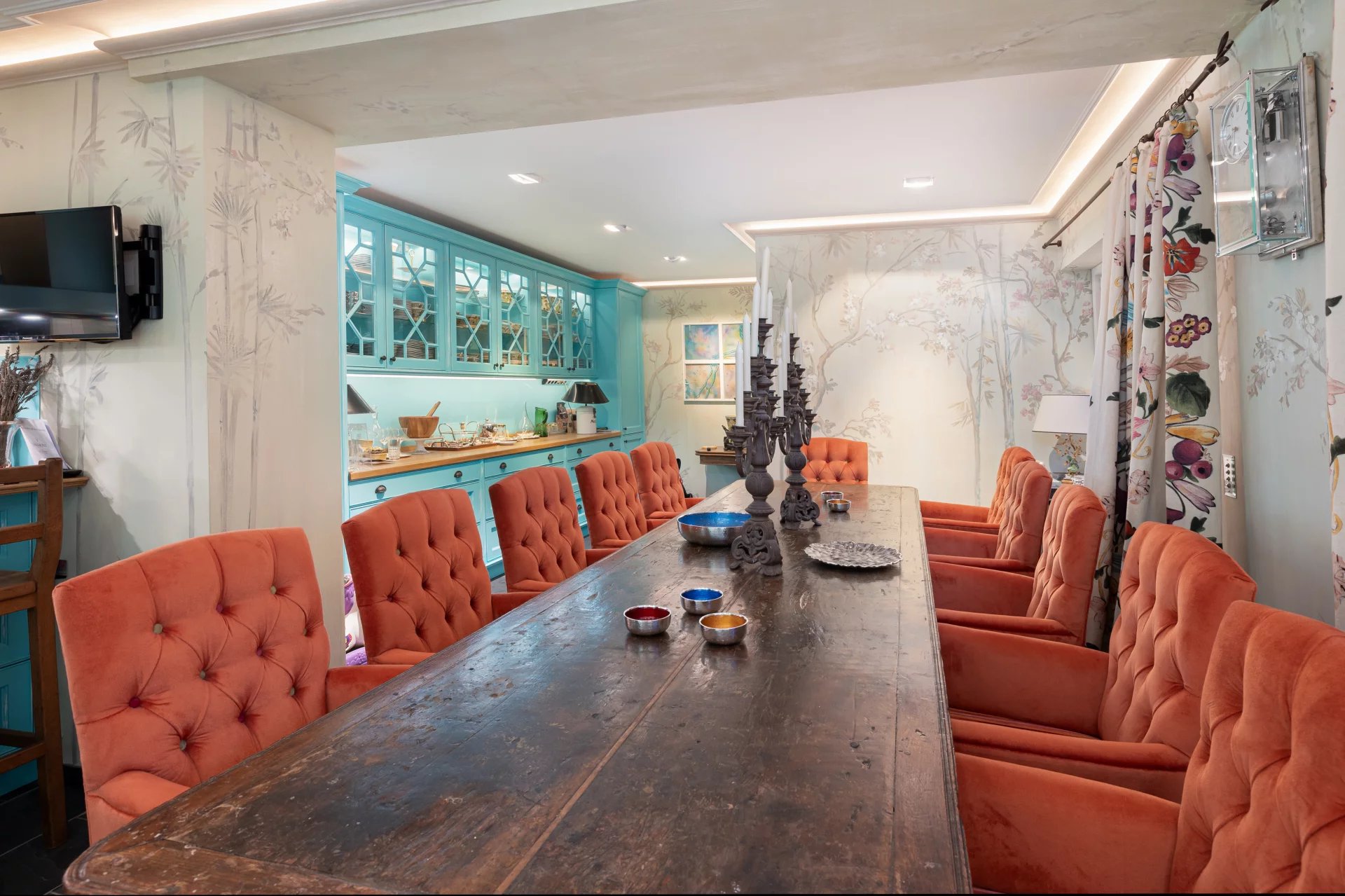 The home’s centerpiece is a stunning heated and cooled indoor pool and dedicated SPA area, while hand-painted walls throughout lend a unique charm, embodying the character of the family who lovingly curated these spaces.