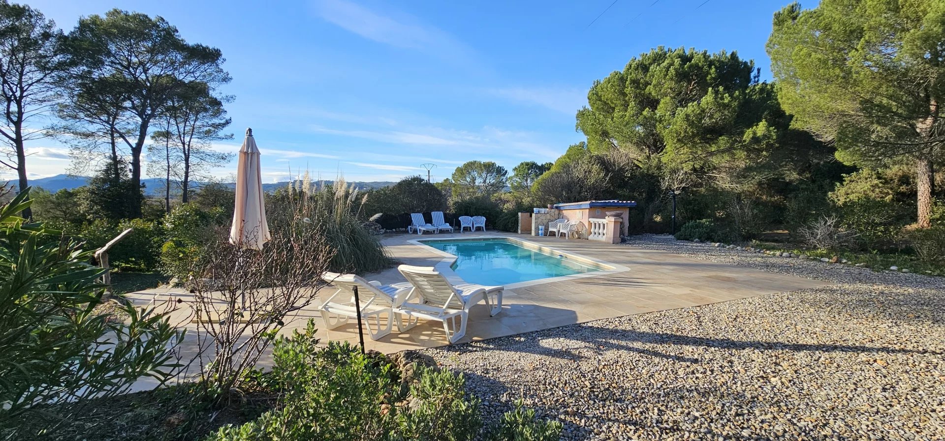 Ideally located just 2 km from the village, in the heart of Provence Verte, the villa is close to the charming villages of Cotignac, Correns, and Brignoles, renowned for their authentic Provencal character, vineyards, and lifestyle.