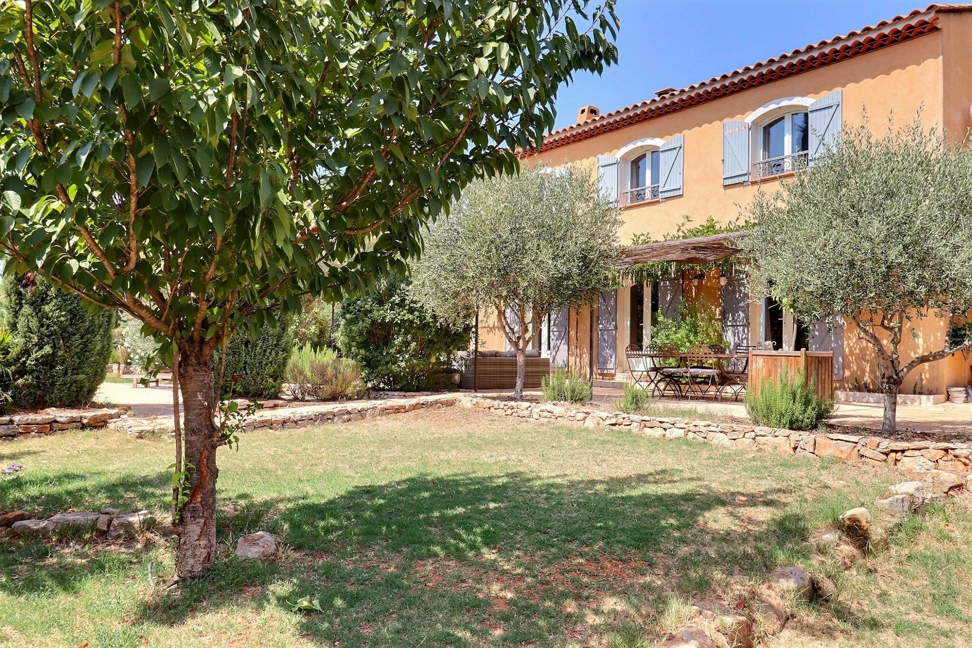 In the beautiful, Provencal village of Carces, in a quiet, spacious residential area, you find this 7-bedroom villa of 256 m2 with a spacious garden of 2800 m2 with several terraces and a swimming pool.