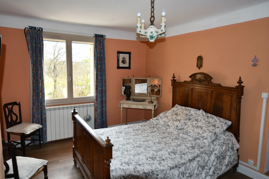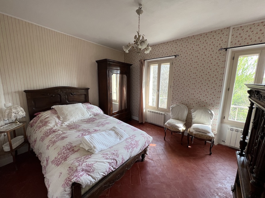 A period staircase with three stone and terracotta tiled steps leads to the first floor: Toilet. A north-facing bedroom with a connecting bathroom. Two south-facing bedrooms with lovely windows overlooking the arbour and the garden. A room with a wash-hand basin and dressing room leads to the fourth bedroom, which gives access to the flat and a second staircase. A study is currently used as a small bedroom.
