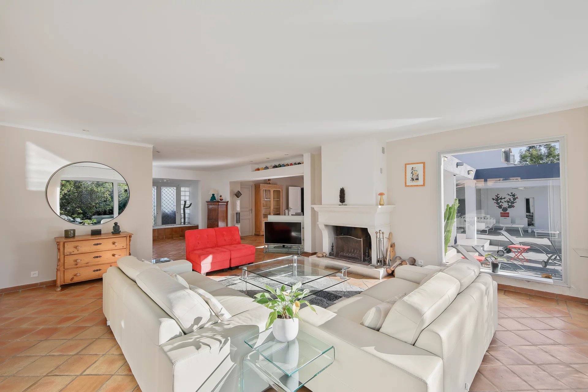 The property features a 60 m2 living room opening directly onto the garden, creating a bright and fluid indoor-outdoor living space.